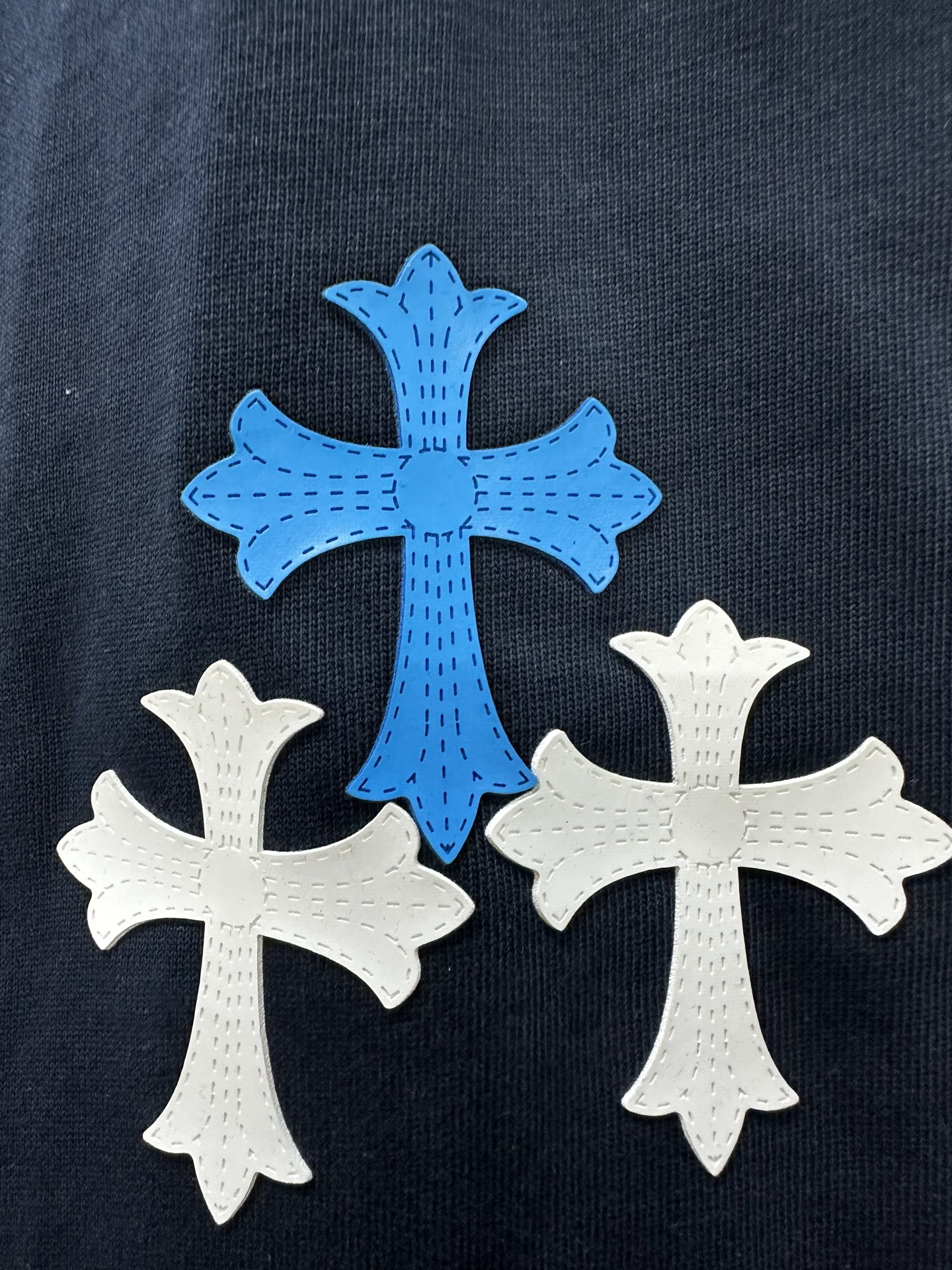 这款衣服是AAAAA 1:1 质量 (非常棒). 使用了和原版一模一样的材料. 商标部分也保持了和克罗心/Chrome Hearts一样. 图片拍摄是实物衣服拍摄, 您所收到的实物保证和我们图片一模一样.