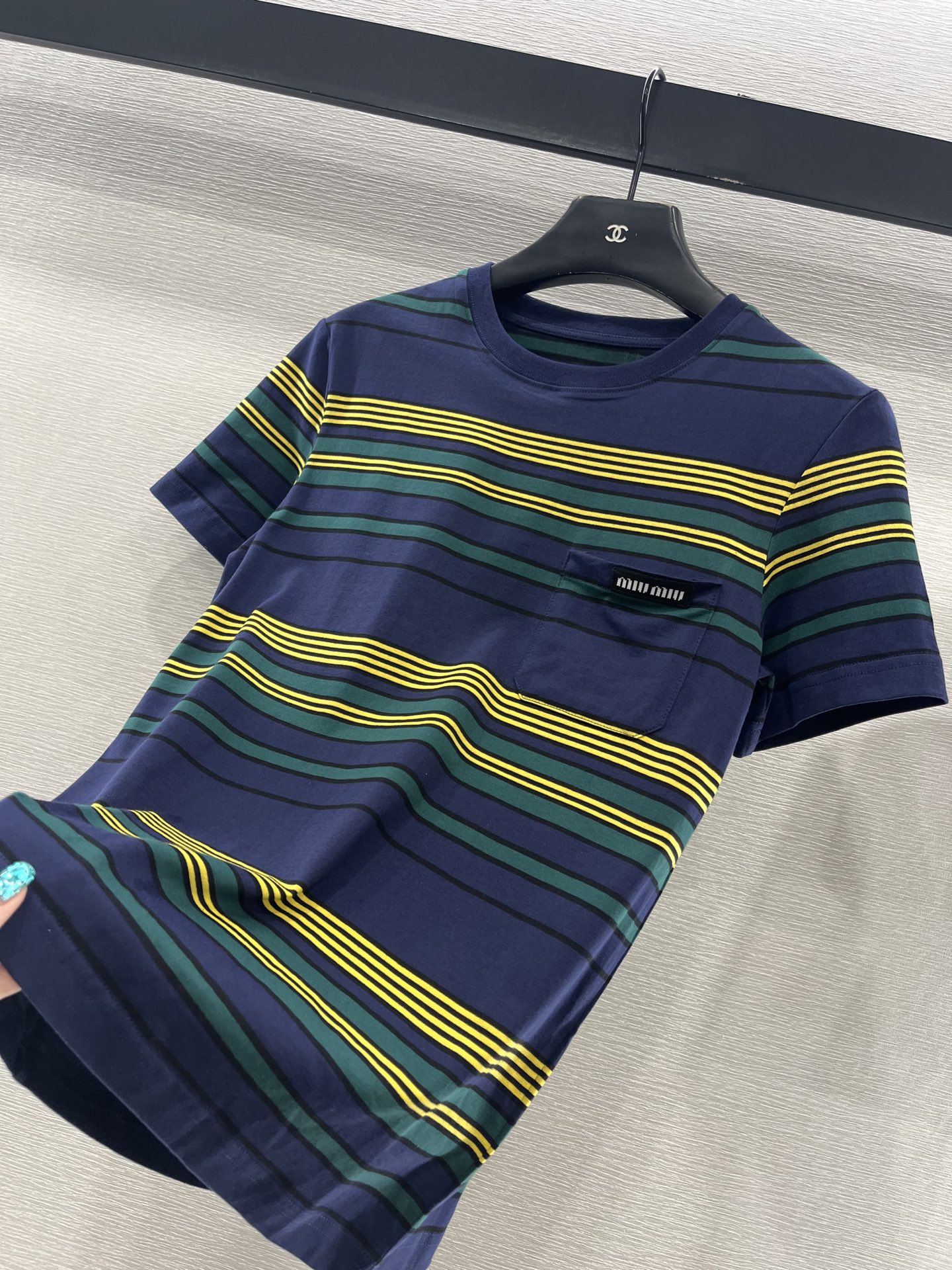 这款衣服是AAAAA 1:1 质量 (非常棒). 使用了和原版一模一样的材料. 商标部分也保持了和缪缪/Miu Miu一样. 图片拍摄是实物衣服拍摄, 您所收到的实物保证和我们图片一模一样.