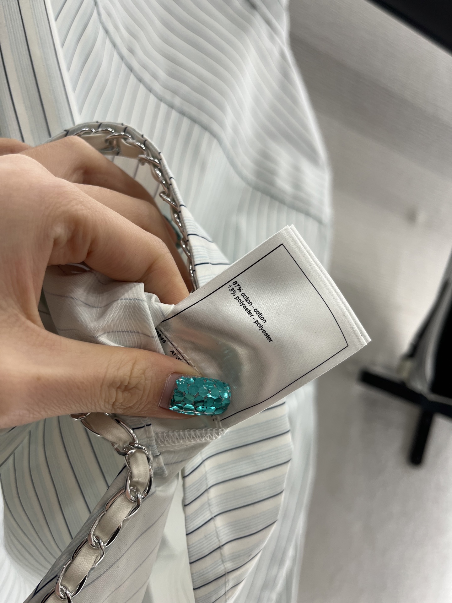 这款衣服是AAAAA 1:1 质量 (非常棒). 使用了和原版一模一样的材料. 商标部分也保持了和香奈儿/Chanel一样. 图片拍摄是实物衣服拍摄, 您所收到的实物保证和我们图片一模一样.