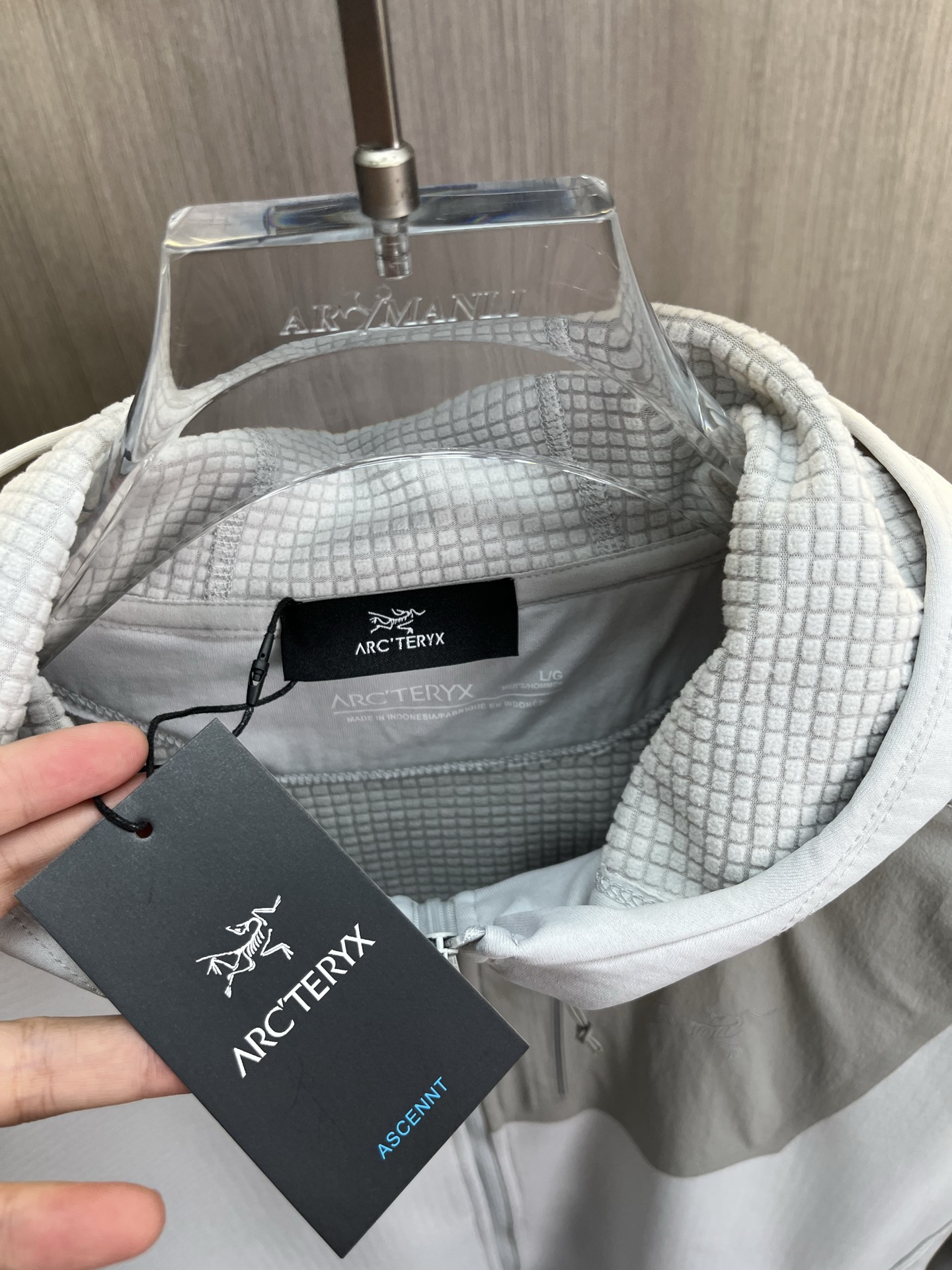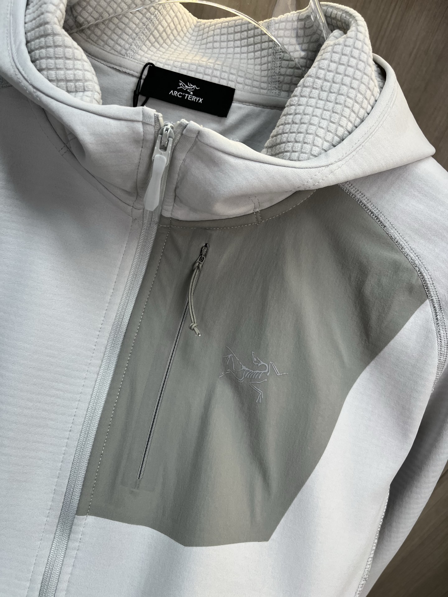 这款衣服是AAAAA 1:1 质量 (非常棒). 使用了和原版一模一样的材料. 商标部分也保持了和ARC'TERYX一样. 图片拍摄是实物衣服拍摄, 您所收到的实物保证和我们图片一模一样.