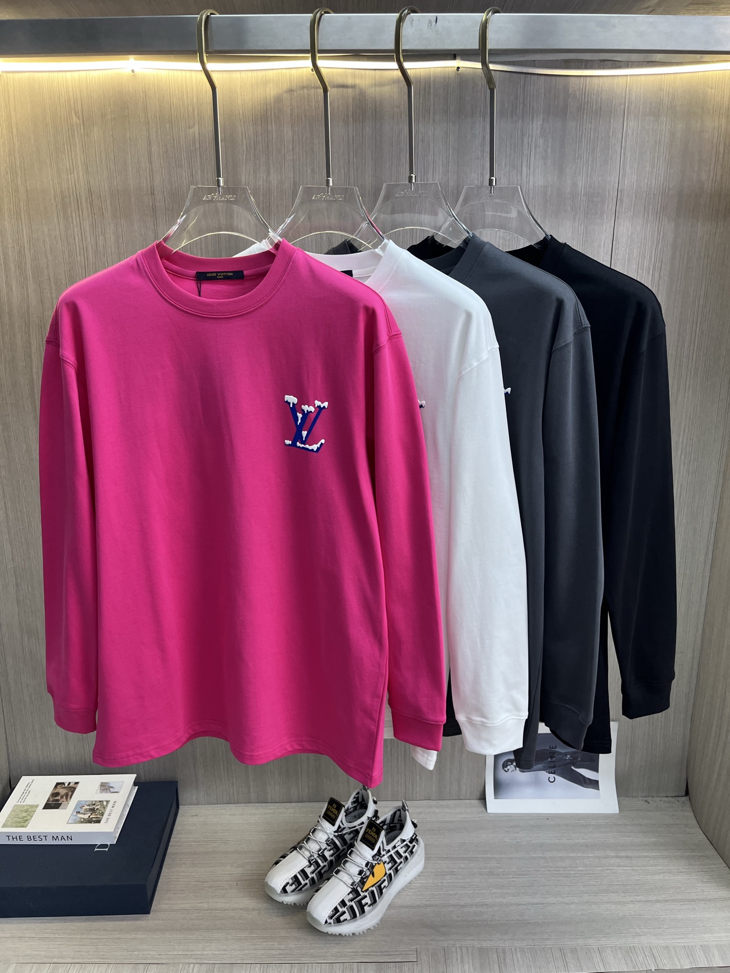 这款衣服是AAAAA 1:1 质量 (非常棒). 使用了和原版一模一样的材料. 商标部分也保持了和路易威登/Louis Vuitton一样. 图片拍摄是实物衣服拍摄, 您所收到的实物保证和我们图片一模一样.