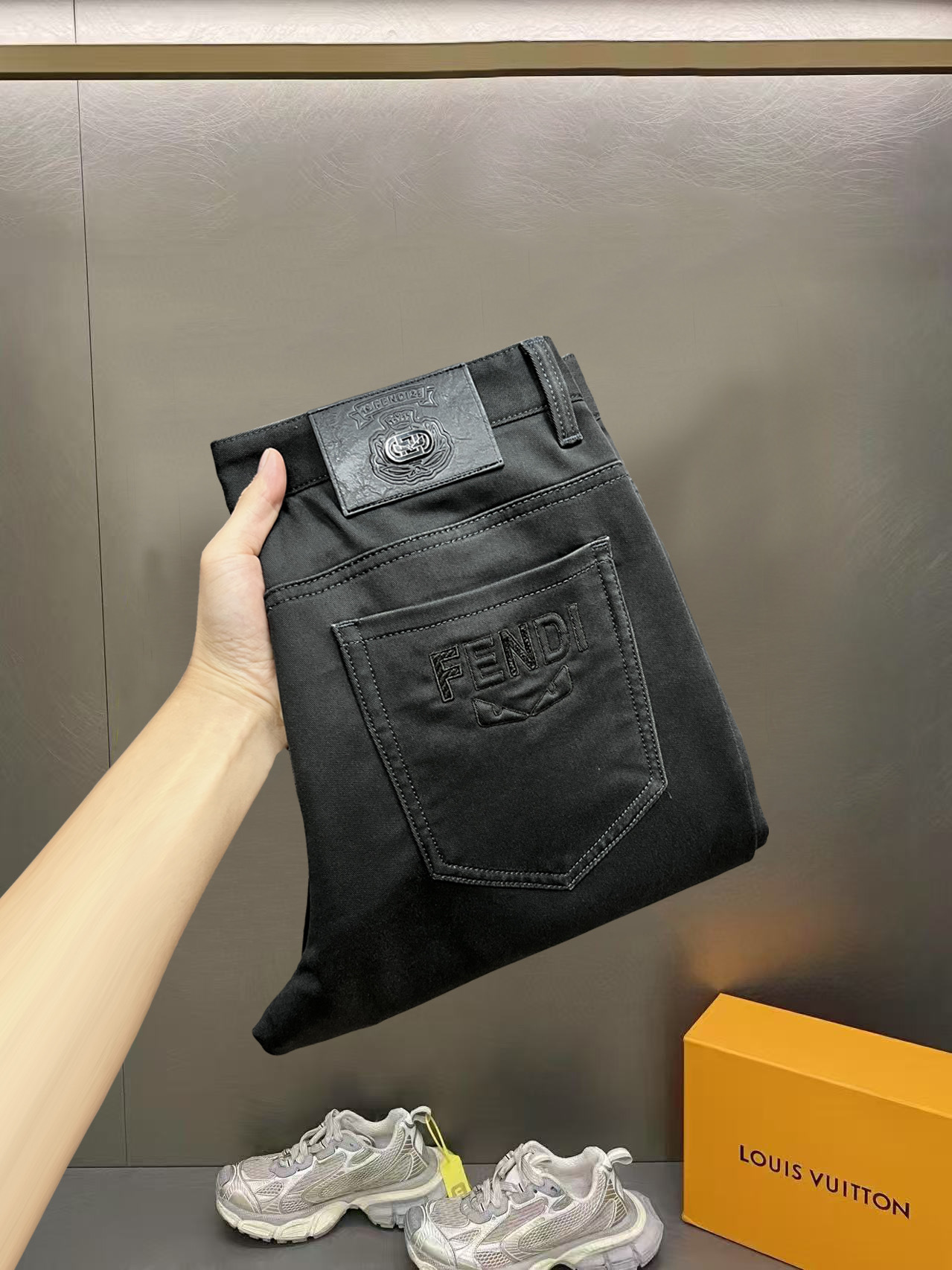 这款衣服是AAAAA 1:1 质量 (非常棒). 使用了和原版一模一样的材料. 商标部分也保持了和芬迪/Fendi一样. 图片拍摄是实物衣服拍摄, 您所收到的实物保证和我们图片一模一样.
