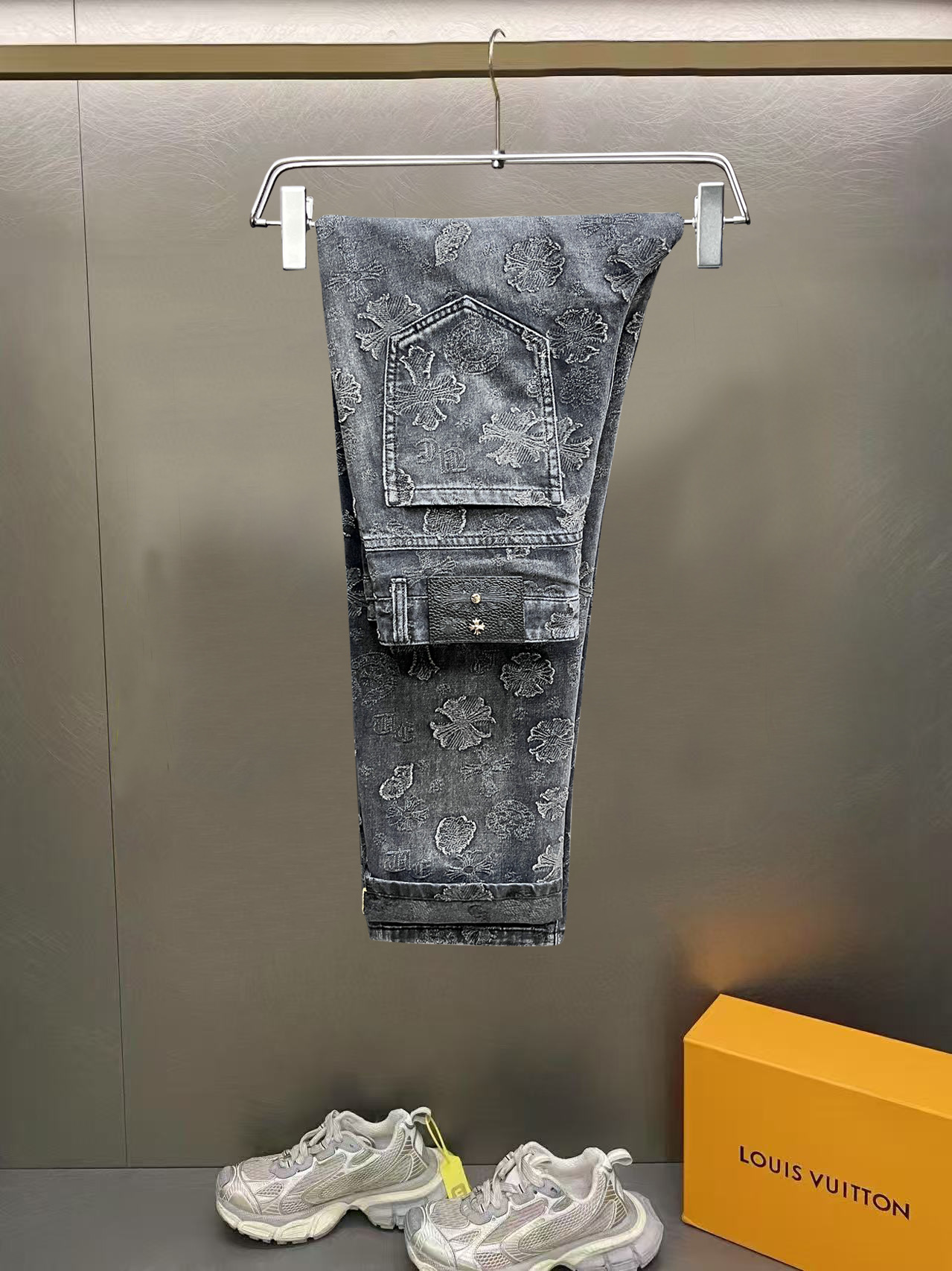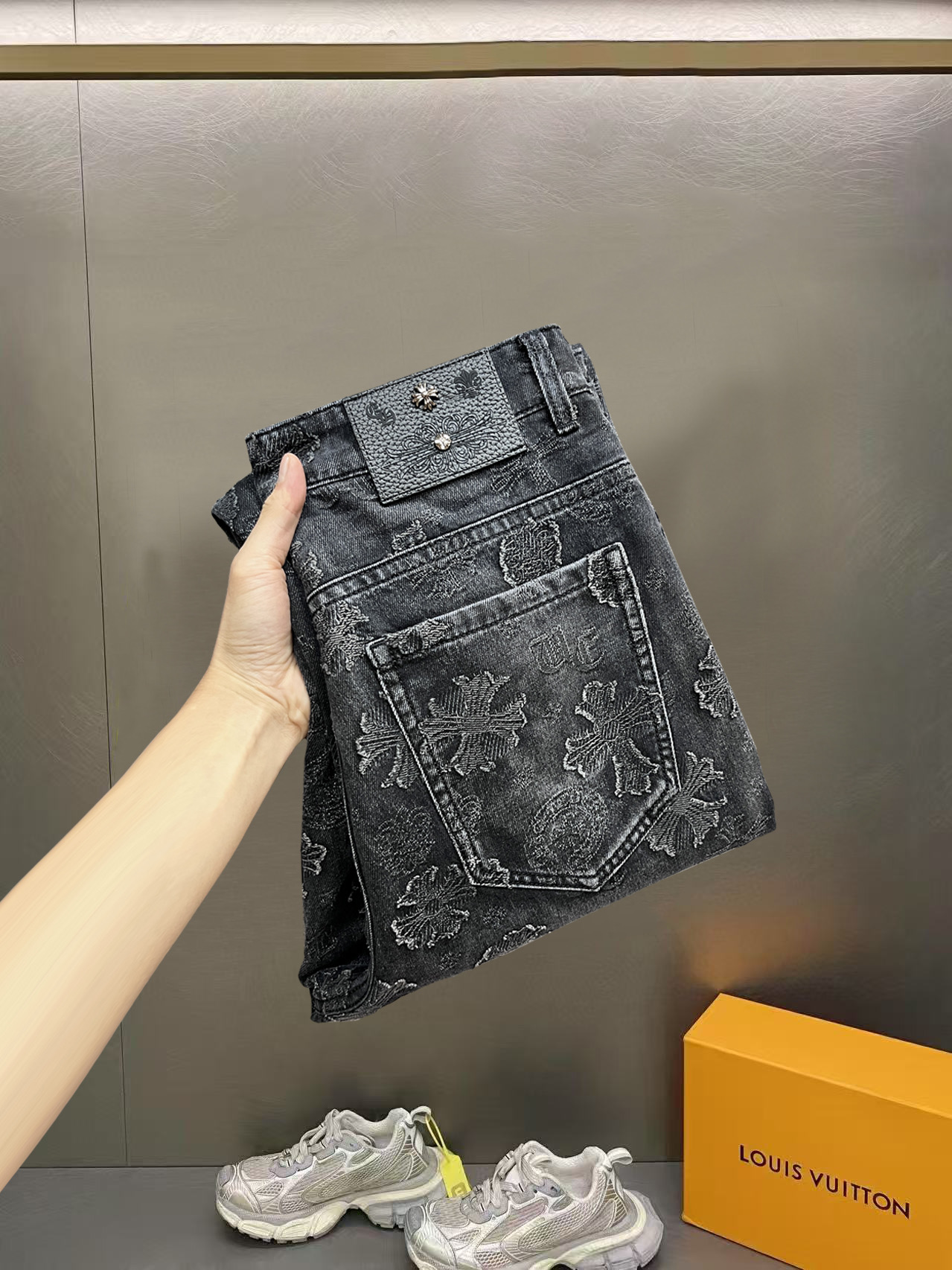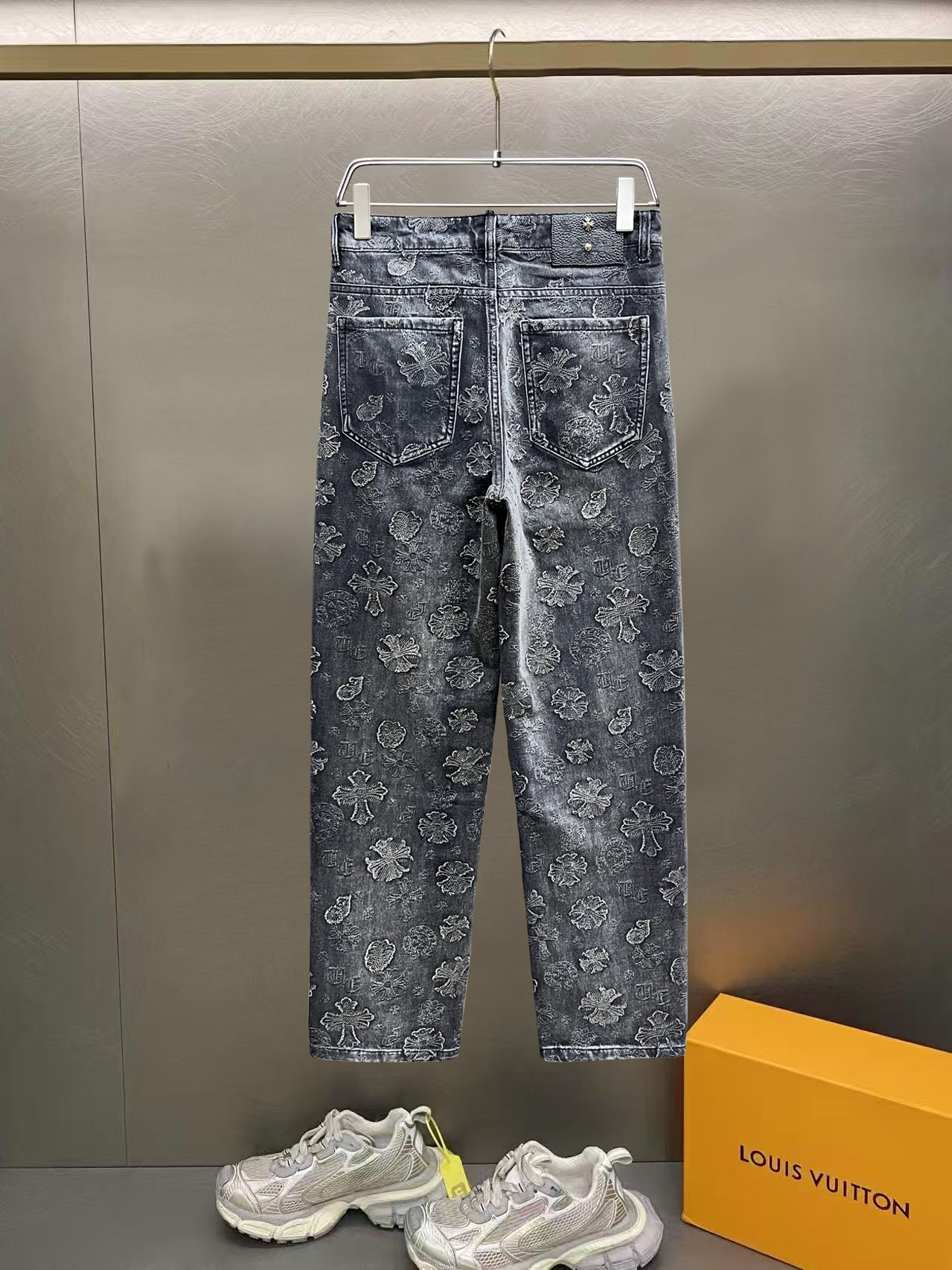 这款衣服是AAAAA 1:1 质量 (非常棒). 使用了和原版一模一样的材料. 商标部分也保持了和克罗心/Chrome Hearts一样. 图片拍摄是实物衣服拍摄, 您所收到的实物保证和我们图片一模一样.