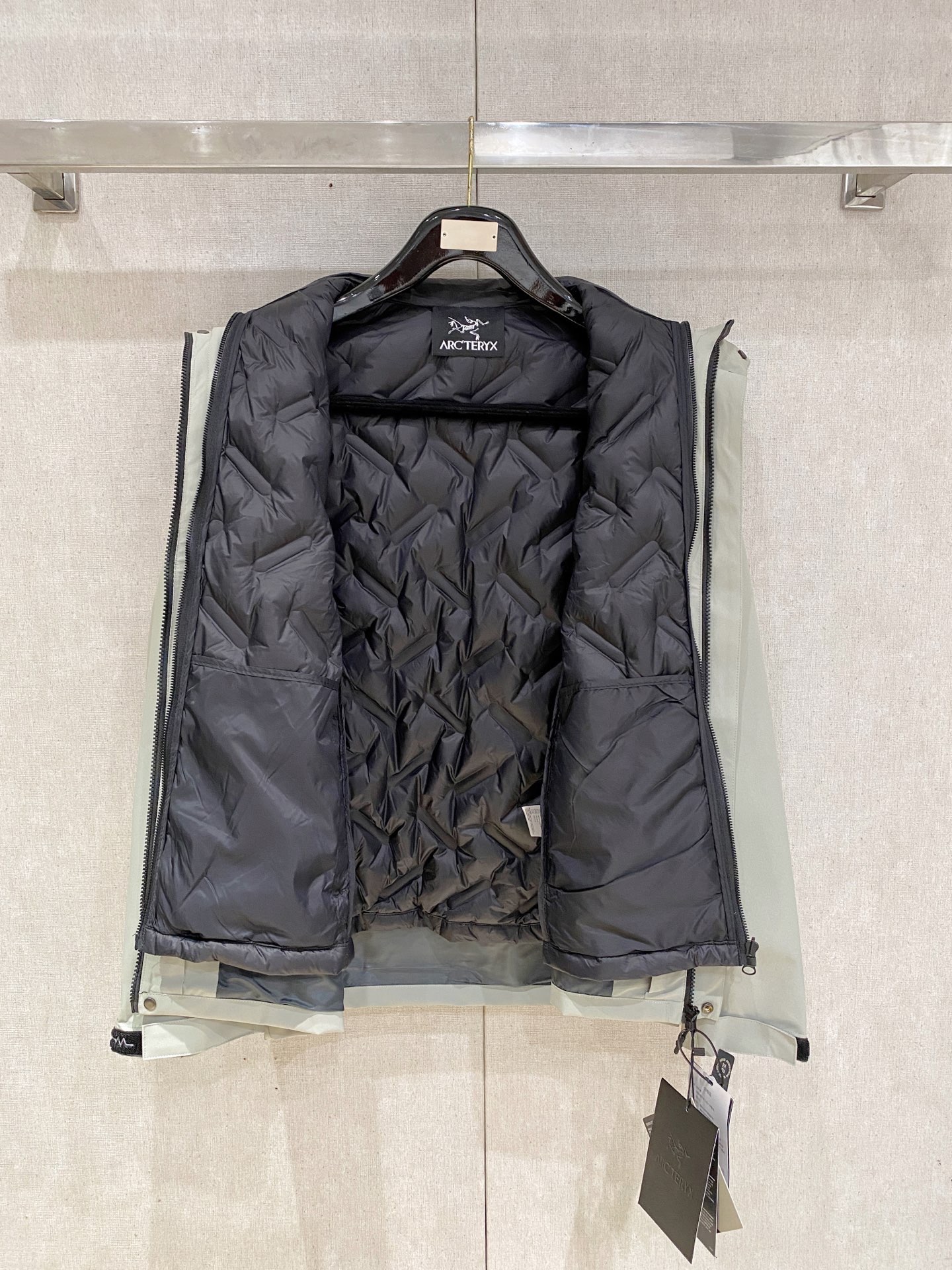 这款衣服是AAAAA 1:1 质量 (非常棒). 使用了和原版一模一样的材料. 商标部分也保持了和ARC'TERYX一样. 图片拍摄是实物衣服拍摄, 您所收到的实物保证和我们图片一模一样.