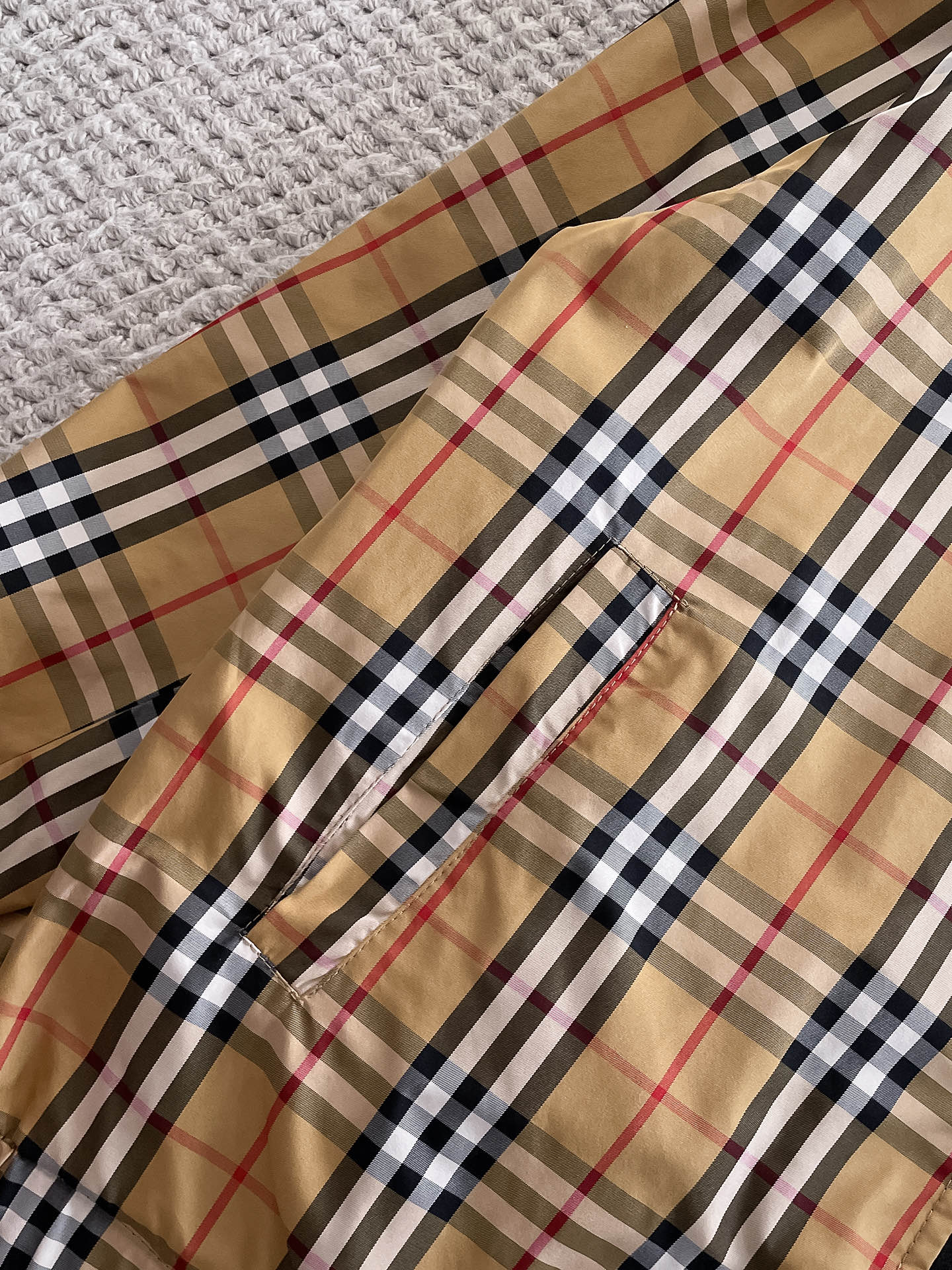 这款衣服是AAAAA 1:1 质量 (非常棒). 使用了和原版一模一样的材料. 商标部分也保持了和巴宝莉/Burberry一样. 图片拍摄是实物衣服拍摄, 您所收到的实物保证和我们图片一模一样.