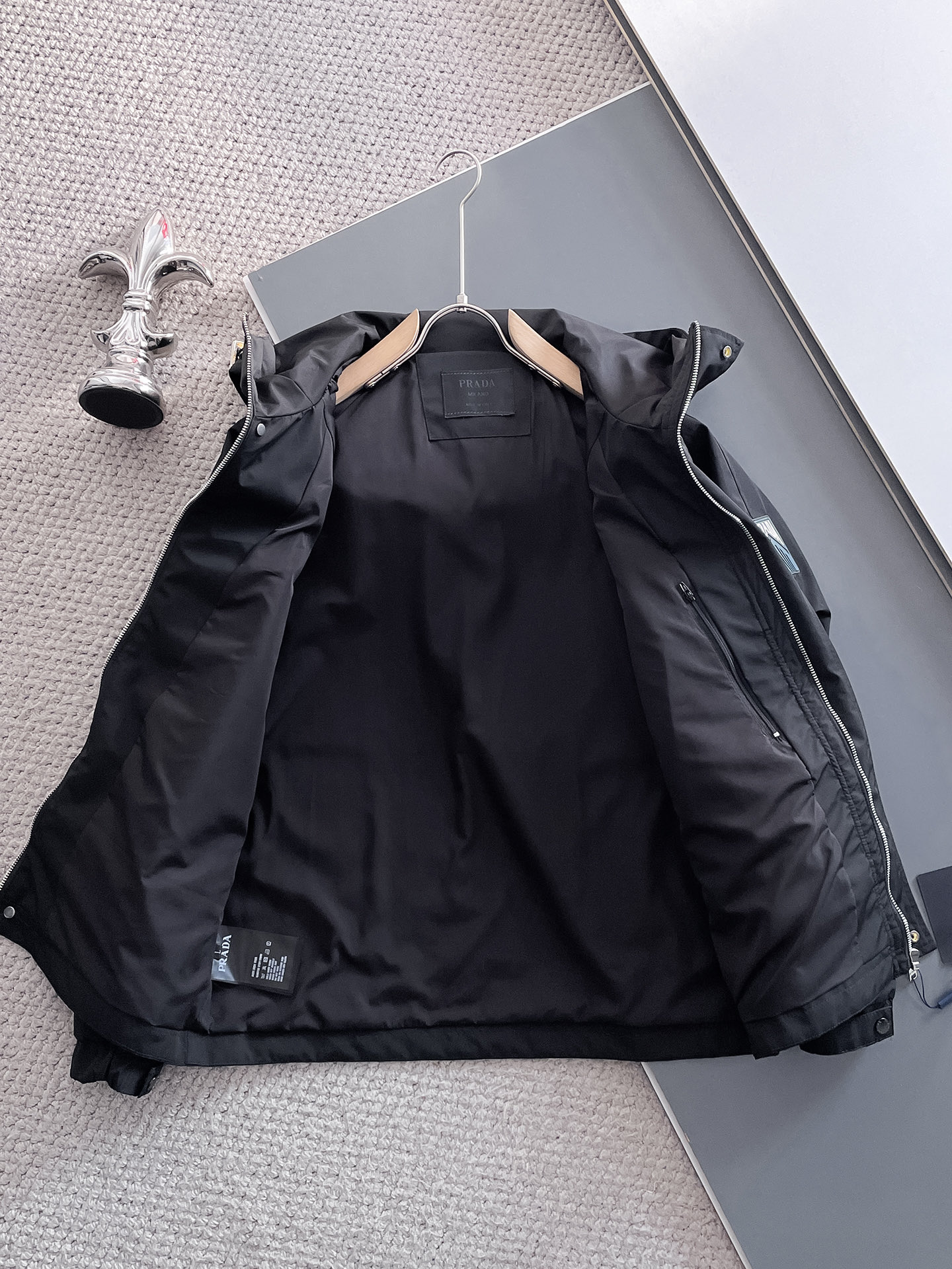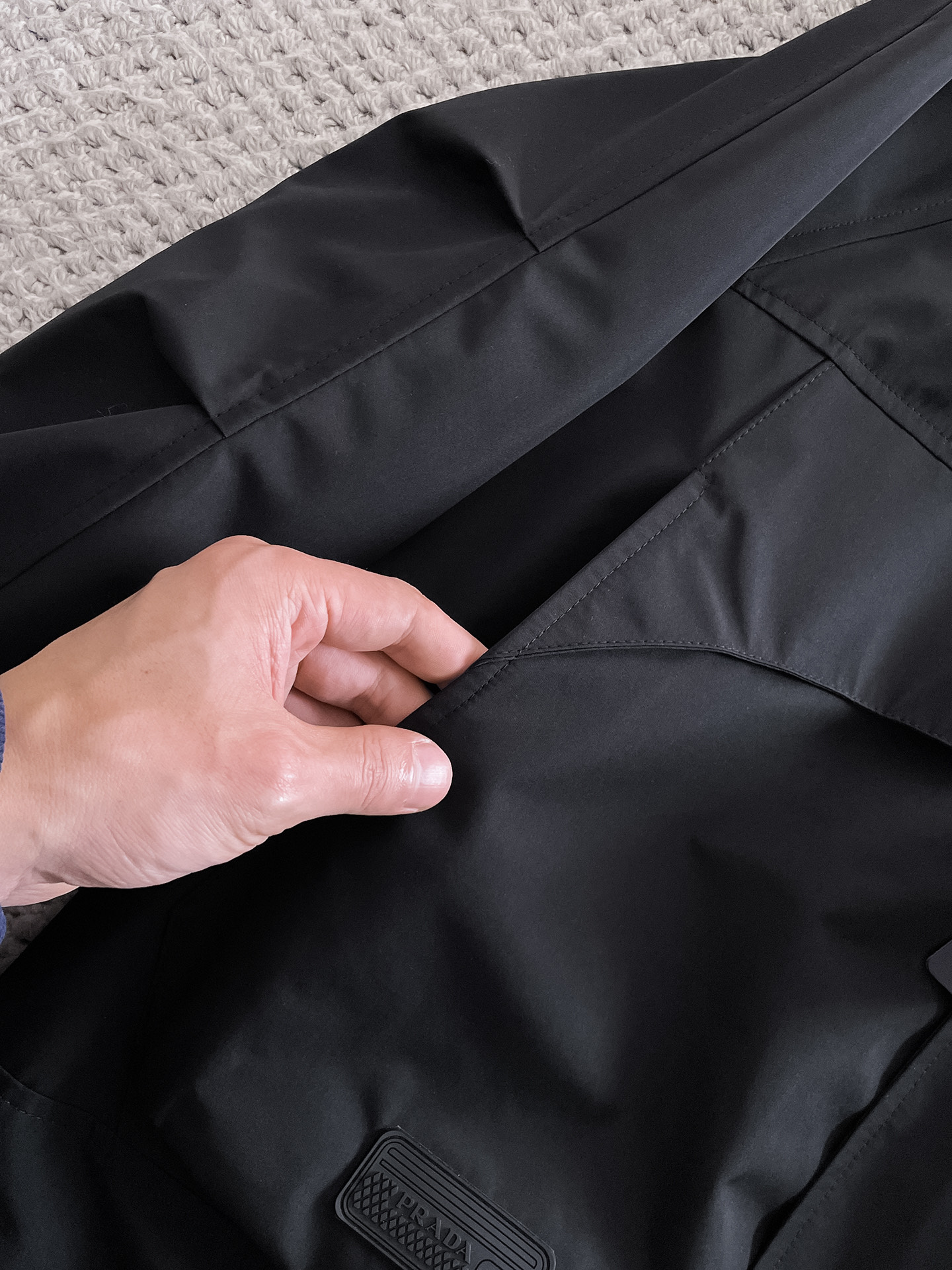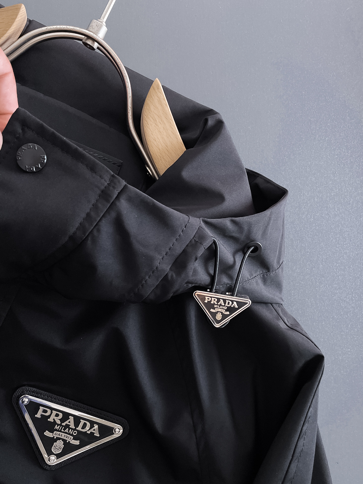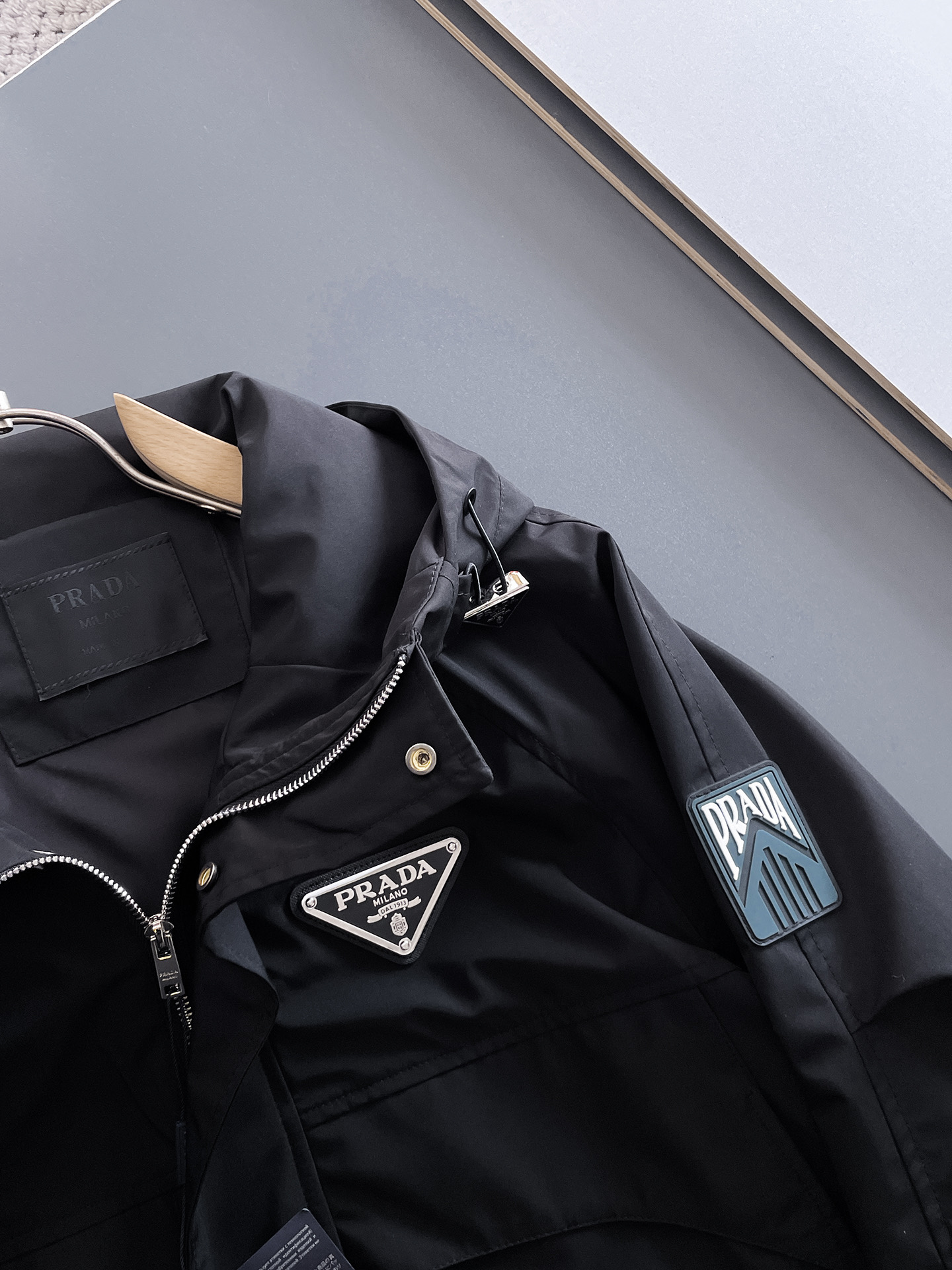 这款衣服是AAAAA 1:1 质量 (非常棒). 使用了和原版一模一样的材料. 商标部分也保持了和普拉达/Prada一样. 图片拍摄是实物衣服拍摄, 您所收到的实物保证和我们图片一模一样.