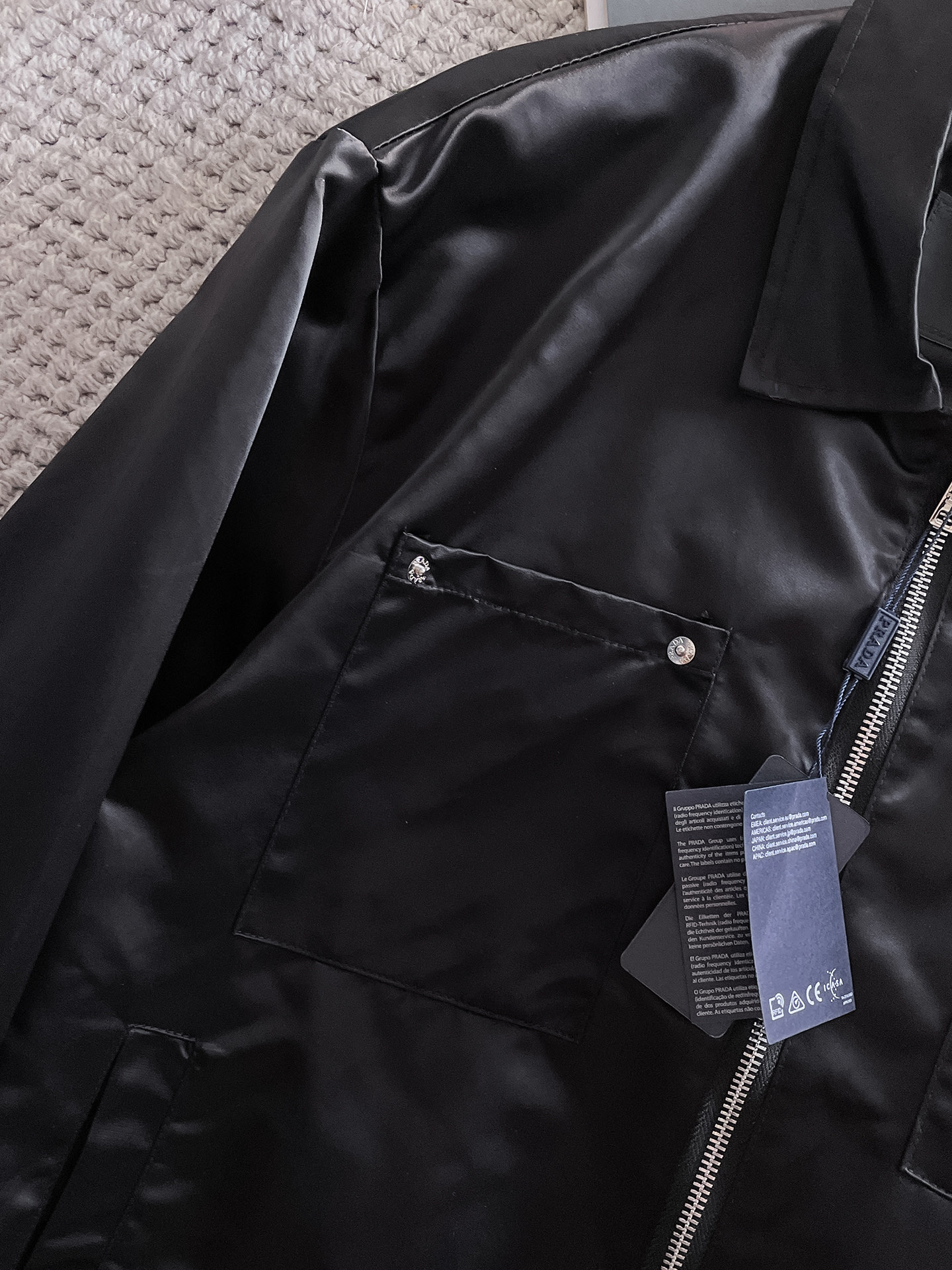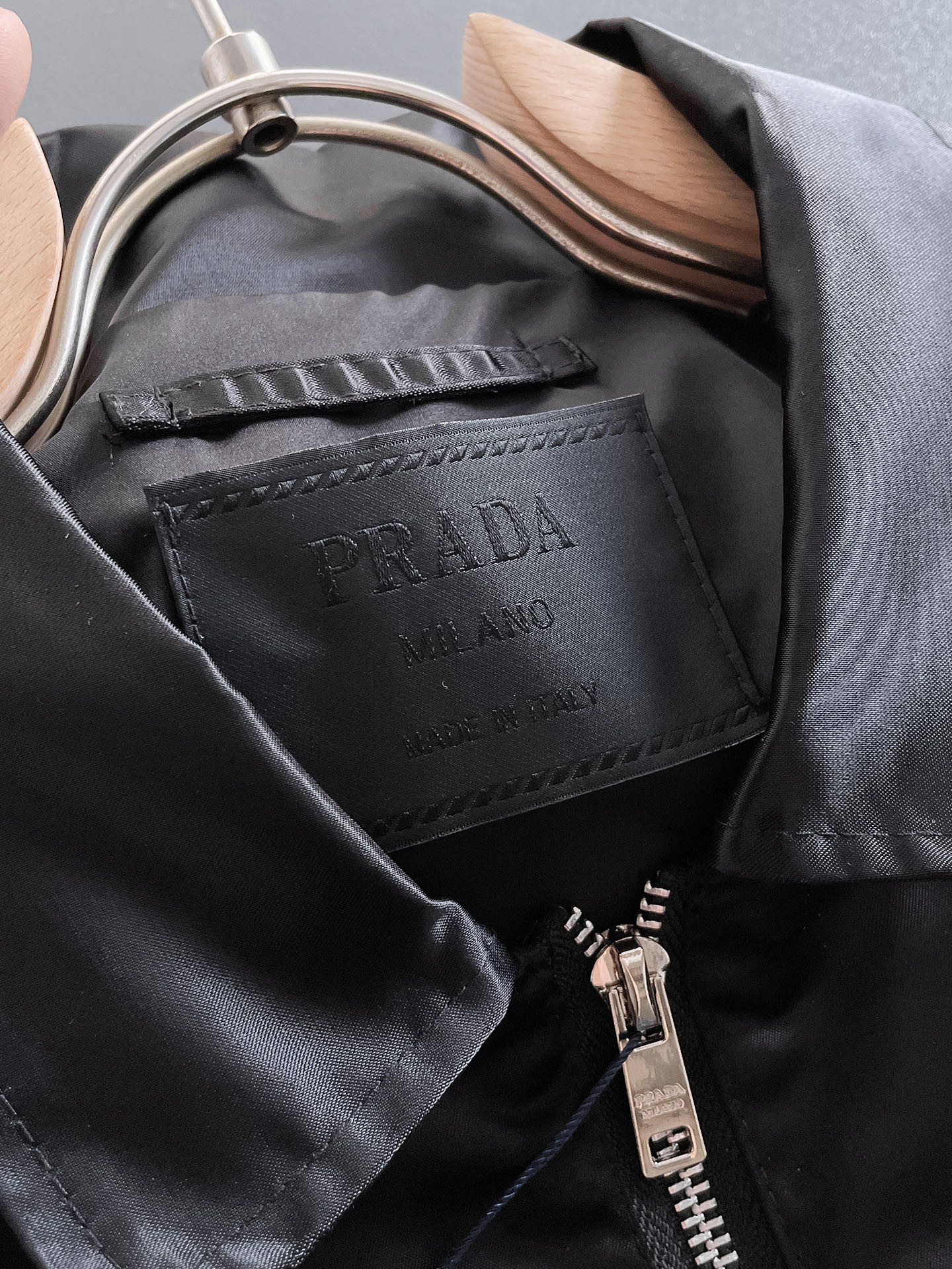 这款衣服是AAAAA 1:1 质量 (非常棒). 使用了和原版一模一样的材料. 商标部分也保持了和普拉达/Prada一样. 图片拍摄是实物衣服拍摄, 您所收到的实物保证和我们图片一模一样.