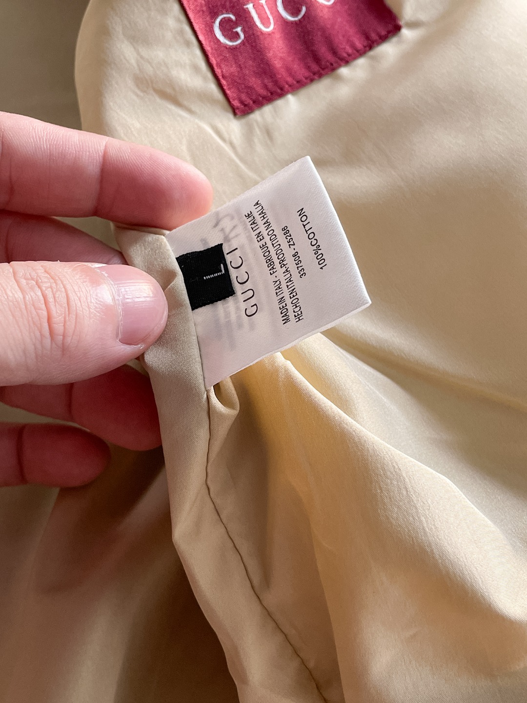 这款衣服是AAAAA 1:1 质量 (非常棒). 使用了和原版一模一样的材料. 商标部分也保持了和古奇/Gucci一样. 图片拍摄是实物衣服拍摄, 您所收到的实物保证和我们图片一模一样.