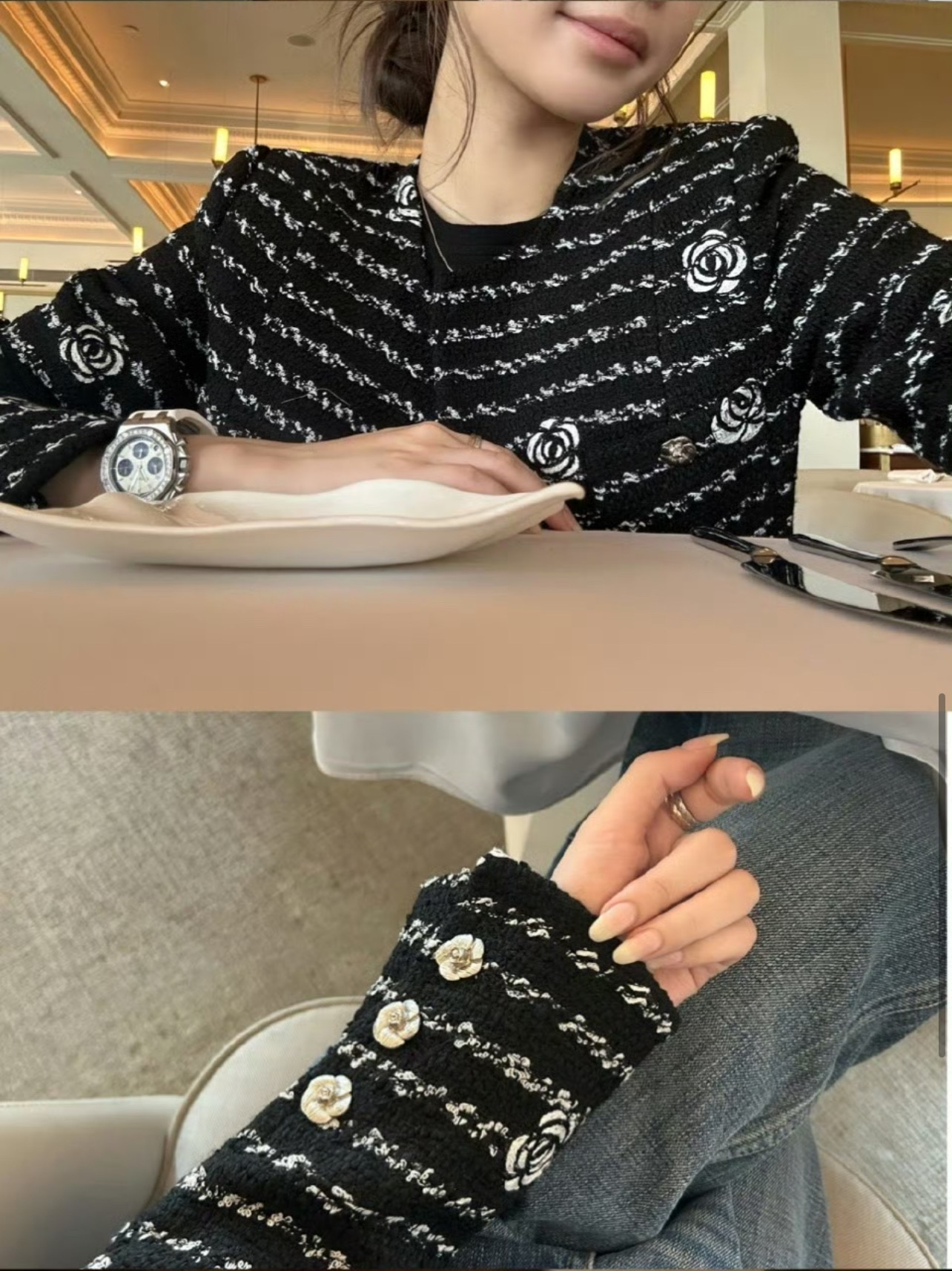 这款衣服是AAAAA 1:1 质量 (非常棒). 使用了和原版一模一样的材料. 商标部分也保持了和香奈儿/Chanel一样. 图片拍摄是实物衣服拍摄, 您所收到的实物保证和我们图片一模一样.