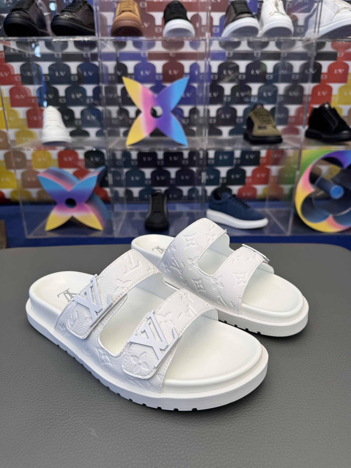 这款鞋子是AAAAA 1:1 质量 (非常棒). 使用了和原版一模一样的材料. 商标部分也保持了和路易威登/Louis Vuitton一样. 图片拍摄是实物鞋子拍摄, 您所收到的实物保证和我们图片一模一样.