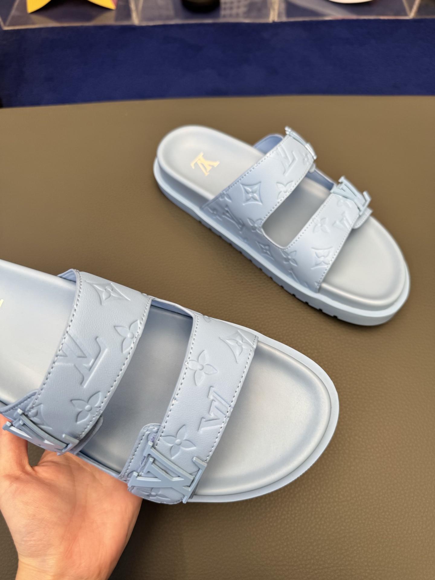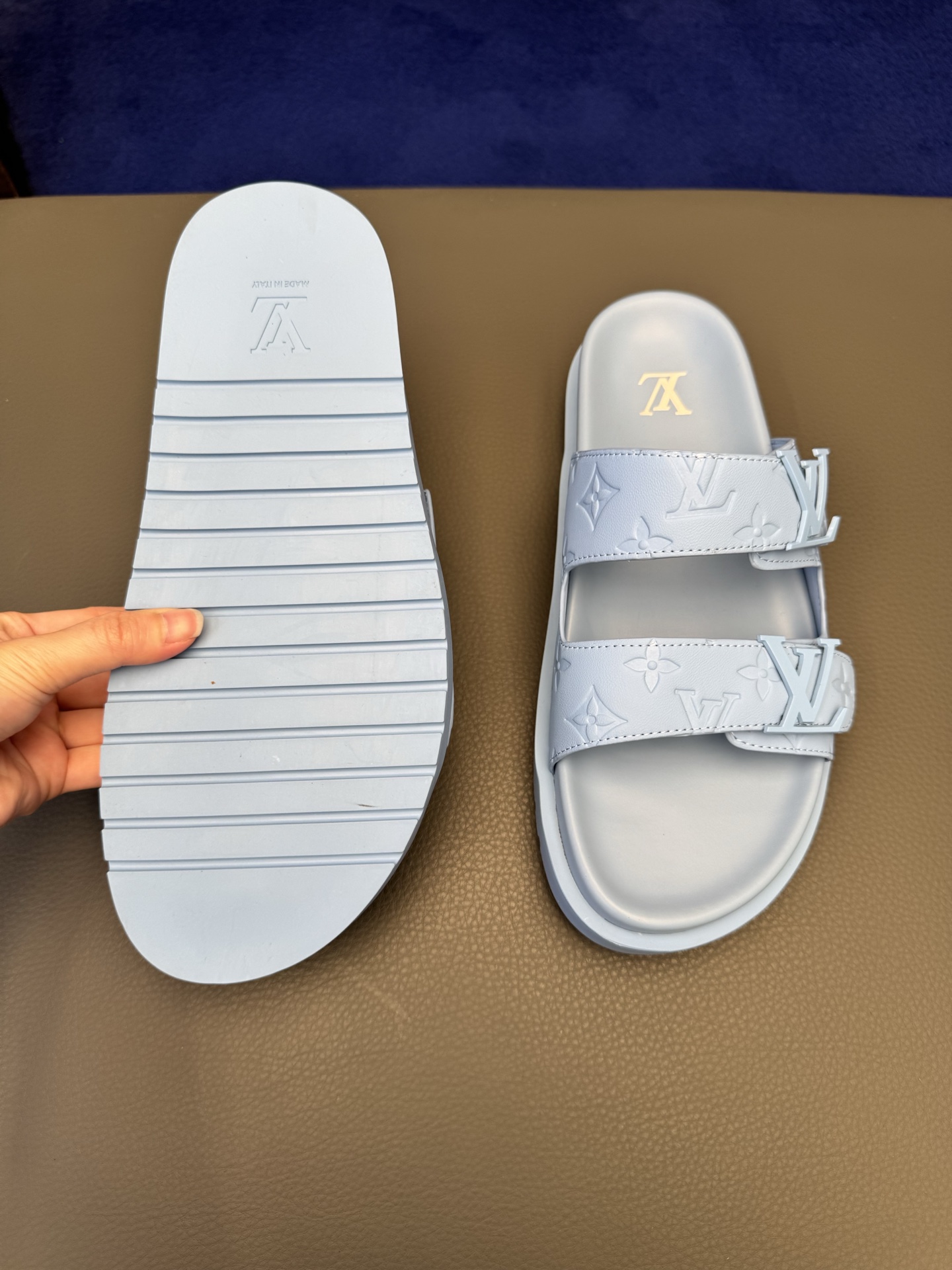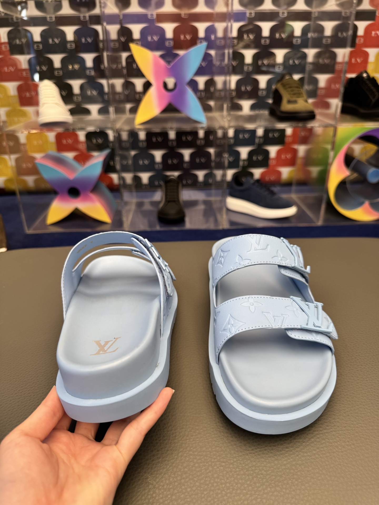 这款鞋子是AAAAA 1:1 质量 (非常棒). 使用了和原版一模一样的材料. 商标部分也保持了和路易威登/Louis Vuitton一样. 图片拍摄是实物鞋子拍摄, 您所收到的实物保证和我们图片一模一样.
