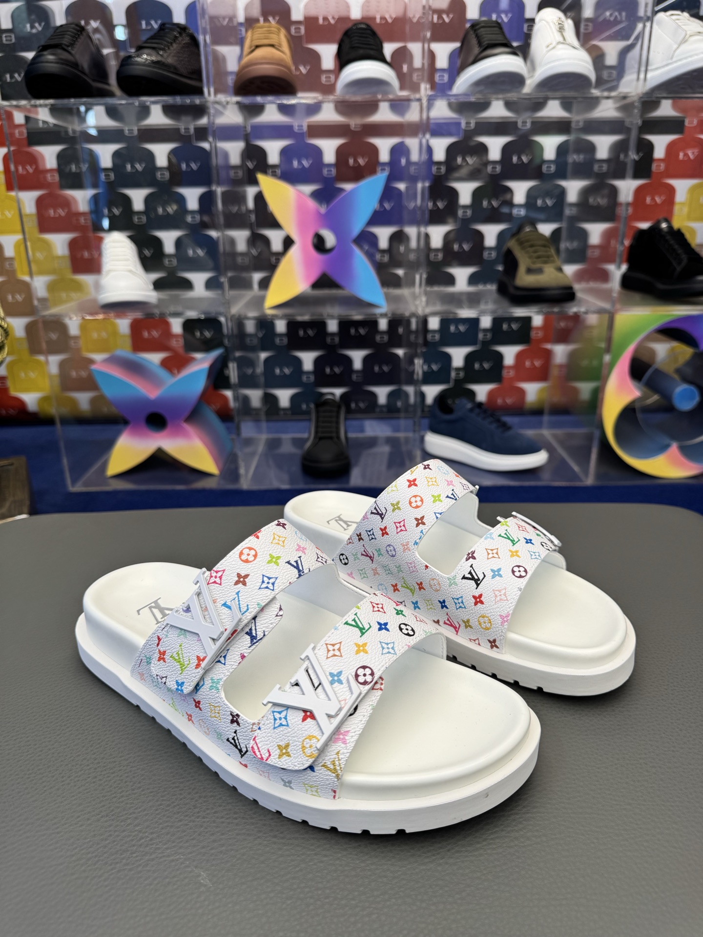 这款鞋子是AAAAA 1:1 质量 (非常棒). 使用了和原版一模一样的材料. 商标部分也保持了和路易威登/Louis Vuitton一样. 图片拍摄是实物鞋子拍摄, 您所收到的实物保证和我们图片一模一样.