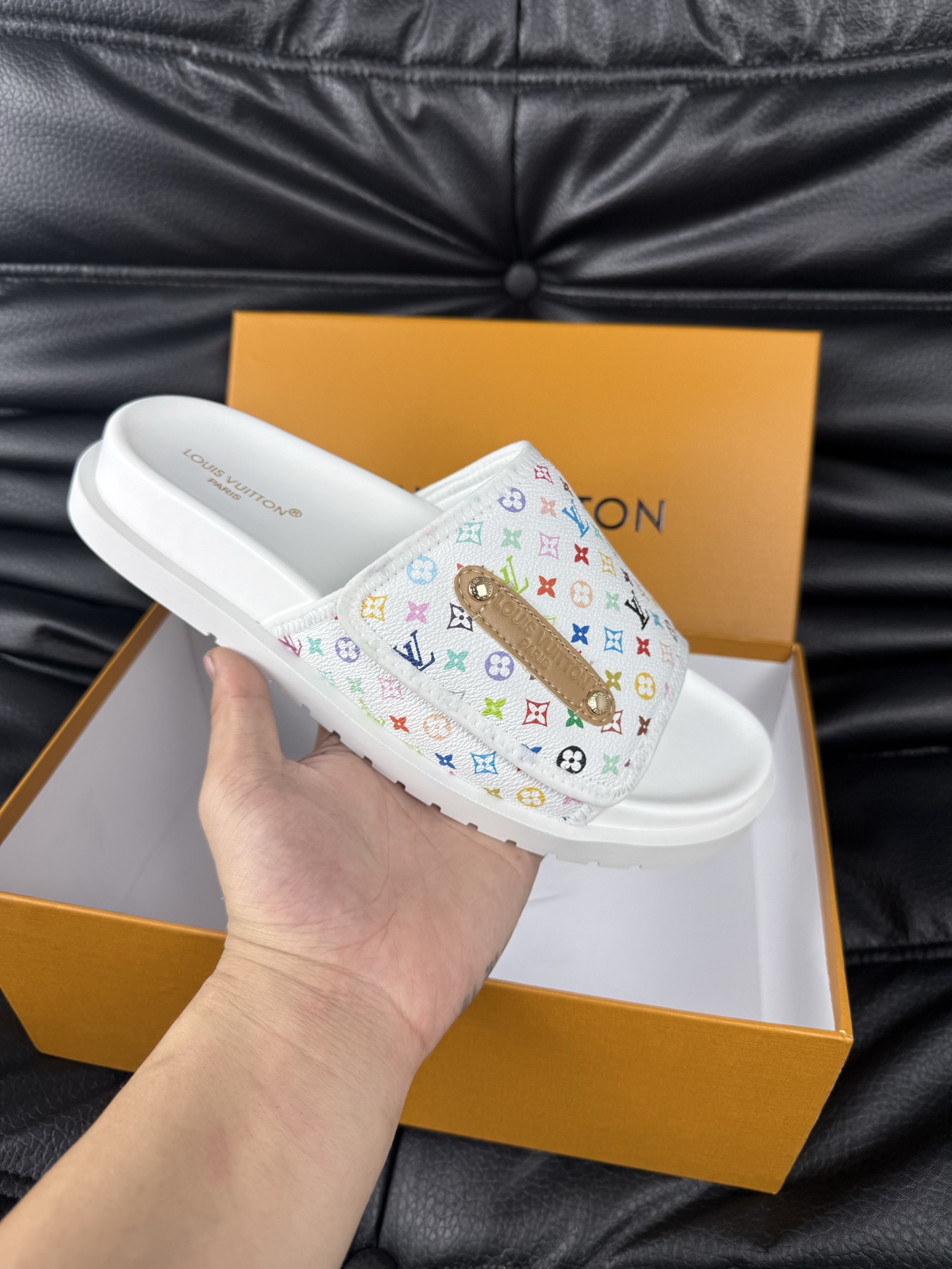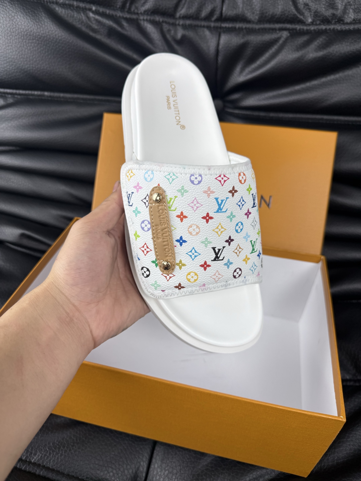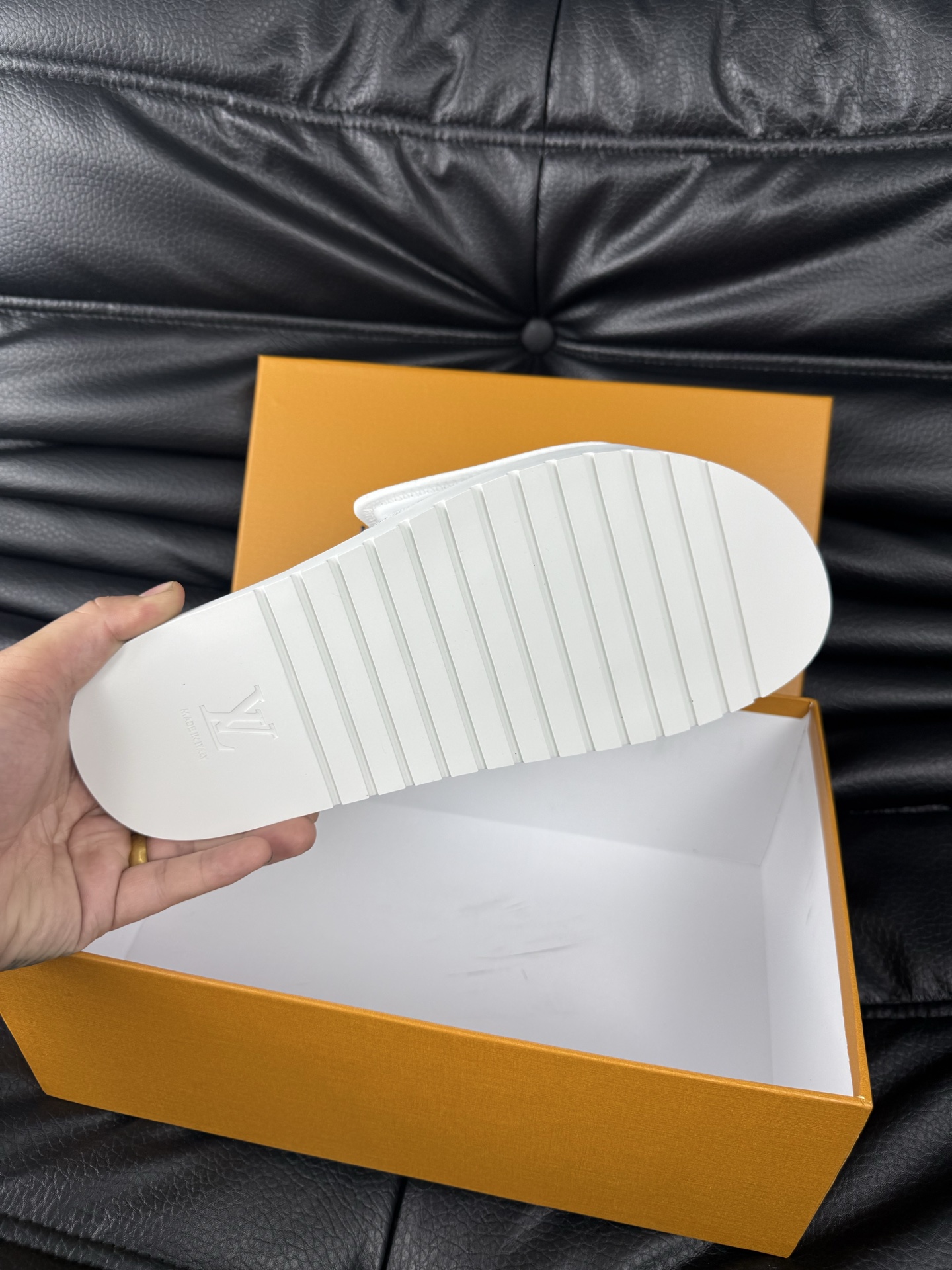 这款鞋子是AAAAA 1:1 质量 (非常棒). 使用了和原版一模一样的材料. 商标部分也保持了和路易威登/Louis Vuitton一样. 图片拍摄是实物鞋子拍摄, 您所收到的实物保证和我们图片一模一样.