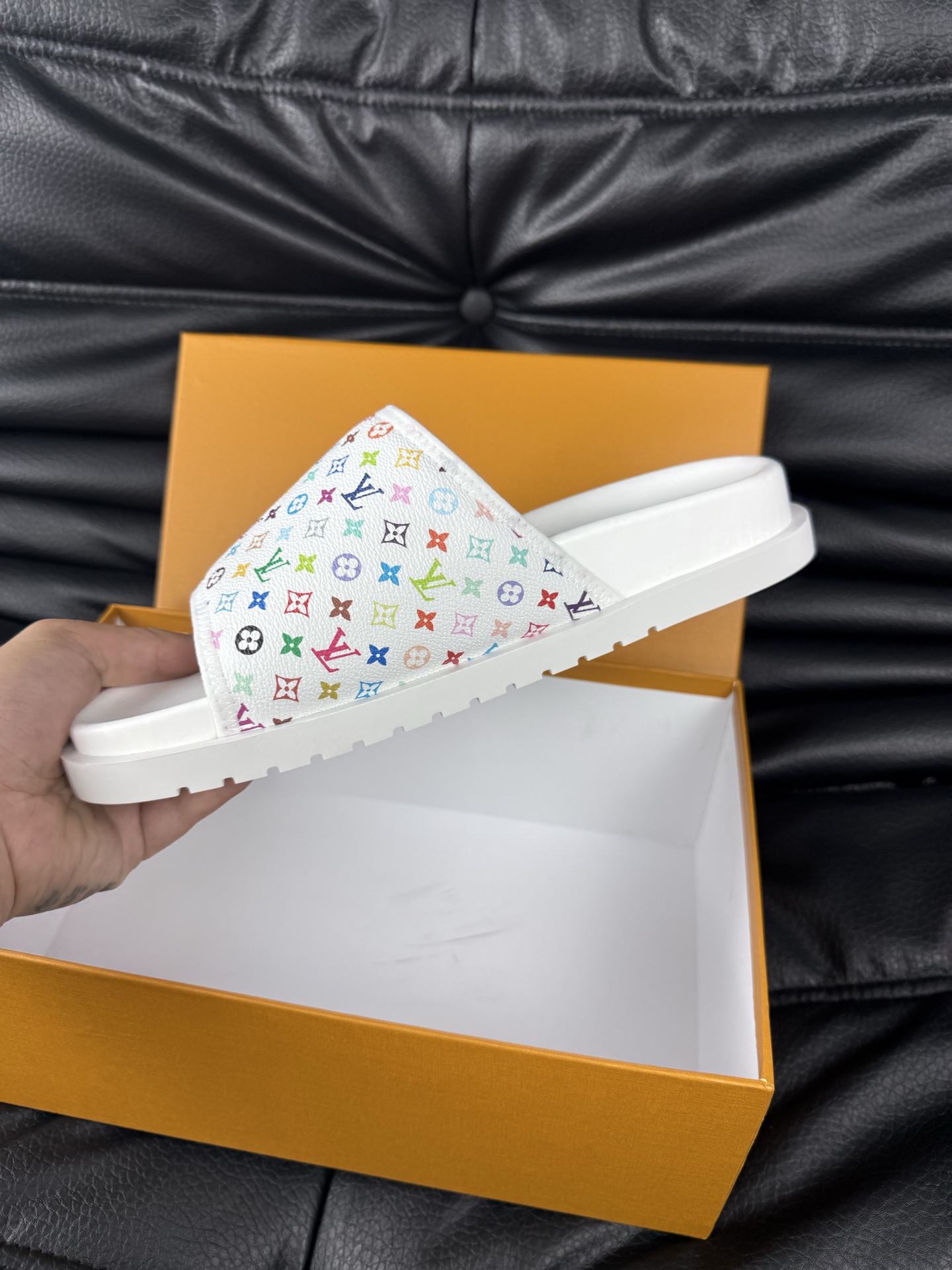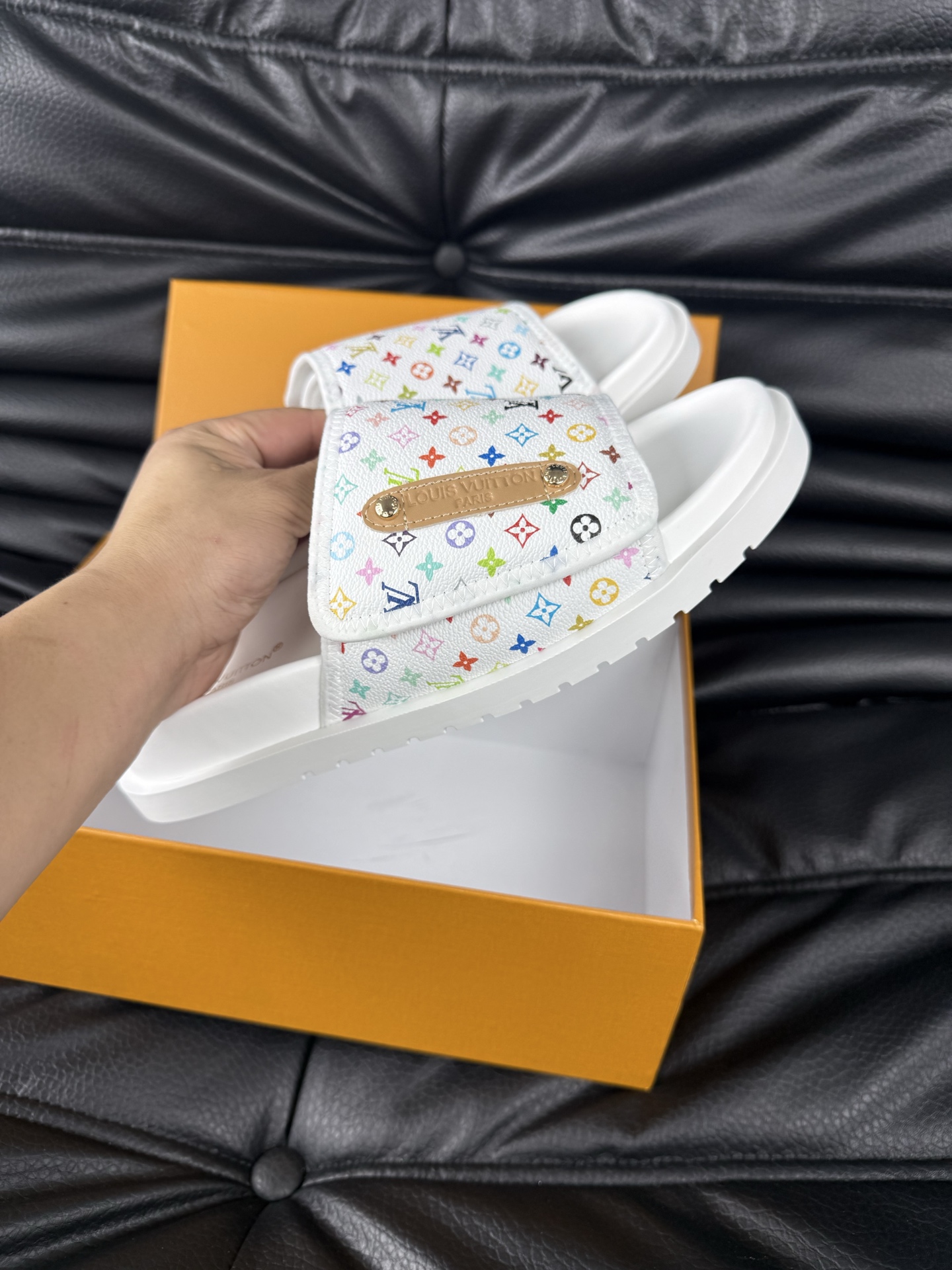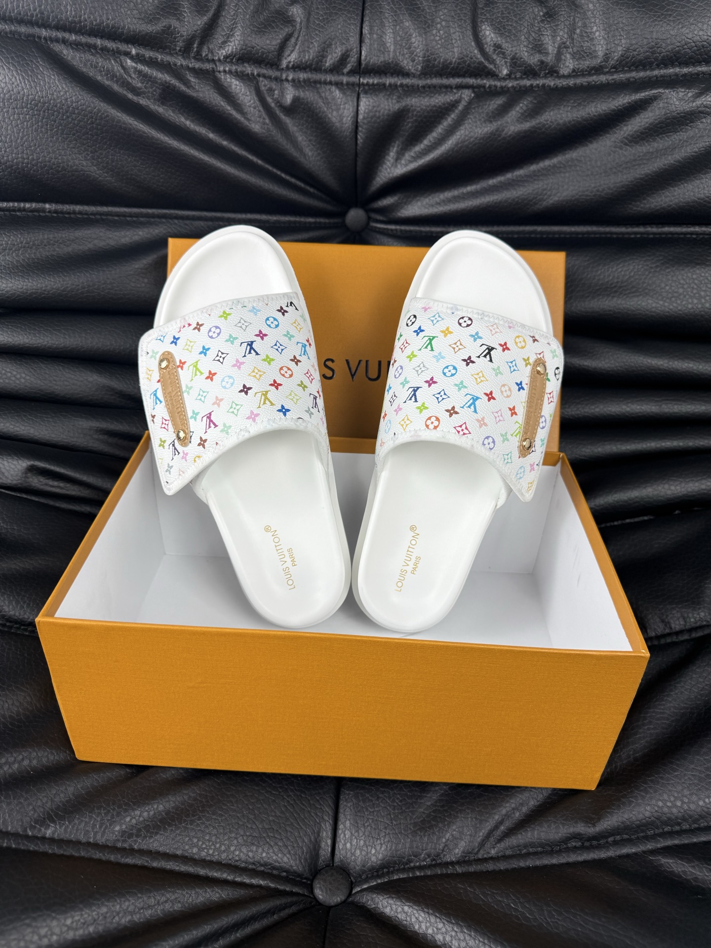 这款鞋子是AAAAA 1:1 质量 (非常棒). 使用了和原版一模一样的材料. 商标部分也保持了和路易威登/Louis Vuitton一样. 图片拍摄是实物鞋子拍摄, 您所收到的实物保证和我们图片一模一样.