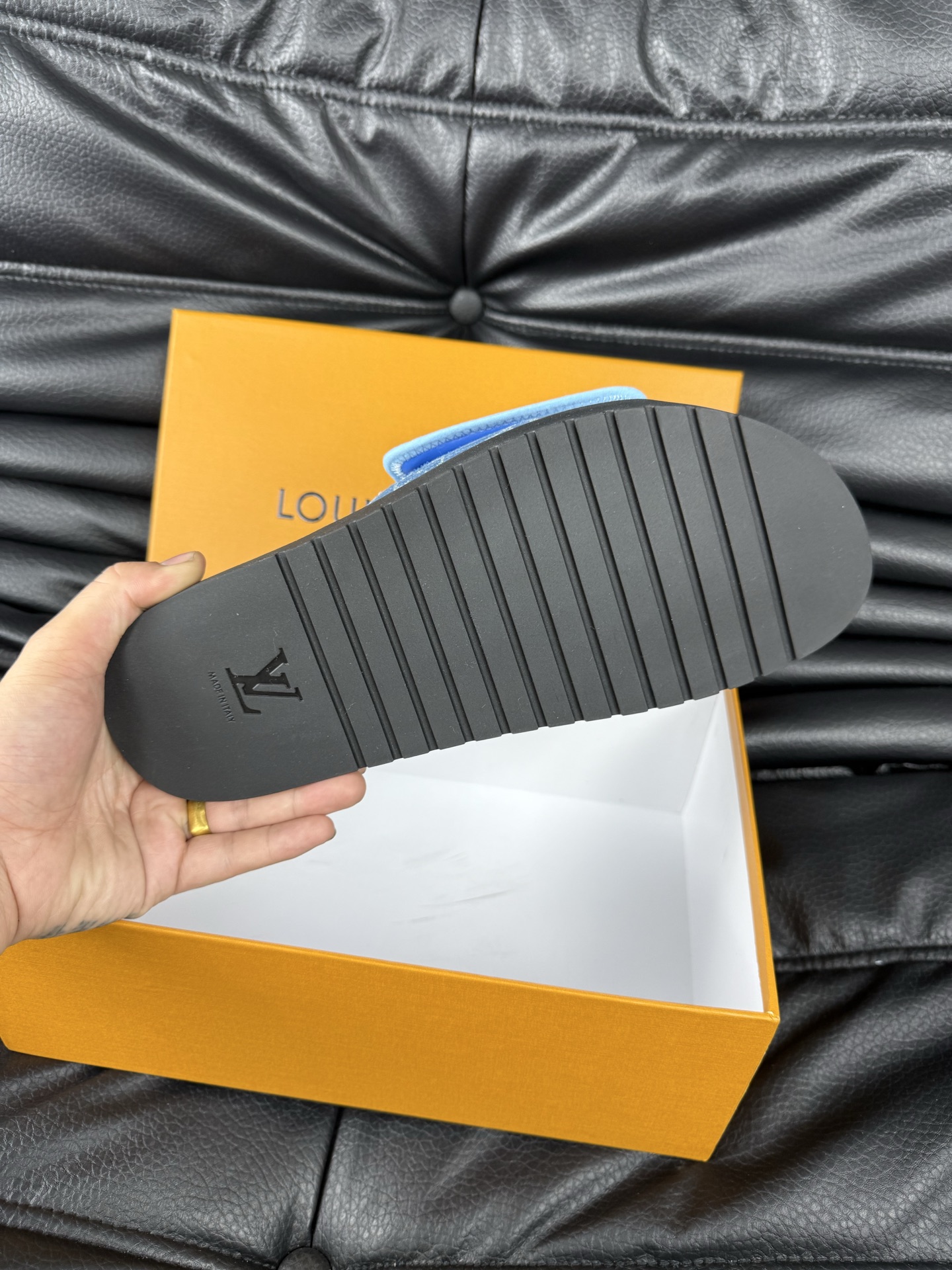 这款鞋子是AAAAA 1:1 质量 (非常棒). 使用了和原版一模一样的材料. 商标部分也保持了和路易威登/Louis Vuitton一样. 图片拍摄是实物鞋子拍摄, 您所收到的实物保证和我们图片一模一样.