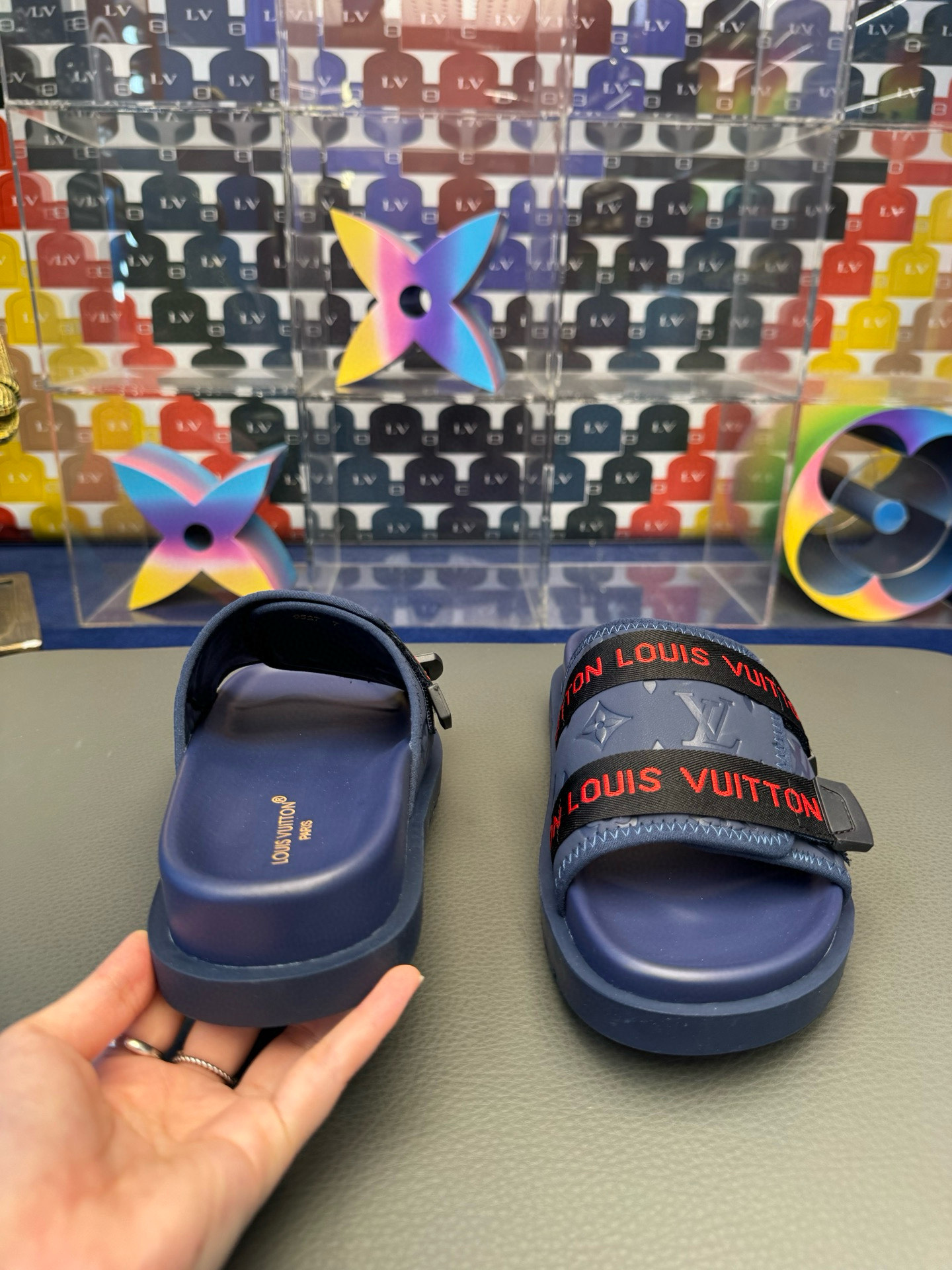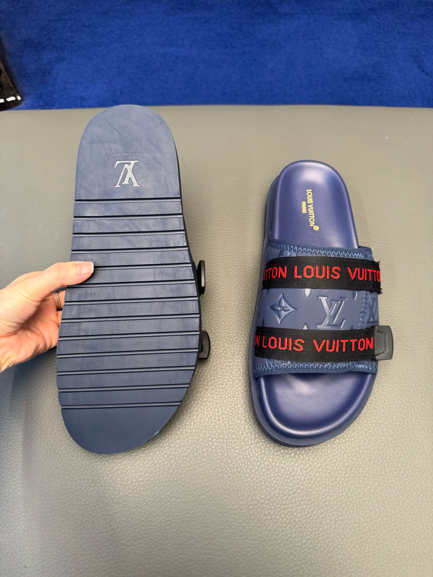 这款鞋子是AAAAA 1:1 质量 (非常棒). 使用了和原版一模一样的材料. 商标部分也保持了和路易威登/Louis Vuitton一样. 图片拍摄是实物鞋子拍摄, 您所收到的实物保证和我们图片一模一样.