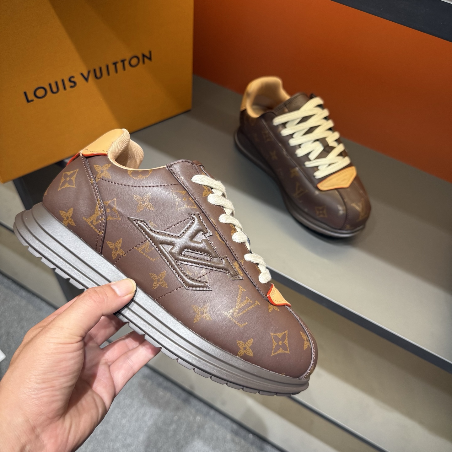 这款鞋子是AAAAA 1:1 质量 (非常棒). 使用了和原版一模一样的材料. 商标部分也保持了和路易威登/Louis Vuitton一样. 图片拍摄是实物鞋子拍摄, 您所收到的实物保证和我们图片一模一样.