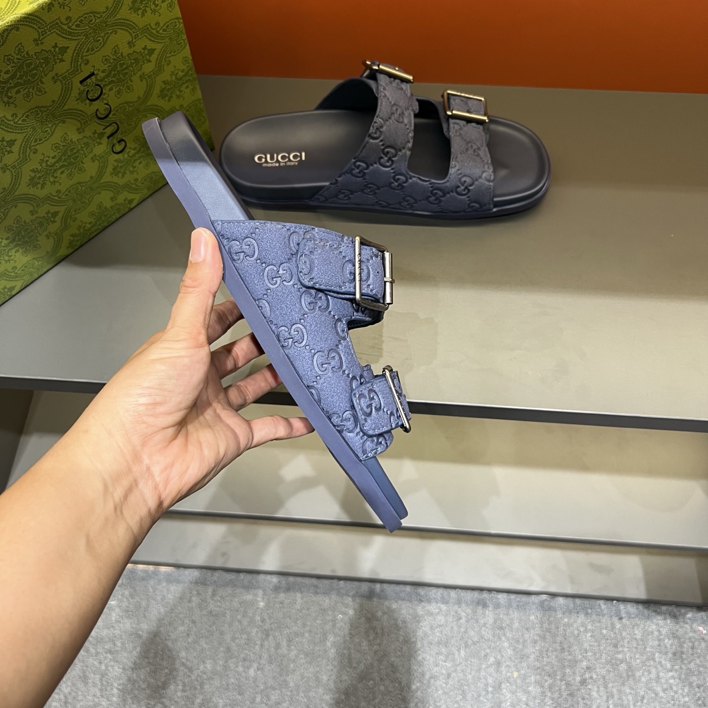 这款鞋子是AAAAA 1:1 质量 (非常棒). 使用了和原版一模一样的材料. 商标部分也保持了和古奇/Gucci一样. 图片拍摄是实物鞋子拍摄, 您所收到的实物保证和我们图片一模一样.