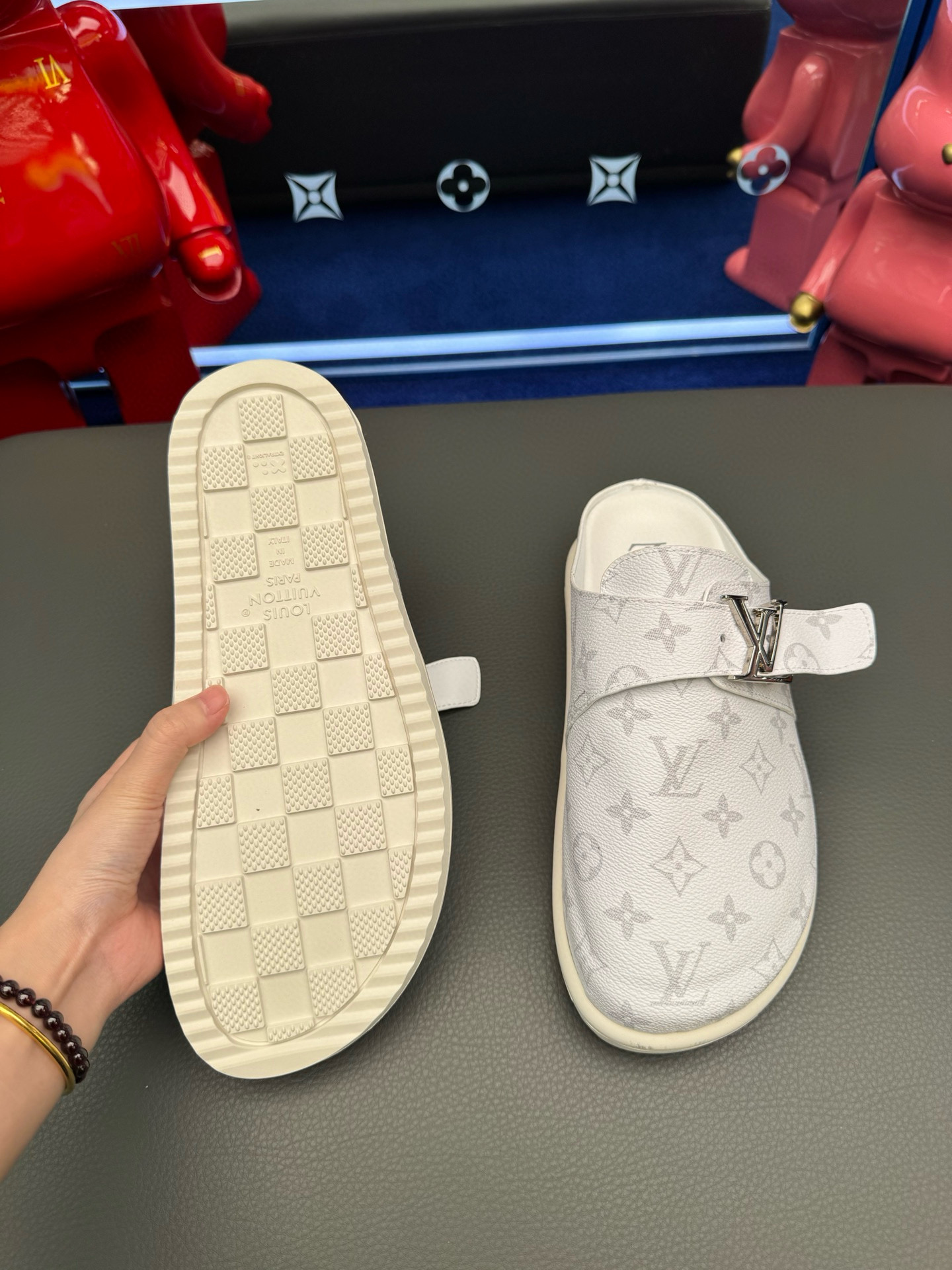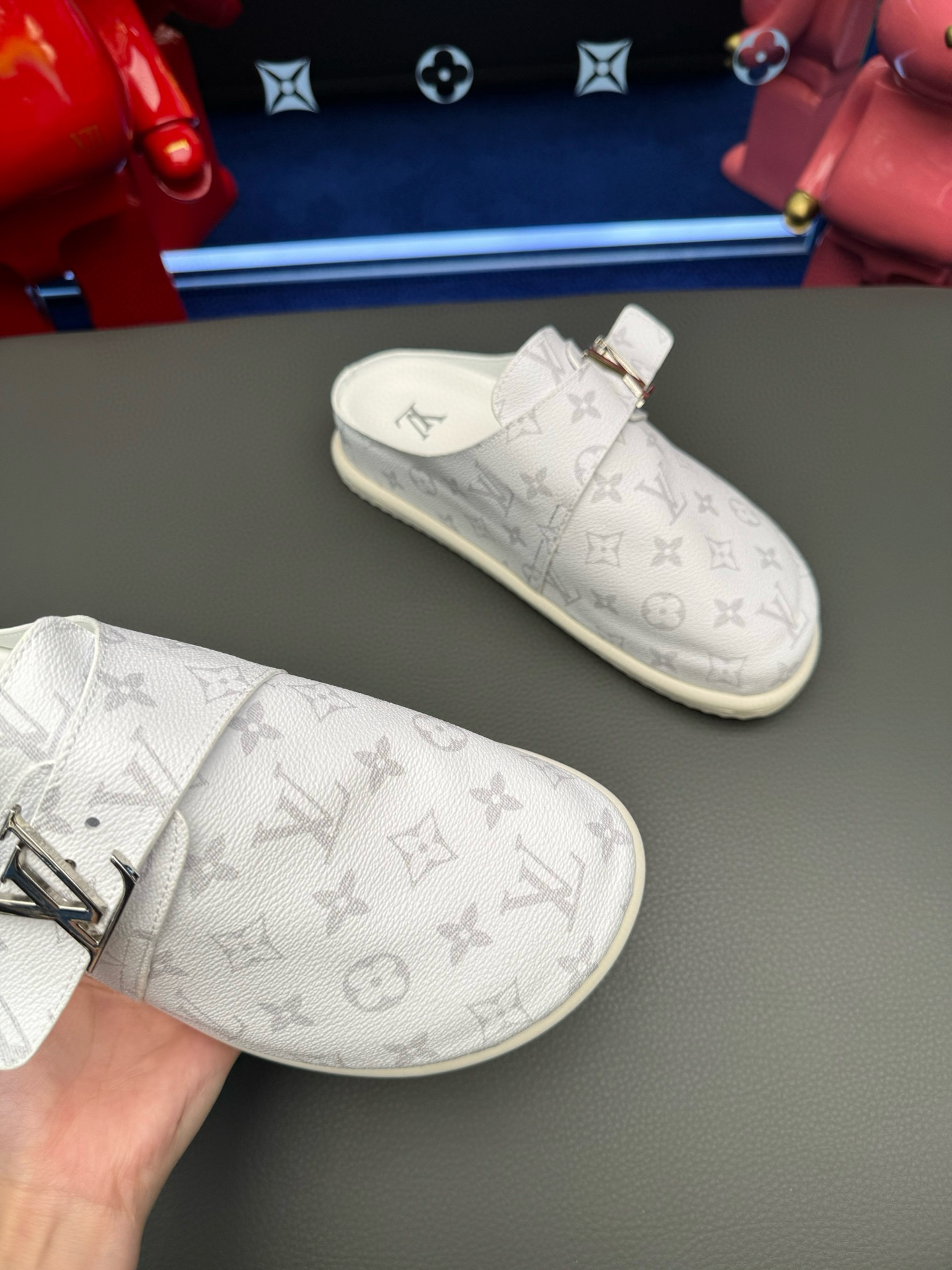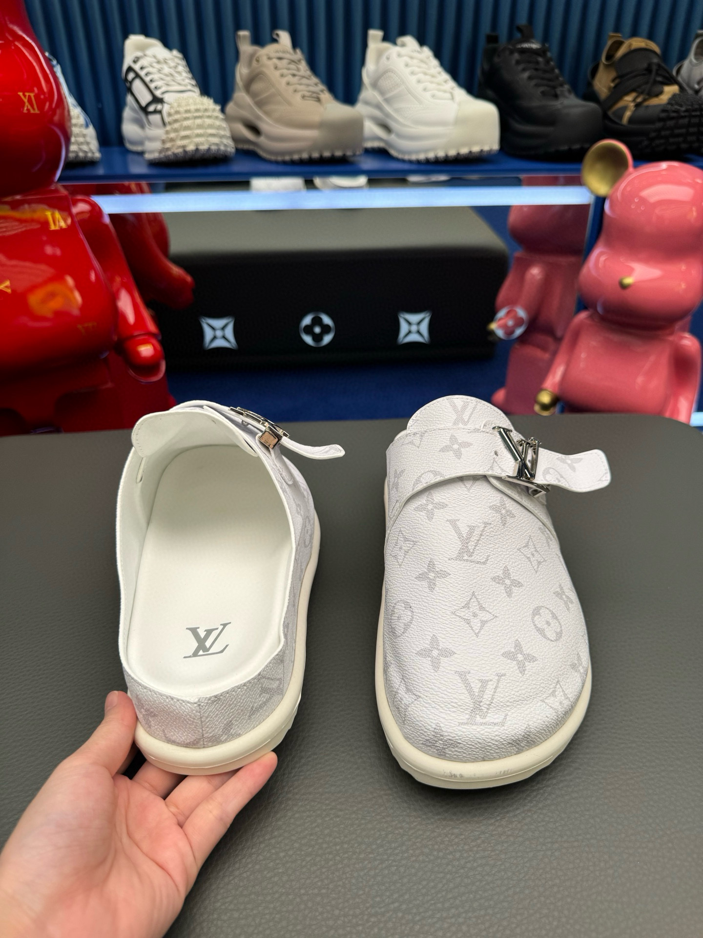 这款鞋子是AAAAA 1:1 质量 (非常棒). 使用了和原版一模一样的材料. 商标部分也保持了和路易威登/Louis Vuitton一样. 图片拍摄是实物鞋子拍摄, 您所收到的实物保证和我们图片一模一样.