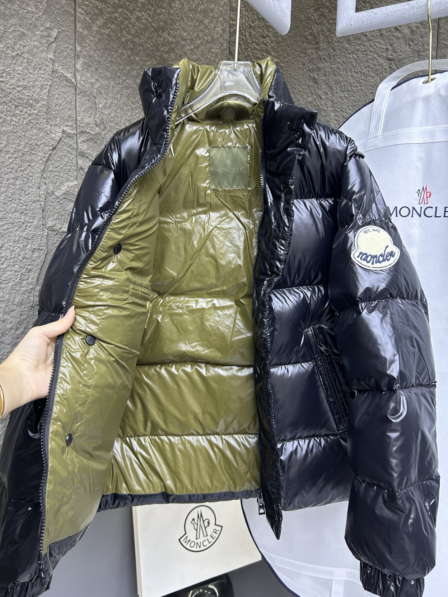 这款衣服是AAAAA 1:1 质量 (非常棒). 使用了和原版一模一样的材料. 商标部分也保持了和盟可睐/moncler一样. 图片拍摄是实物衣服拍摄, 您所收到的实物保证和我们图片一模一样.