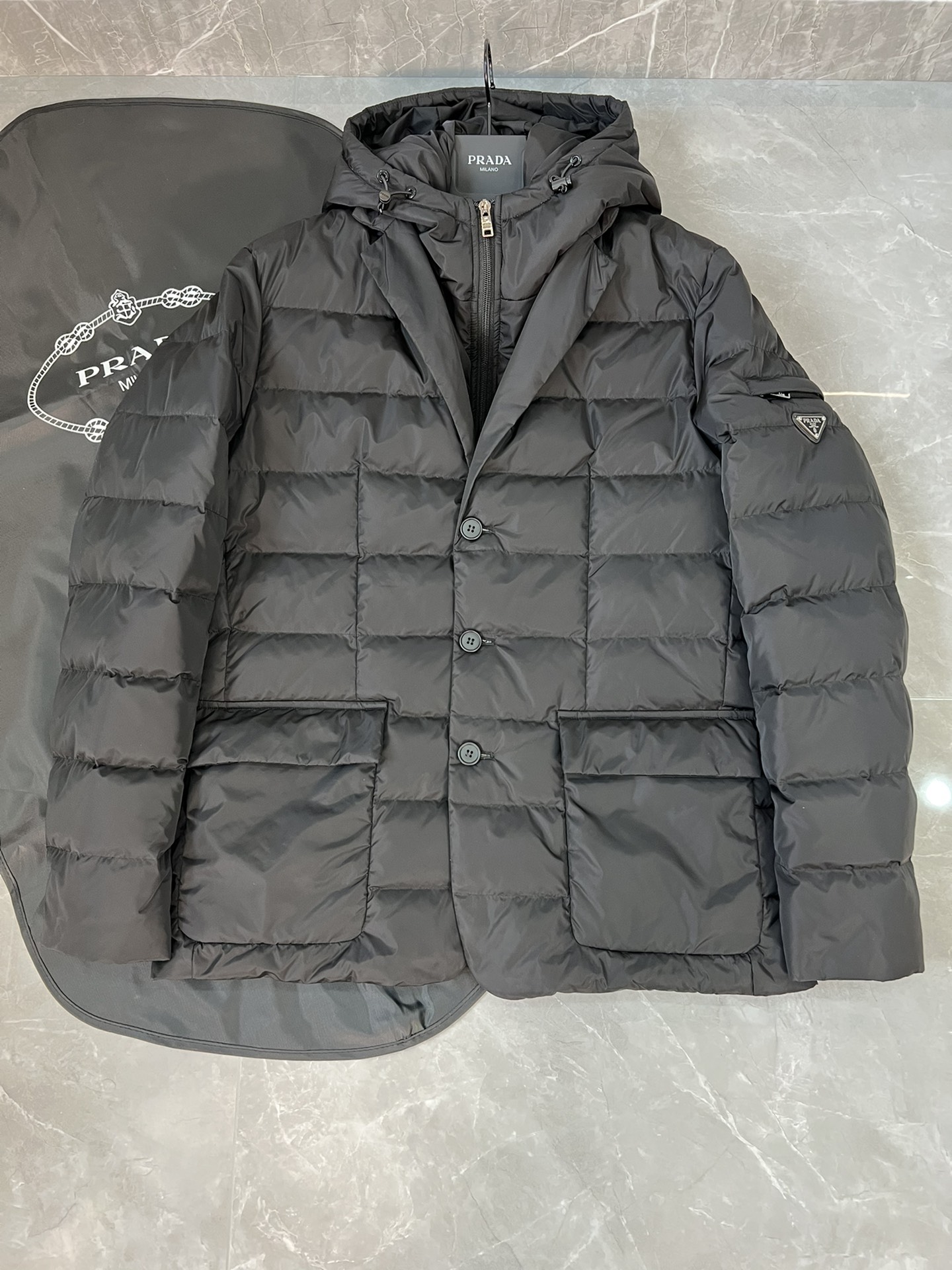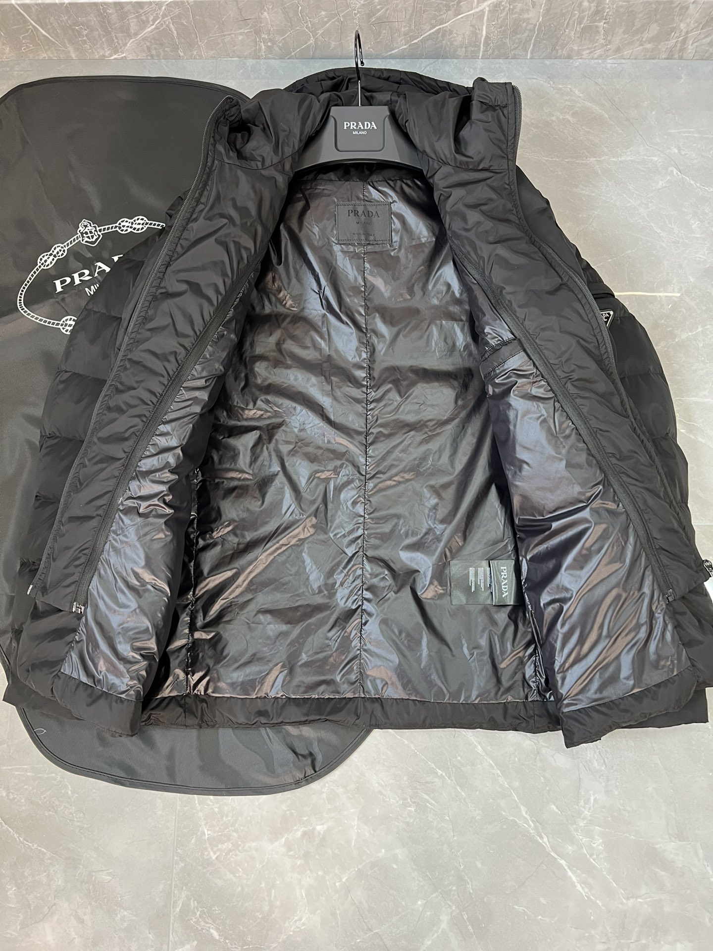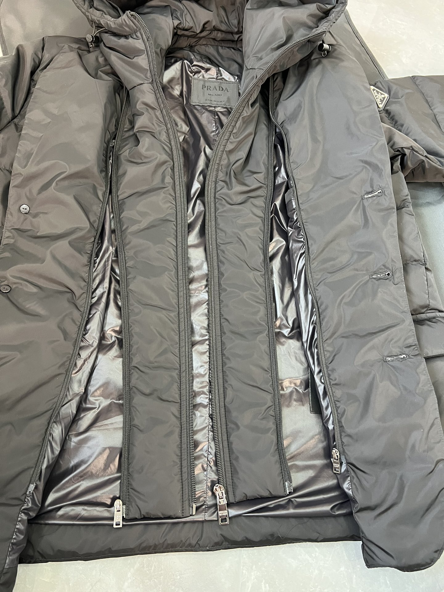 这款衣服是AAAAA 1:1 质量 (非常棒). 使用了和原版一模一样的材料. 商标部分也保持了和普拉达/Prada一样. 图片拍摄是实物衣服拍摄, 您所收到的实物保证和我们图片一模一样.