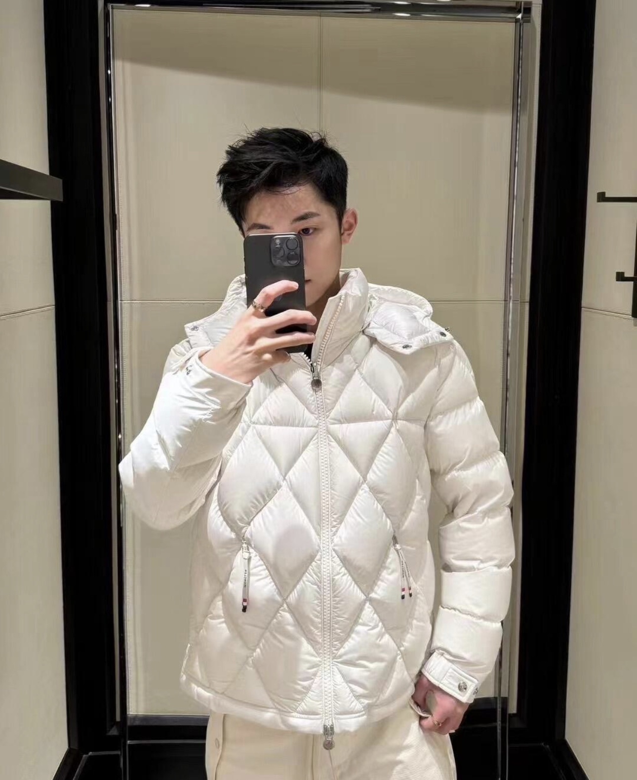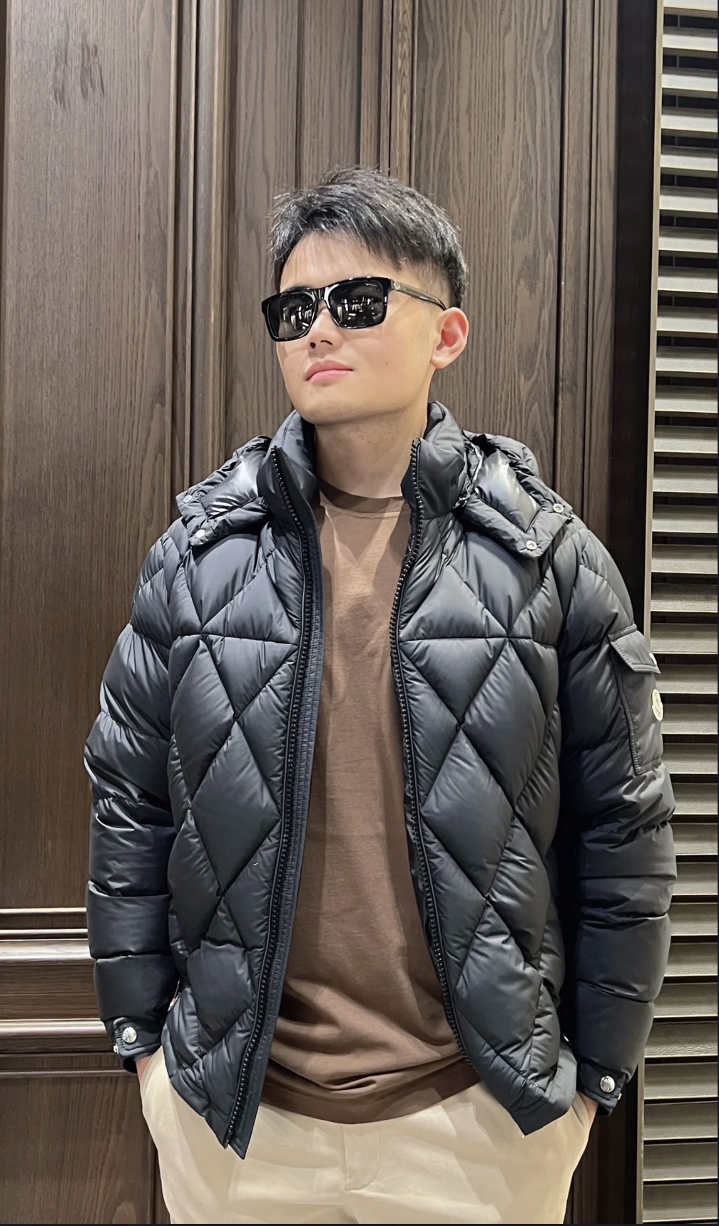 这款衣服是AAAAA 1:1 质量 (非常棒). 使用了和原版一模一样的材料. 商标部分也保持了和盟可睐/moncler一样. 图片拍摄是实物衣服拍摄, 您所收到的实物保证和我们图片一模一样.