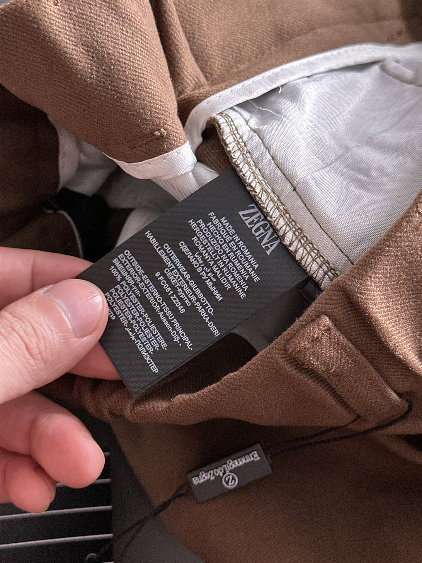 这款衣服是AAAAA 1:1 质量 (非常棒). 使用了和原版一模一样的材料. 商标部分也保持了和杰尼亚/Zegna一样. 图片拍摄是实物衣服拍摄, 您所收到的实物保证和我们图片一模一样.