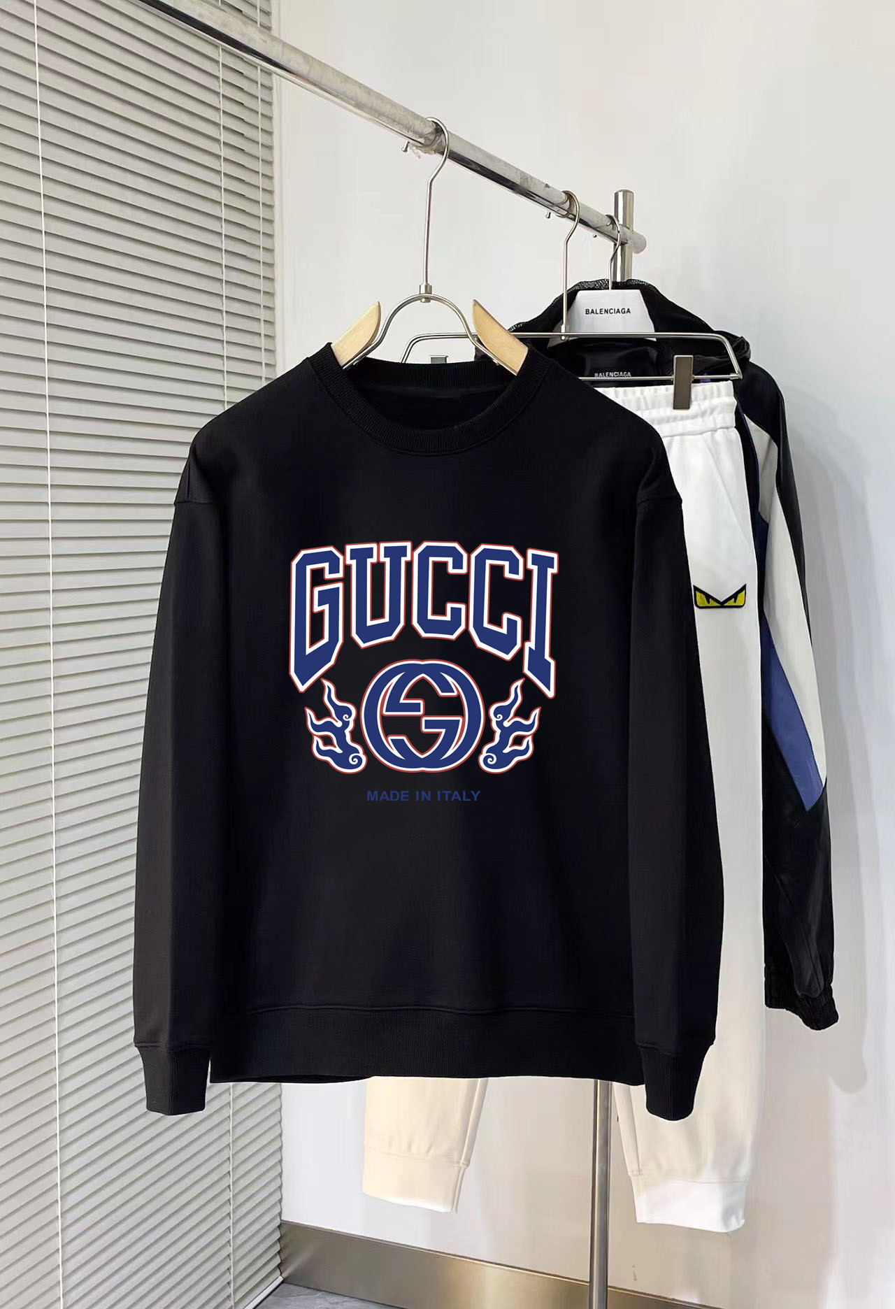 这款衣服是AAAAA 1:1 质量 (非常棒). 使用了和原版一模一样的材料. 商标部分也保持了和古奇/Gucci一样. 图片拍摄是实物衣服拍摄, 您所收到的实物保证和我们图片一模一样.