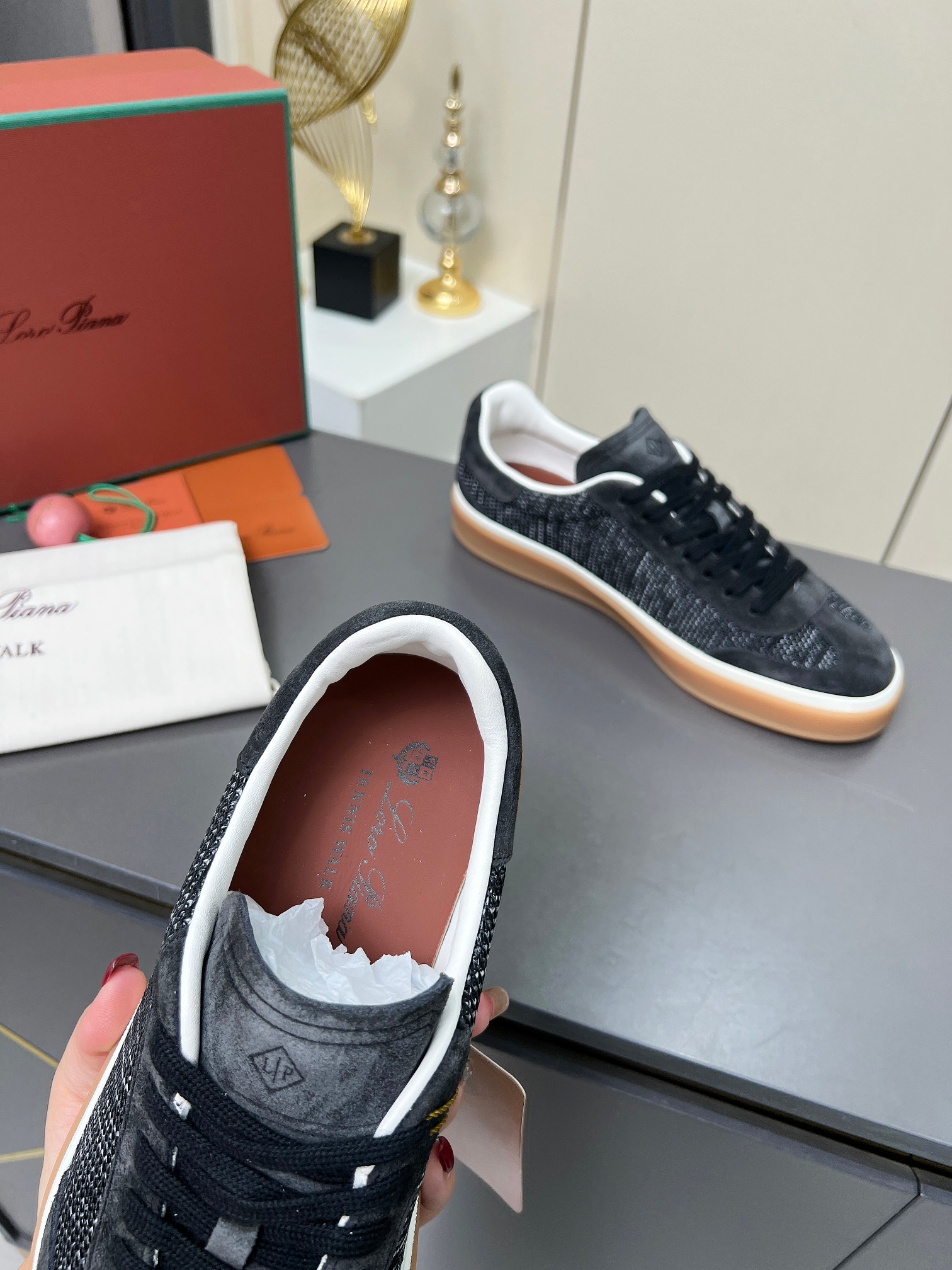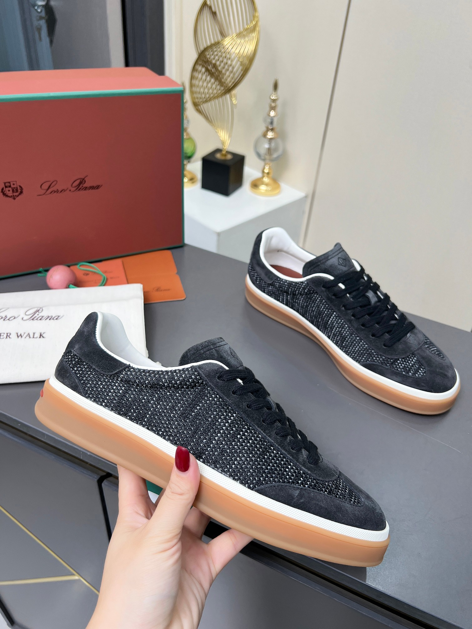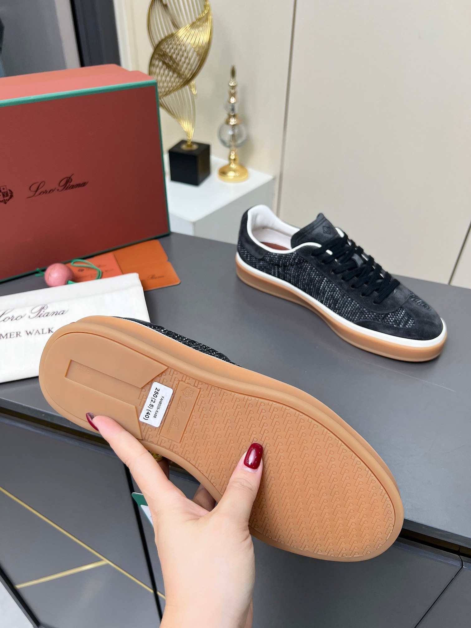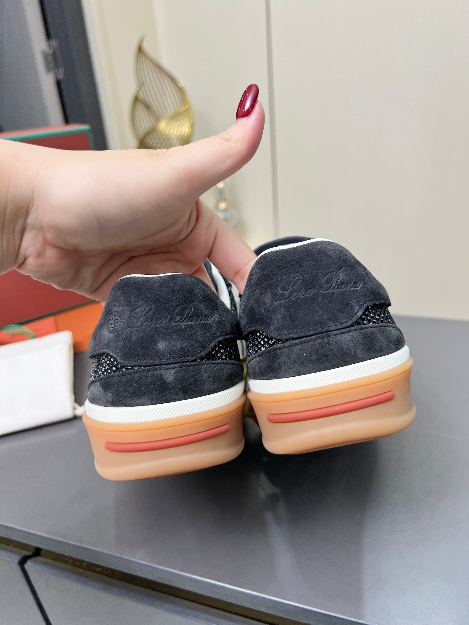 这款鞋子是AAAAA 1:1 质量 (非常棒). 使用了和原版一模一样的材料. 商标部分也保持了和洛罗皮亚纳/Loro Piana一样. 图片拍摄是实物鞋子拍摄, 您所收到的实物保证和我们图片一模一样.