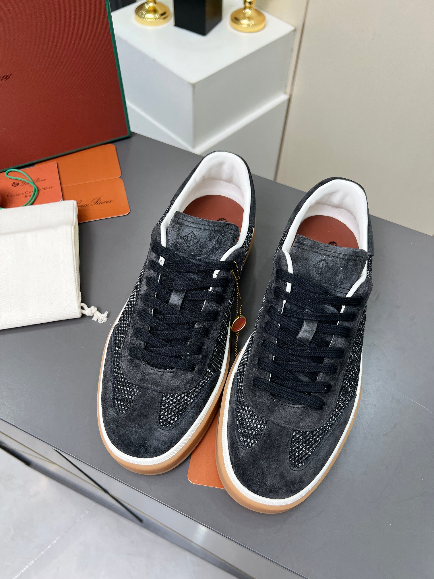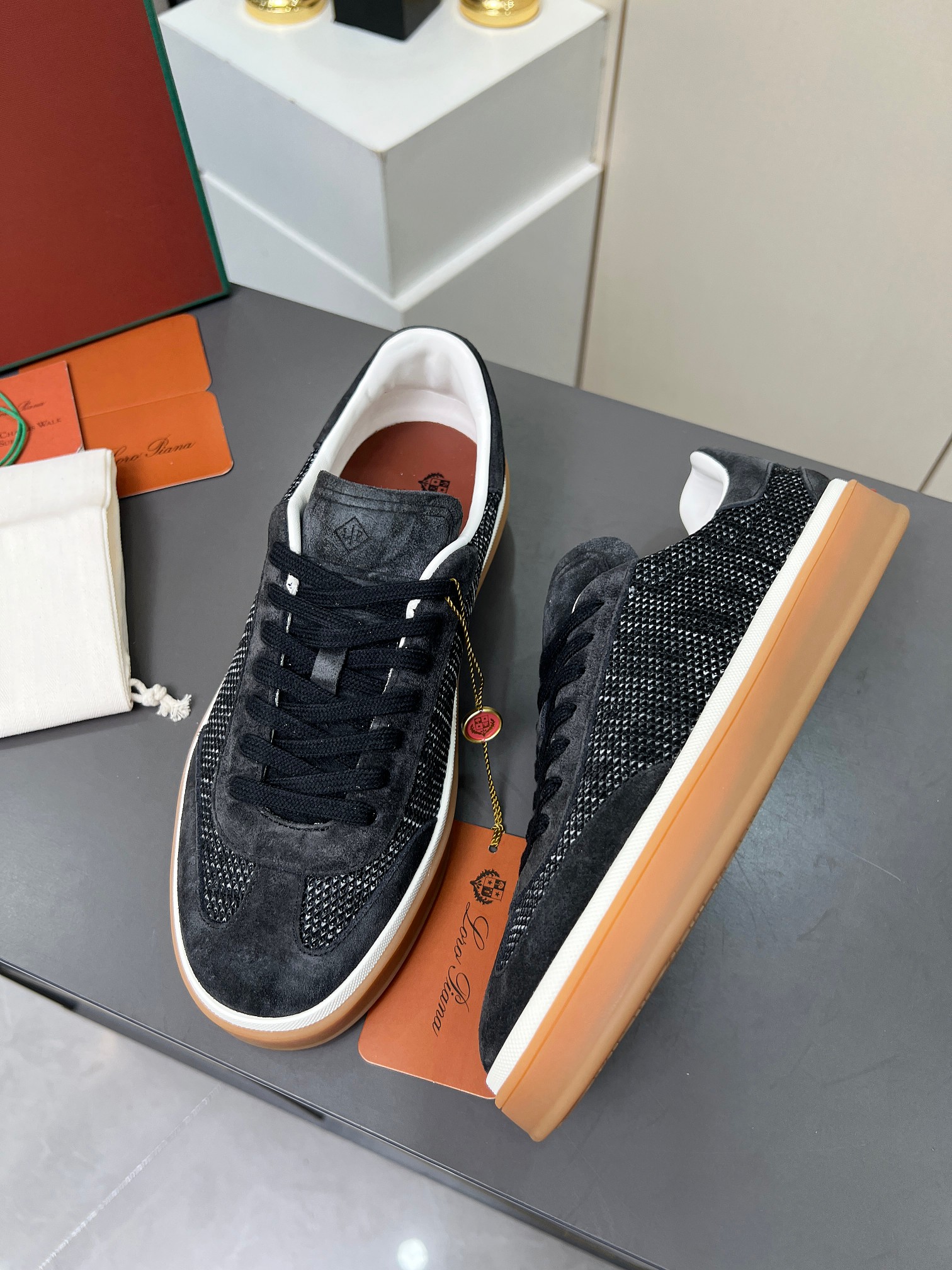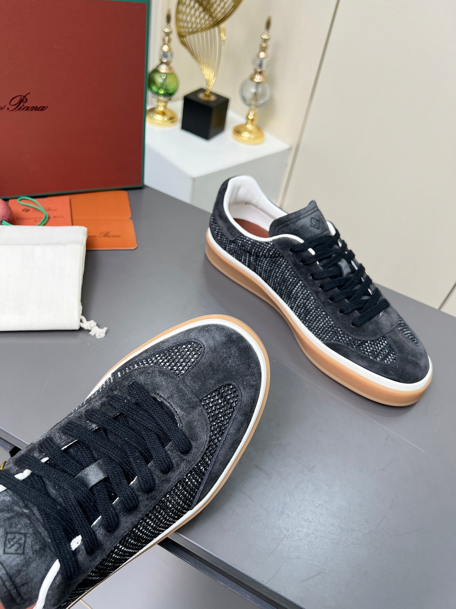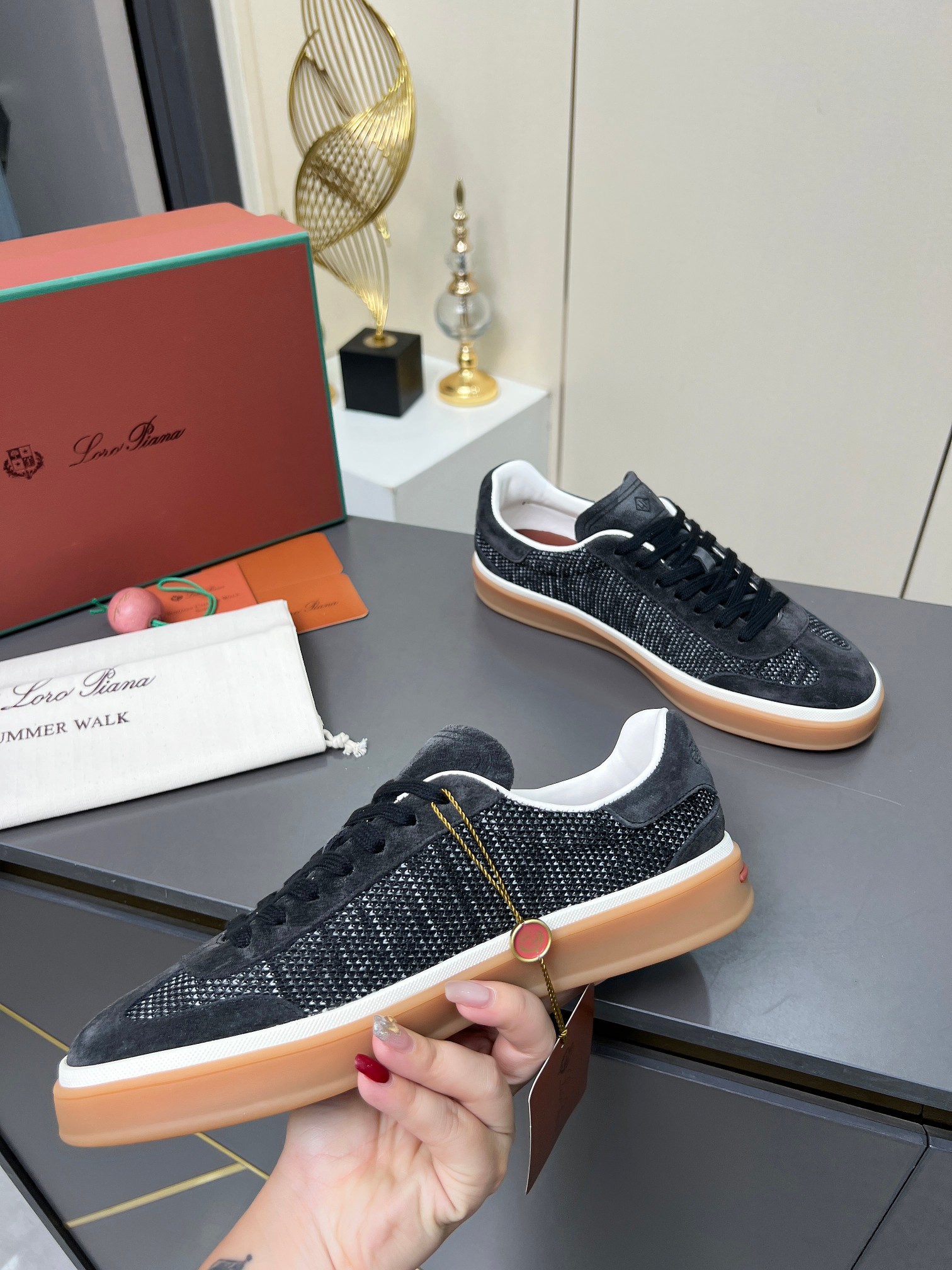 这款鞋子是AAAAA 1:1 质量 (非常棒). 使用了和原版一模一样的材料. 商标部分也保持了和洛罗皮亚纳/Loro Piana一样. 图片拍摄是实物鞋子拍摄, 您所收到的实物保证和我们图片一模一样.