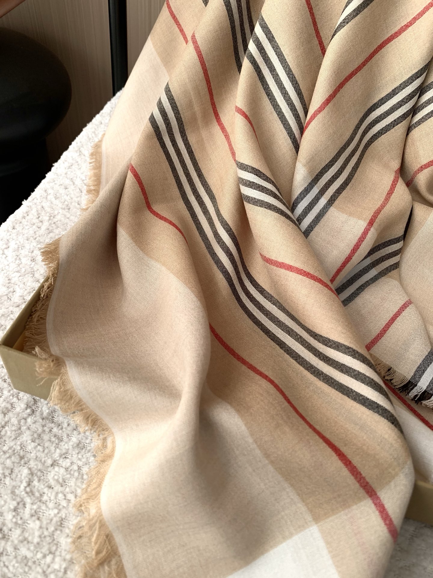 这款围巾是AAAAA 1:1 质量 (非常棒). 使用了和原版一模一样的材料. 商标部分也保持了和巴宝莉/Burberry一样. 图片拍摄是实物围巾拍摄, 您所收到的实物保证和我们图片一模一样.