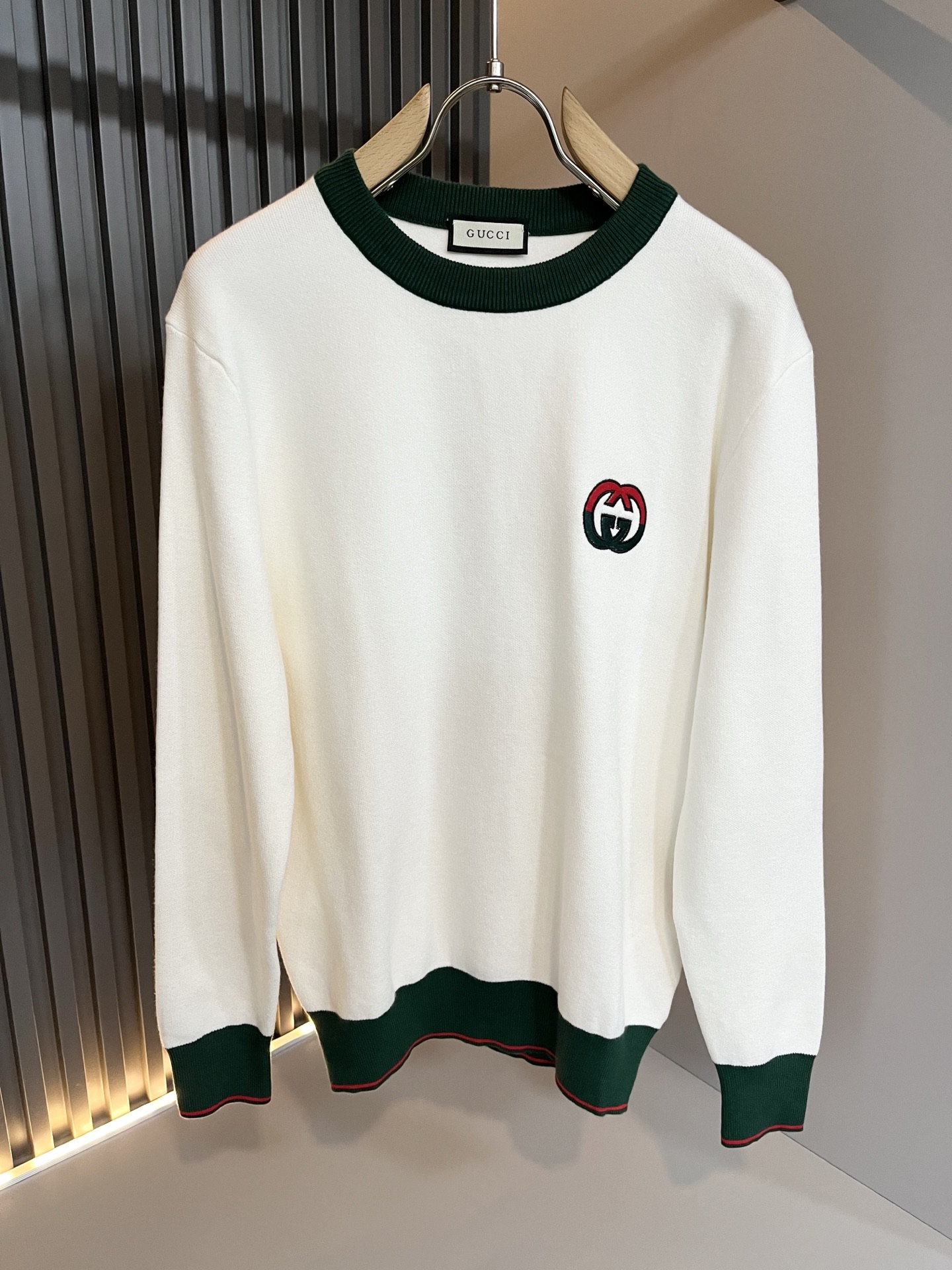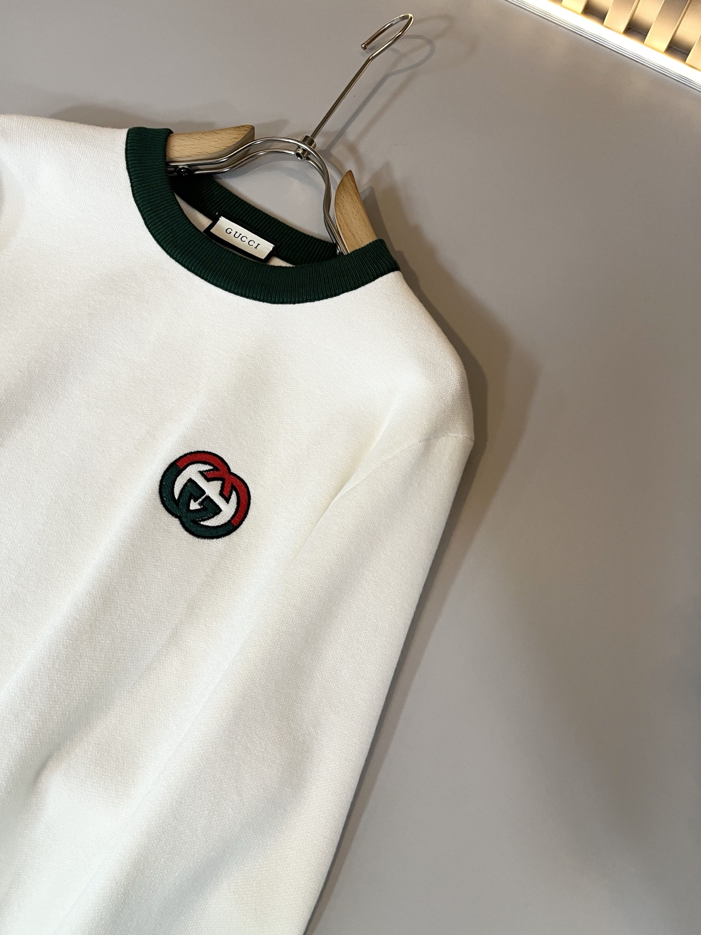 这款衣服是AAAAA 1:1 质量 (非常棒). 使用了和原版一模一样的材料. 商标部分也保持了和古奇/Gucci一样. 图片拍摄是实物衣服拍摄, 您所收到的实物保证和我们图片一模一样.