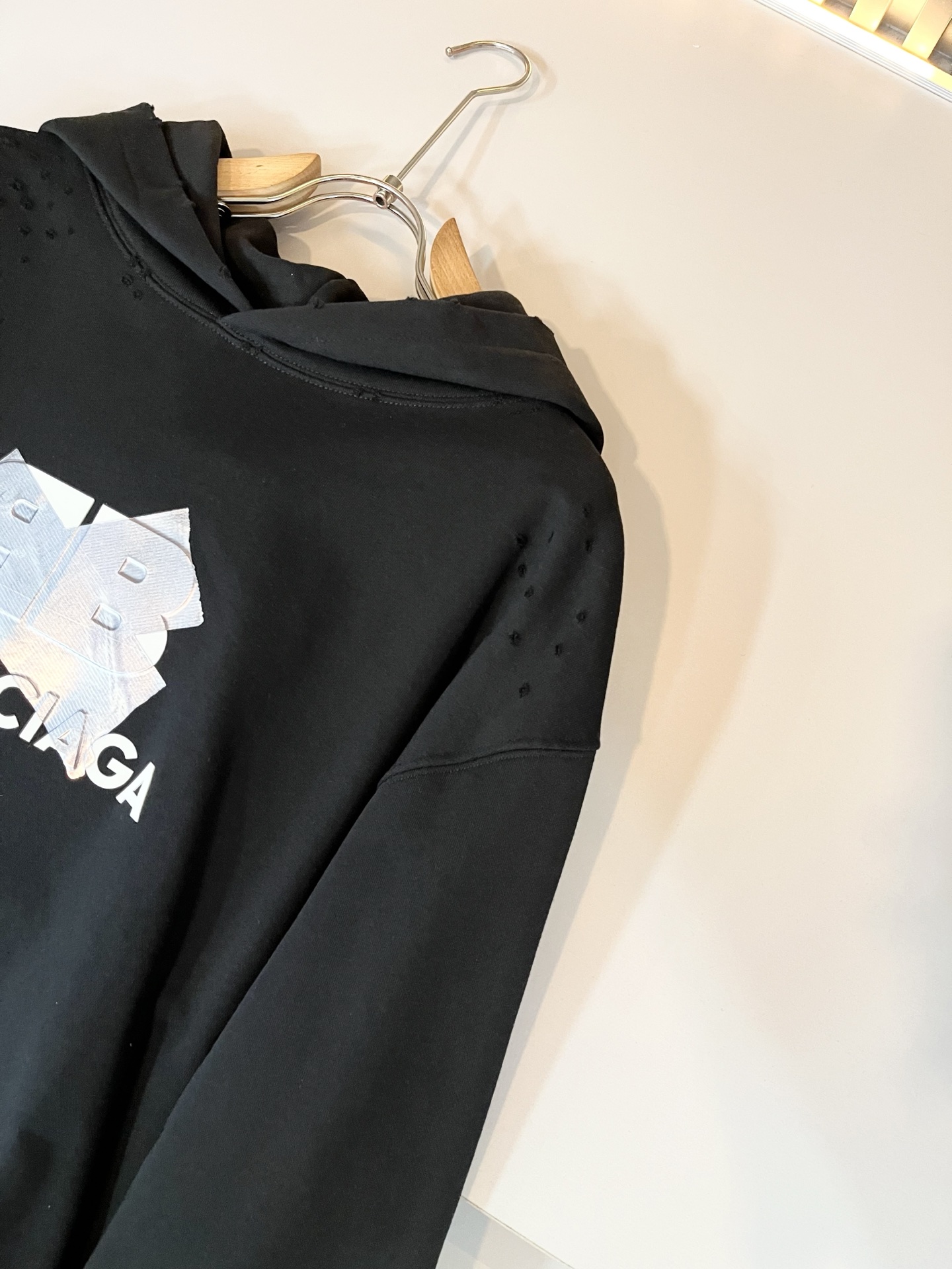 这款衣服是AAAAA 1:1 质量 (非常棒). 使用了和原版一模一样的材料. 商标部分也保持了和巴黎世家/Balenciaga一样. 图片拍摄是实物衣服拍摄, 您所收到的实物保证和我们图片一模一样.
