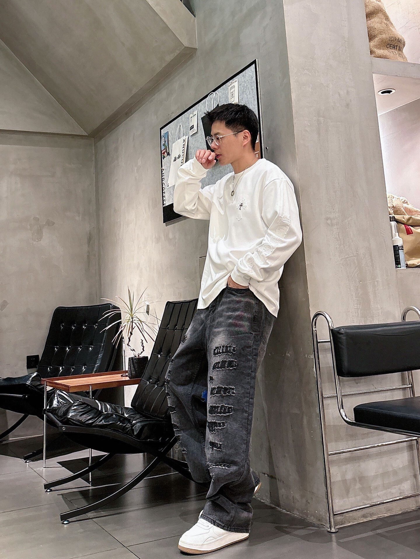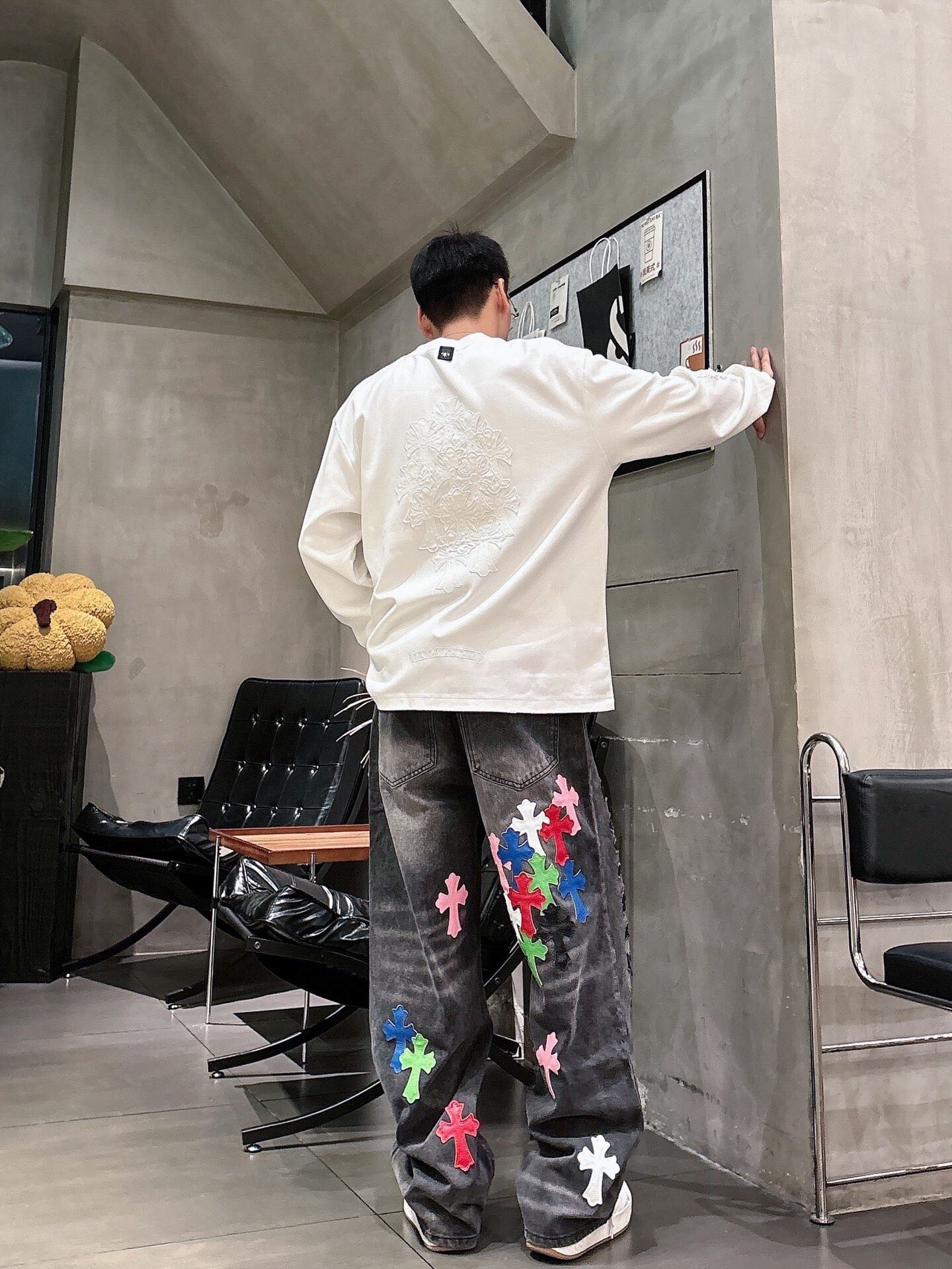 这款衣服是AAAAA 1:1 质量 (非常棒). 使用了和原版一模一样的材料. 商标部分也保持了和克罗心/Chrome Hearts一样. 图片拍摄是实物衣服拍摄, 您所收到的实物保证和我们图片一模一样.