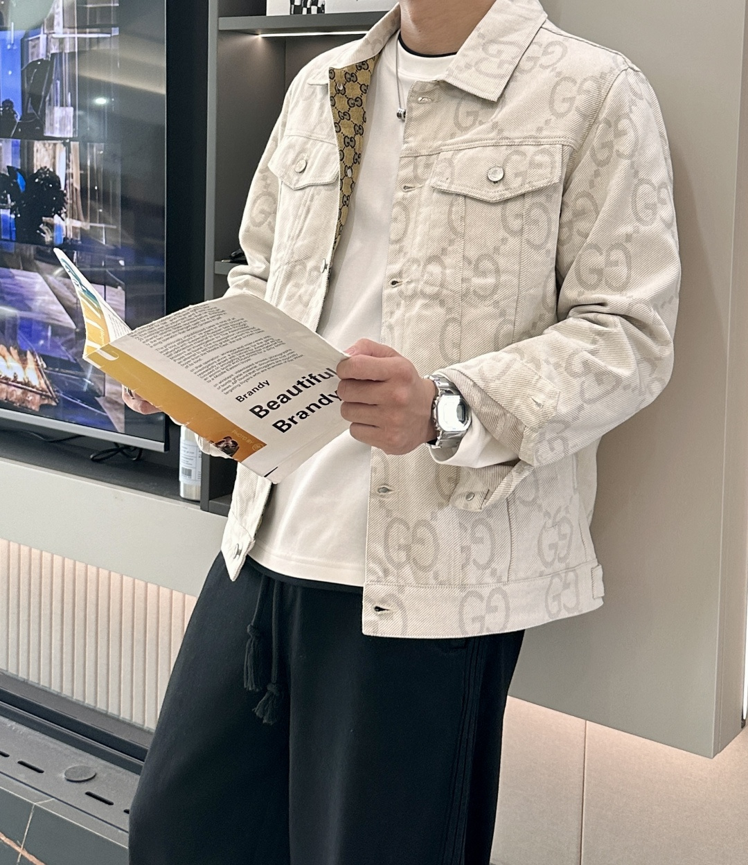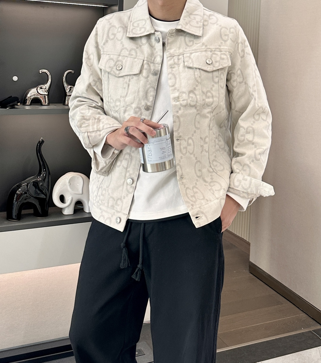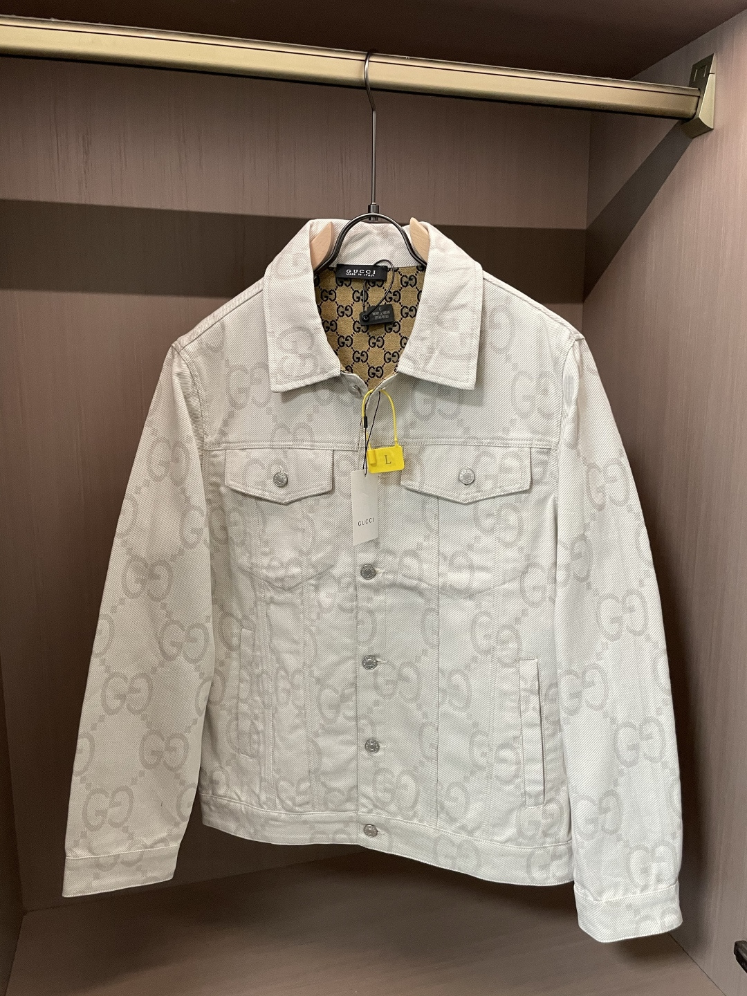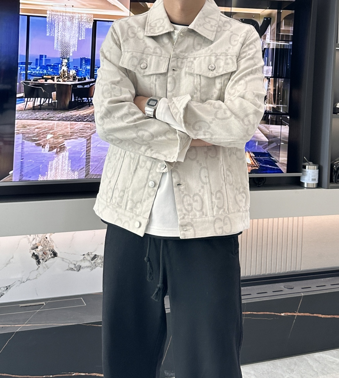 这款衣服是AAAAA 1:1 质量 (非常棒). 使用了和原版一模一样的材料. 商标部分也保持了和古奇/Gucci一样. 图片拍摄是实物衣服拍摄, 您所收到的实物保证和我们图片一模一样.
