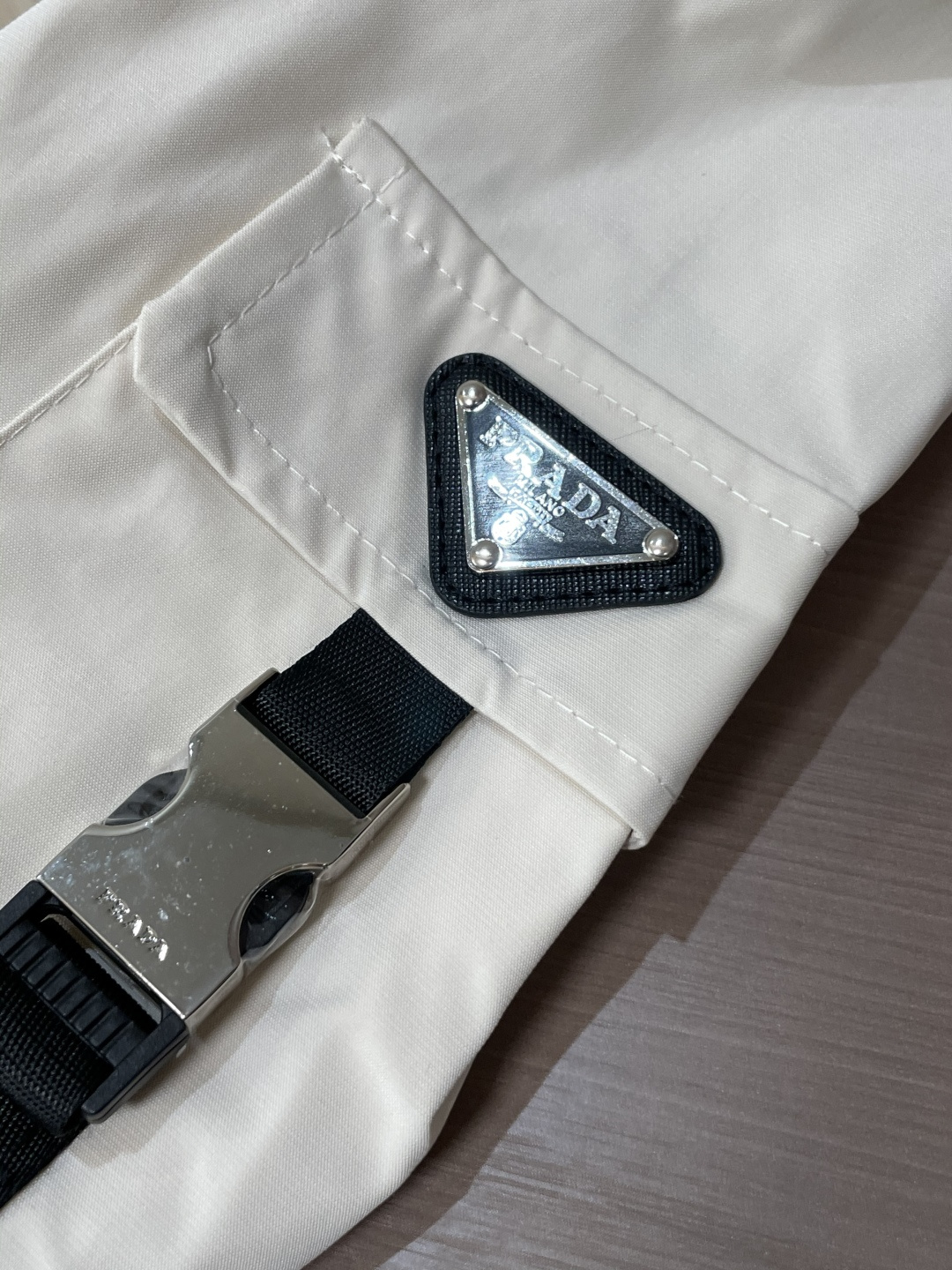 这款衣服是AAAAA 1:1 质量 (非常棒). 使用了和原版一模一样的材料. 商标部分也保持了和普拉达/Prada一样. 图片拍摄是实物衣服拍摄, 您所收到的实物保证和我们图片一模一样.