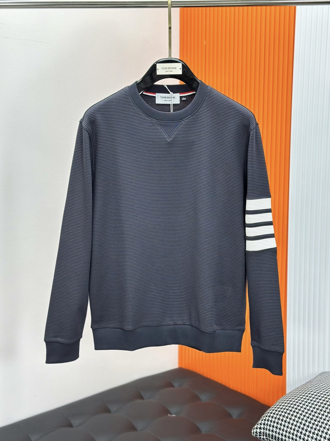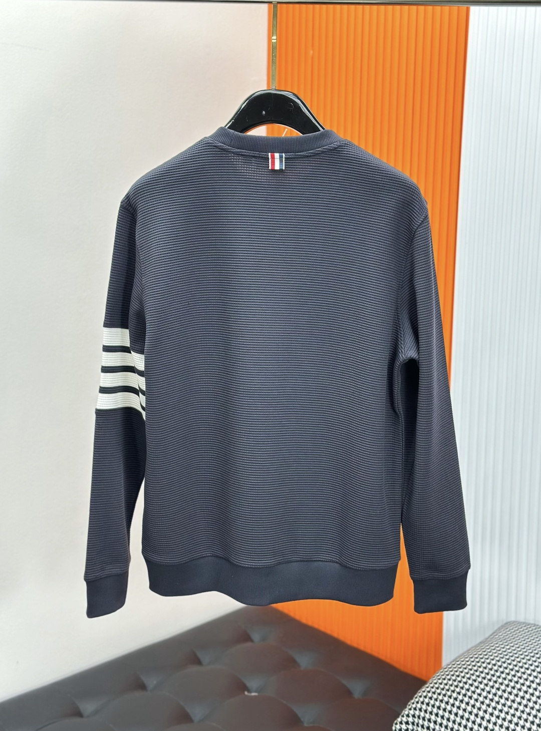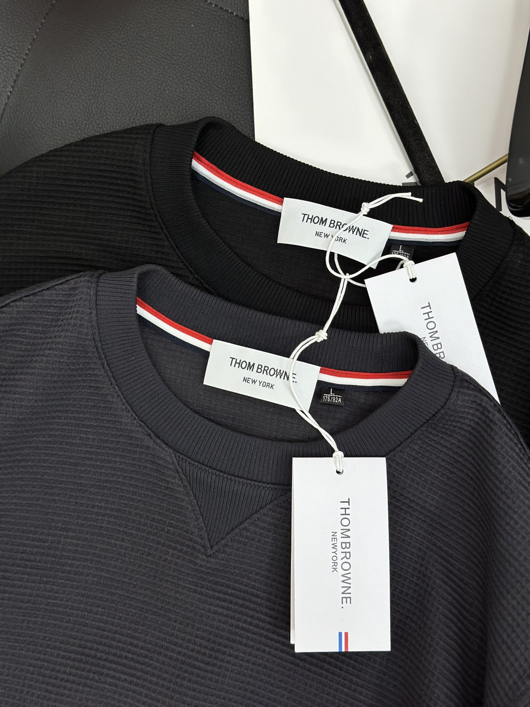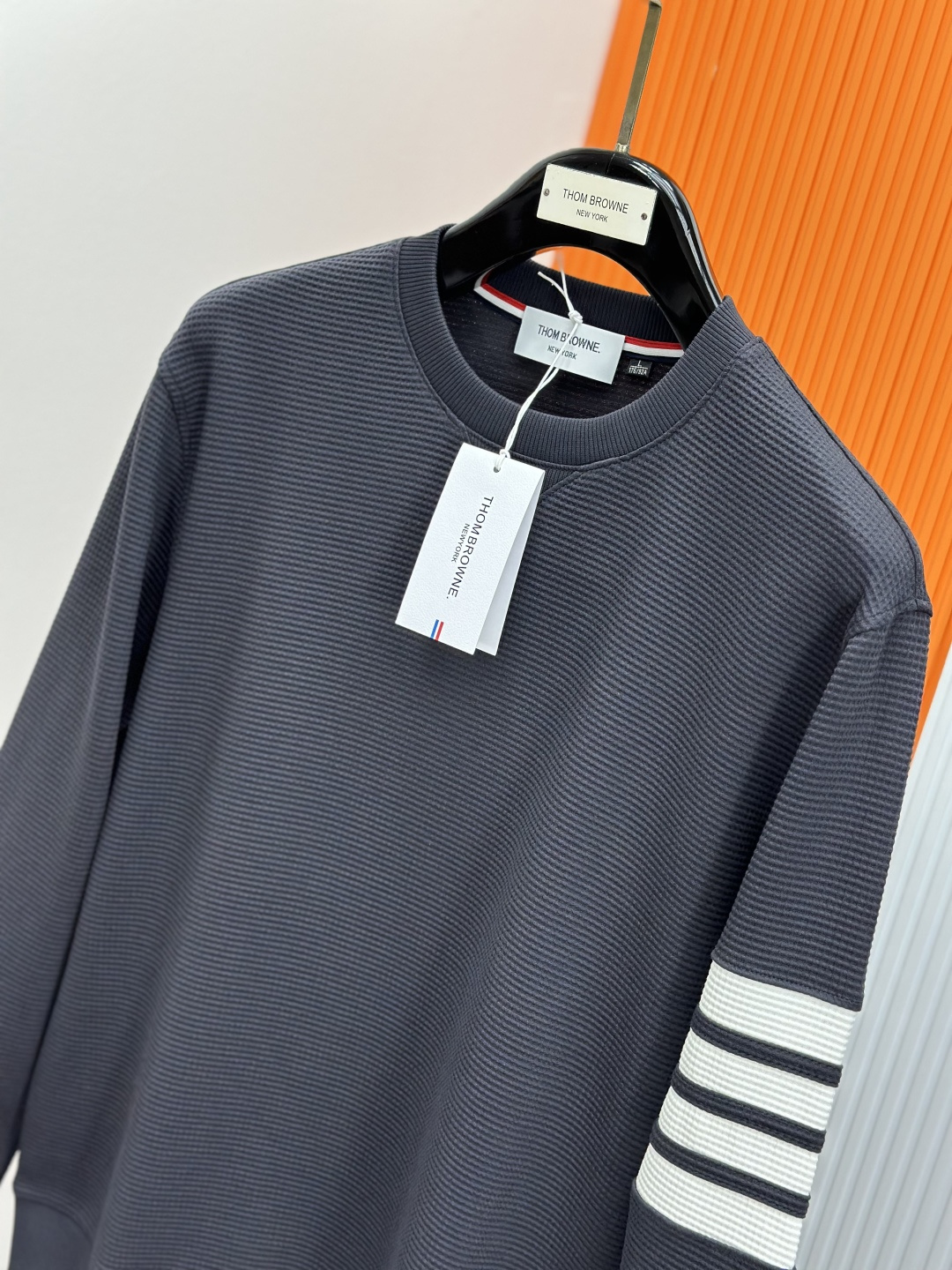 这款衣服是AAAAA 1:1 质量 (非常棒). 使用了和原版一模一样的材料. 商标部分也保持了和汤姆布朗/Thom Browne一样. 图片拍摄是实物衣服拍摄, 您所收到的实物保证和我们图片一模一样.