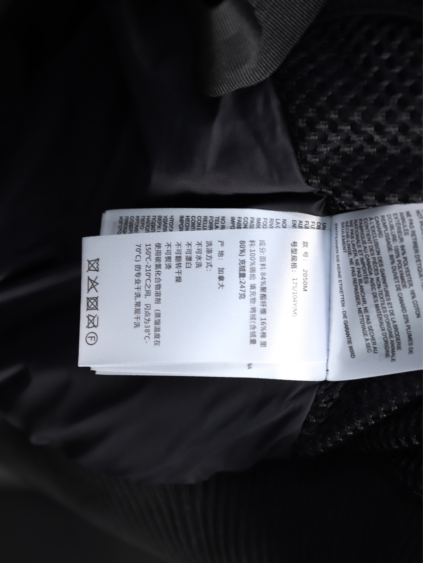 这款衣服是AAAAA 1:1 质量 (非常棒). 使用了和原版一模一样的材料. 商标部分也保持了和Canada Goose一样. 图片拍摄是实物衣服拍摄, 您所收到的实物保证和我们图片一模一样.