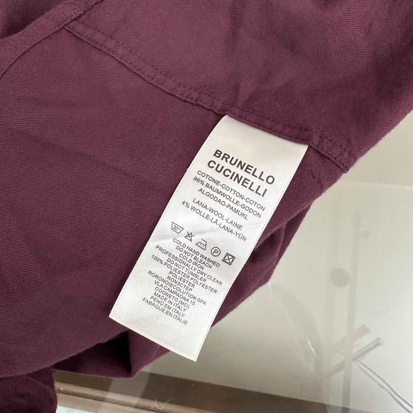 这款衣服是AAAAA 1:1 质量 (非常棒). 使用了和原版一模一样的材料. 商标部分也保持了和Brunello Cucinelli一样. 图片拍摄是实物衣服拍摄, 您所收到的实物保证和我们图片一模一样.