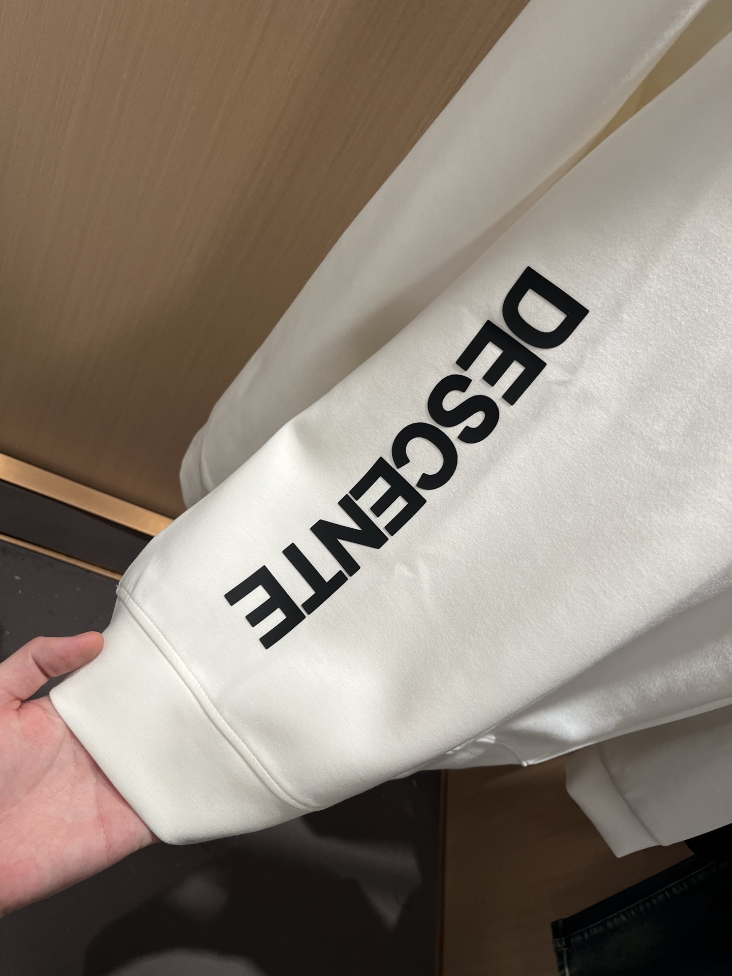 这款衣服是AAAAA 1:1 质量 (非常棒). 使用了和原版一模一样的材料. 商标部分也保持了和Descente一样. 图片拍摄是实物衣服拍摄, 您所收到的实物保证和我们图片一模一样.
