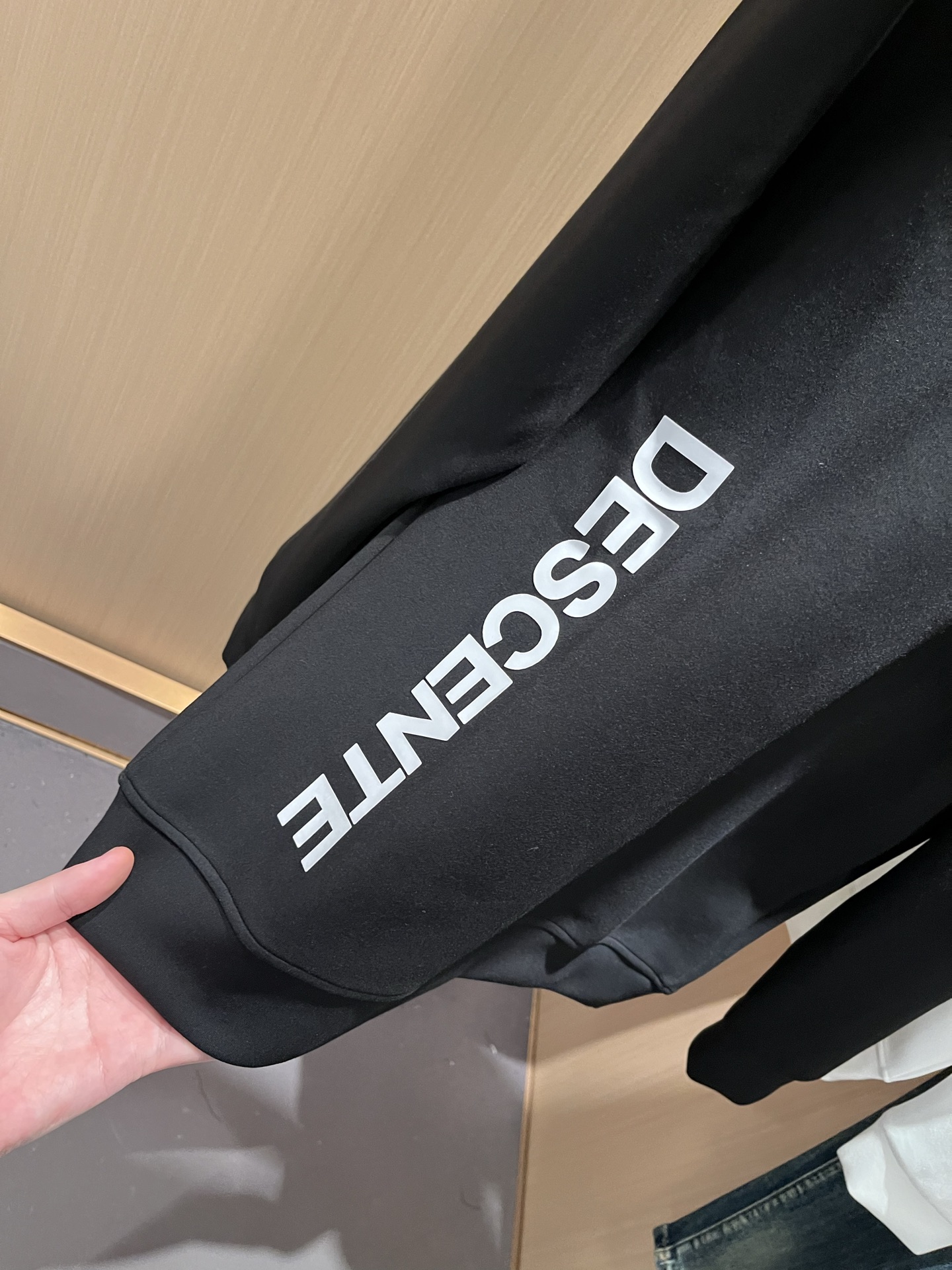 这款衣服是AAAAA 1:1 质量 (非常棒). 使用了和原版一模一样的材料. 商标部分也保持了和Descente一样. 图片拍摄是实物衣服拍摄, 您所收到的实物保证和我们图片一模一样.
