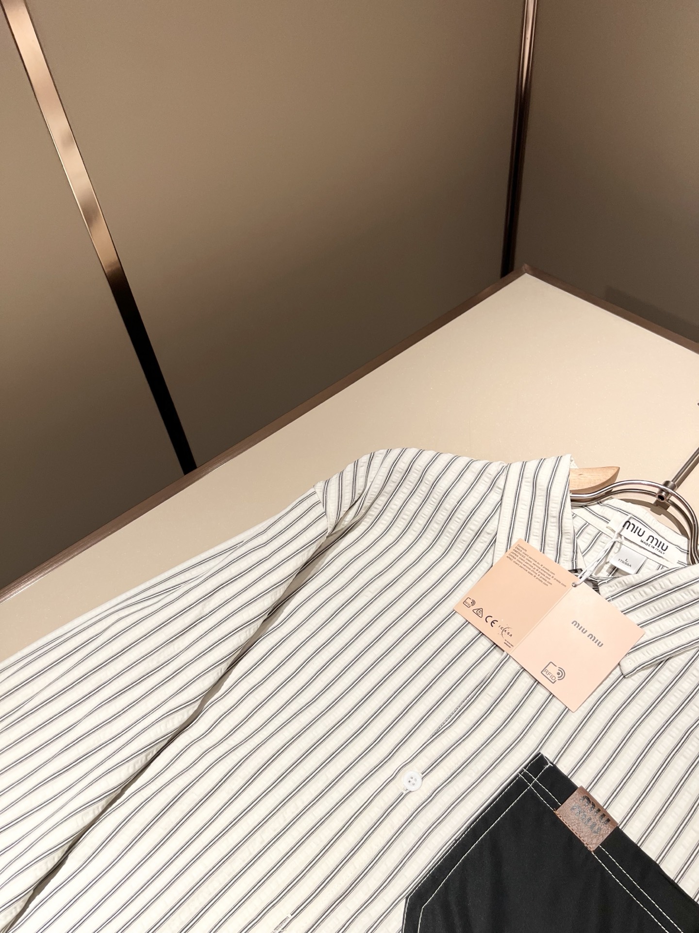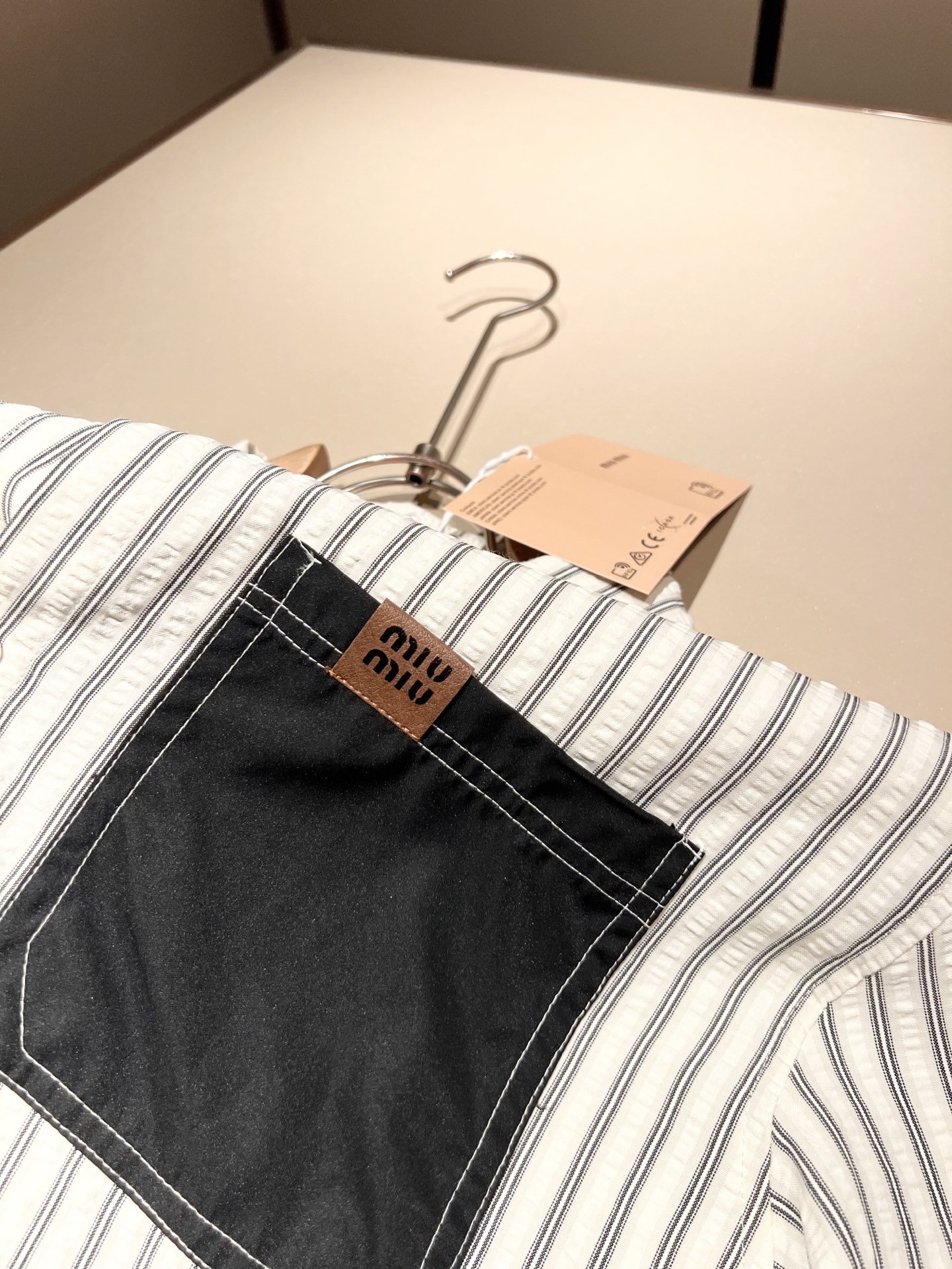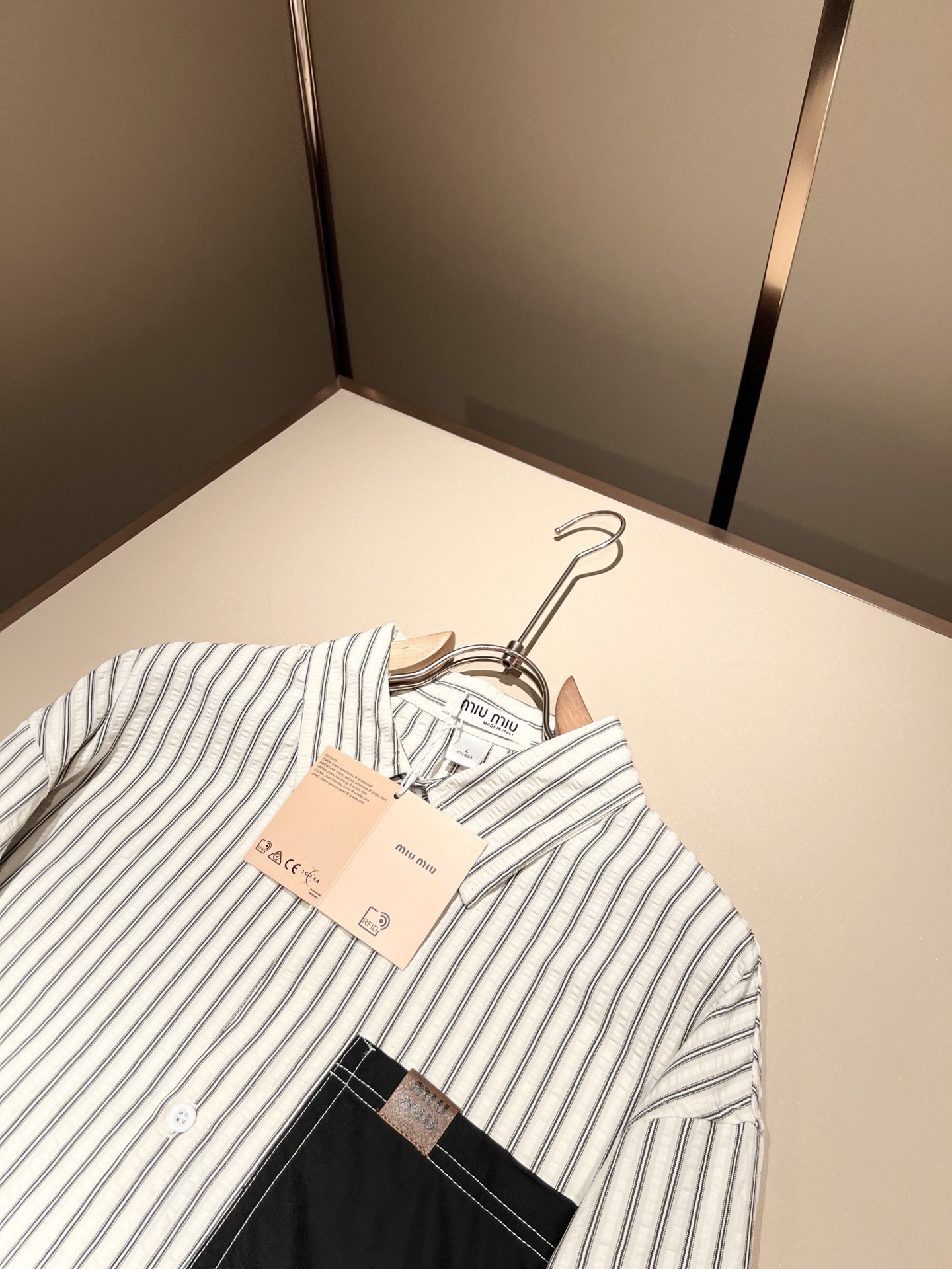 这款衣服是AAAAA 1:1 质量 (非常棒). 使用了和原版一模一样的材料. 商标部分也保持了和缪缪/Miu Miu一样. 图片拍摄是实物衣服拍摄, 您所收到的实物保证和我们图片一模一样.