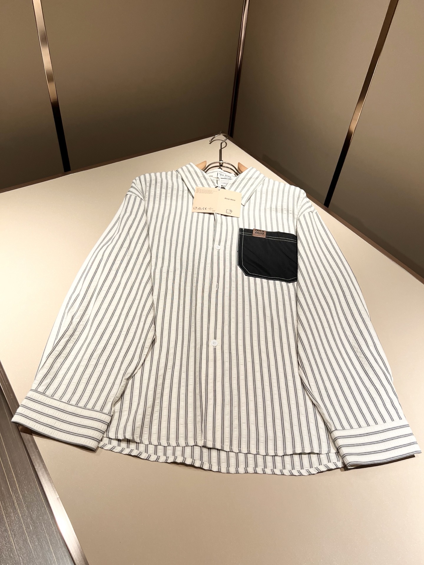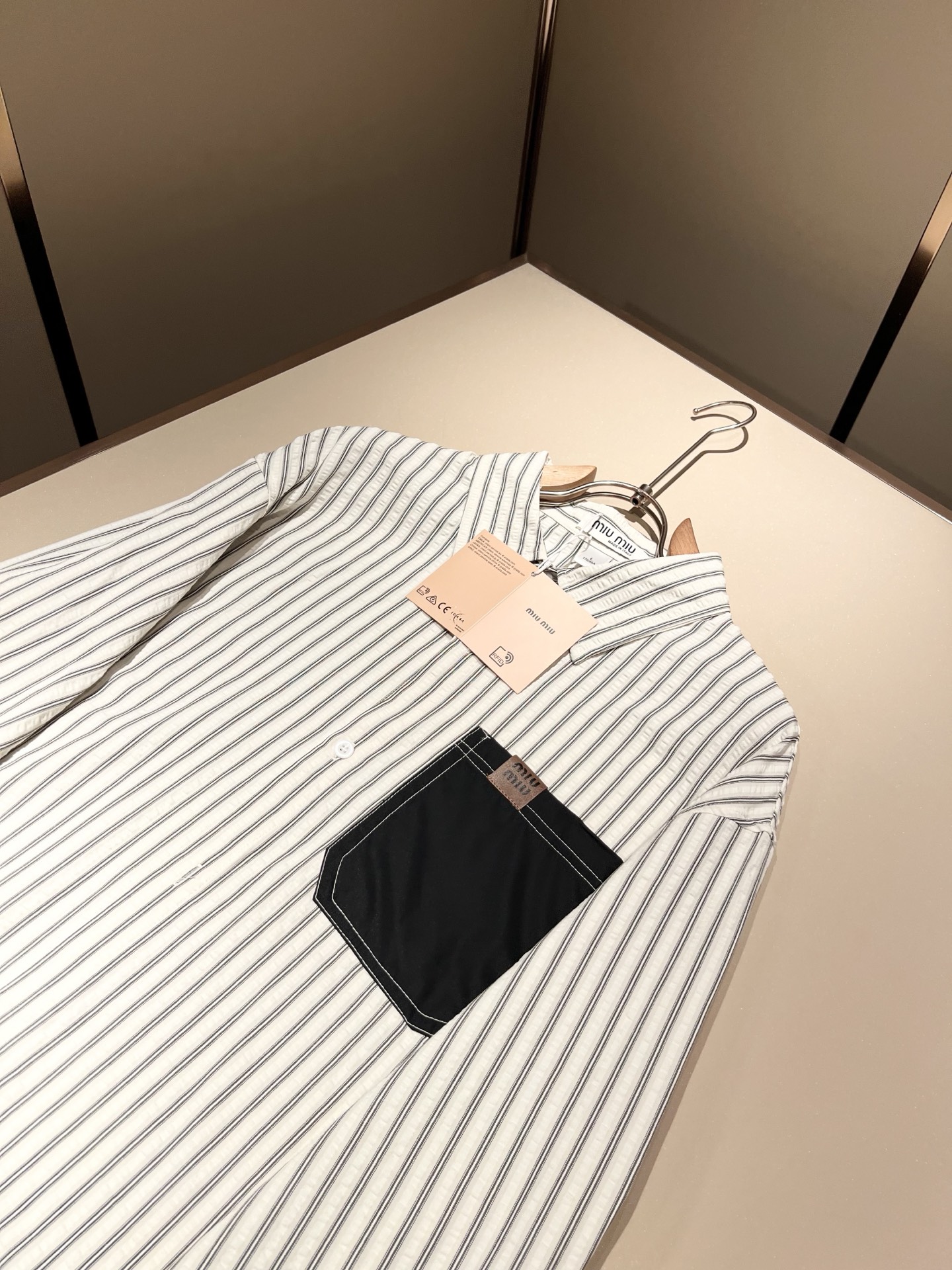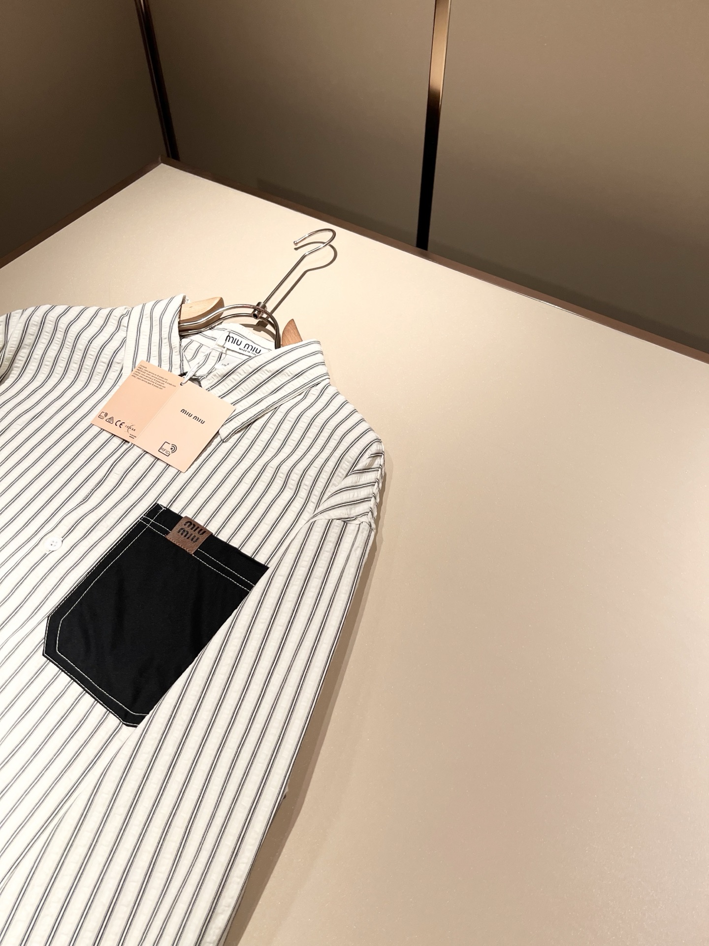 这款衣服是AAAAA 1:1 质量 (非常棒). 使用了和原版一模一样的材料. 商标部分也保持了和缪缪/Miu Miu一样. 图片拍摄是实物衣服拍摄, 您所收到的实物保证和我们图片一模一样.