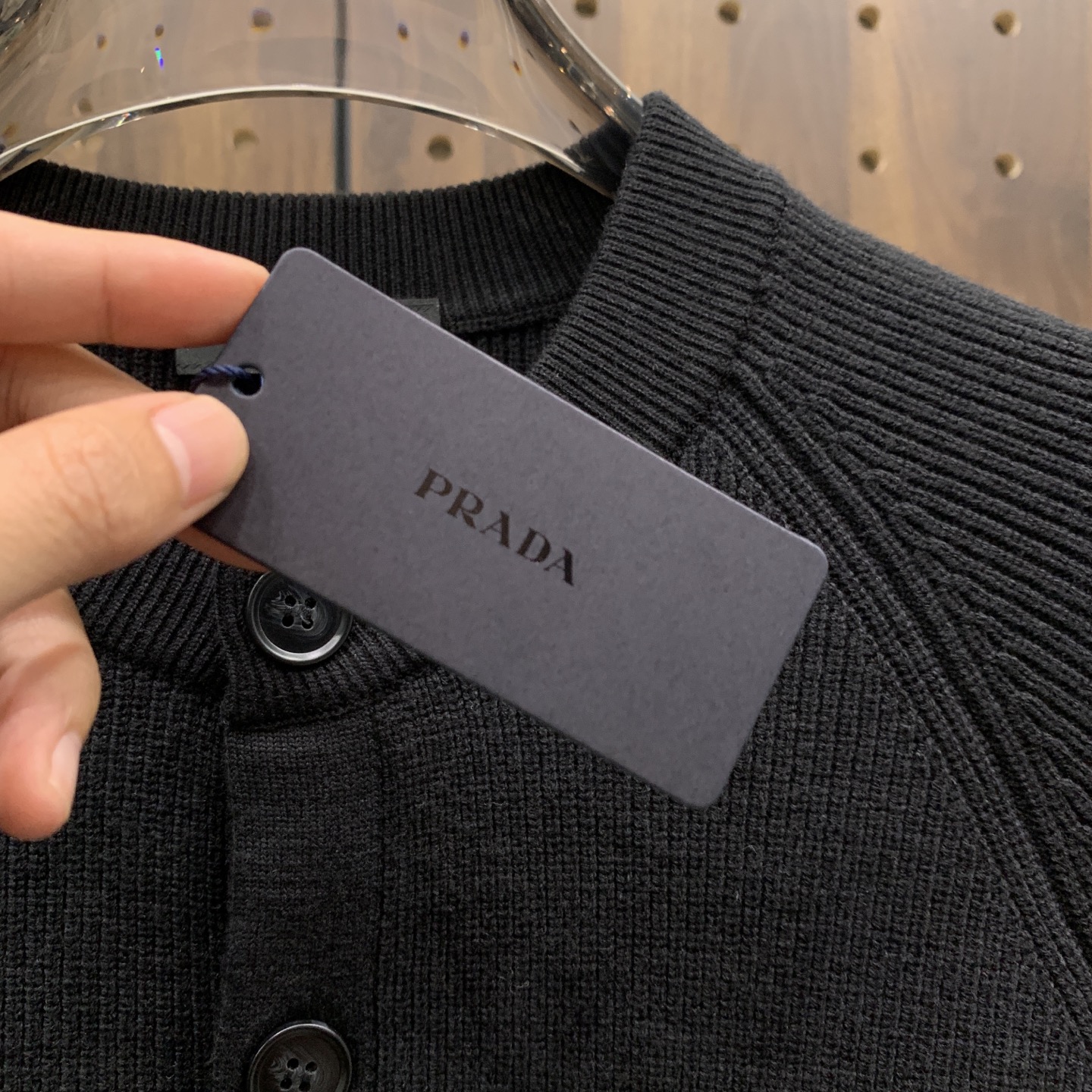 这款衣服是AAAAA 1:1 质量 (非常棒). 使用了和原版一模一样的材料. 商标部分也保持了和普拉达/Prada一样. 图片拍摄是实物衣服拍摄, 您所收到的实物保证和我们图片一模一样.