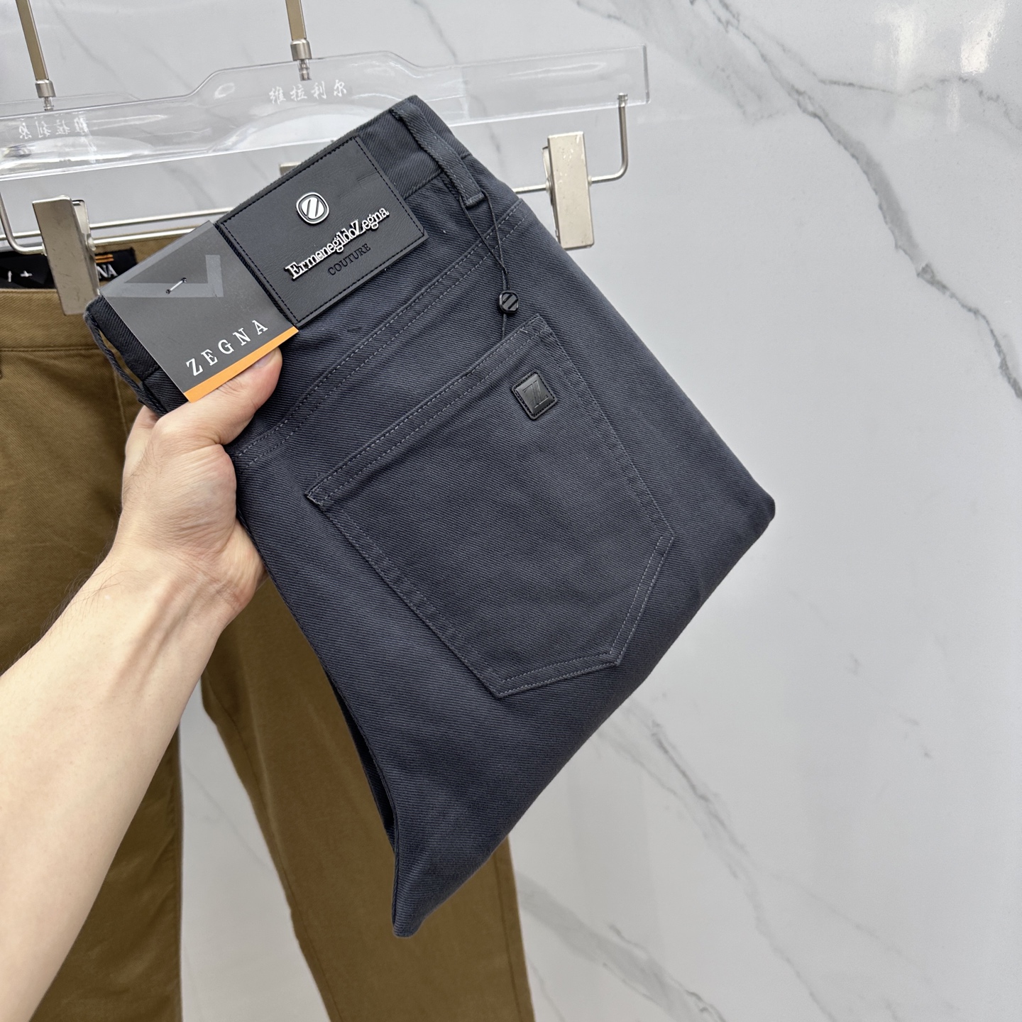 这款衣服是AAAAA 1:1 质量 (非常棒). 使用了和原版一模一样的材料. 商标部分也保持了和杰尼亚/Zegna一样. 图片拍摄是实物衣服拍摄, 您所收到的实物保证和我们图片一模一样.