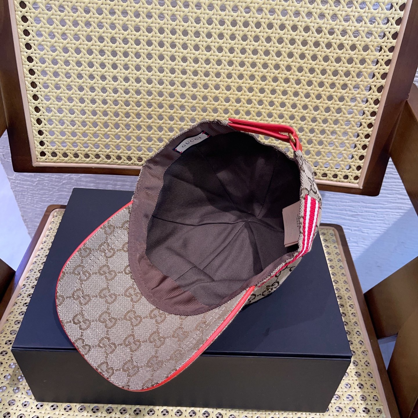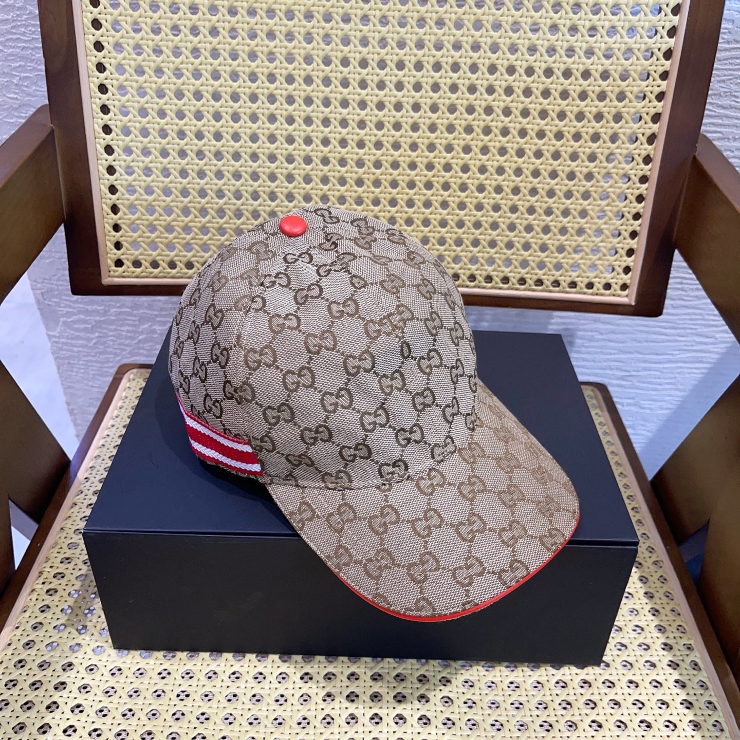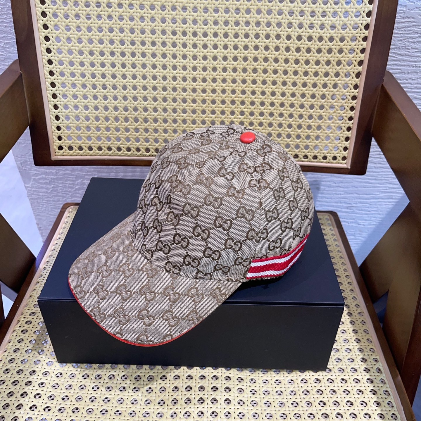 这款帽子是AAAAA 1:1 质量 (非常棒). 使用了和原版一模一样的材料. 商标部分也保持了和古奇/Gucci一样. 图片拍摄是实物帽子拍摄, 您所收到的实物保证和我们图片一模一样.