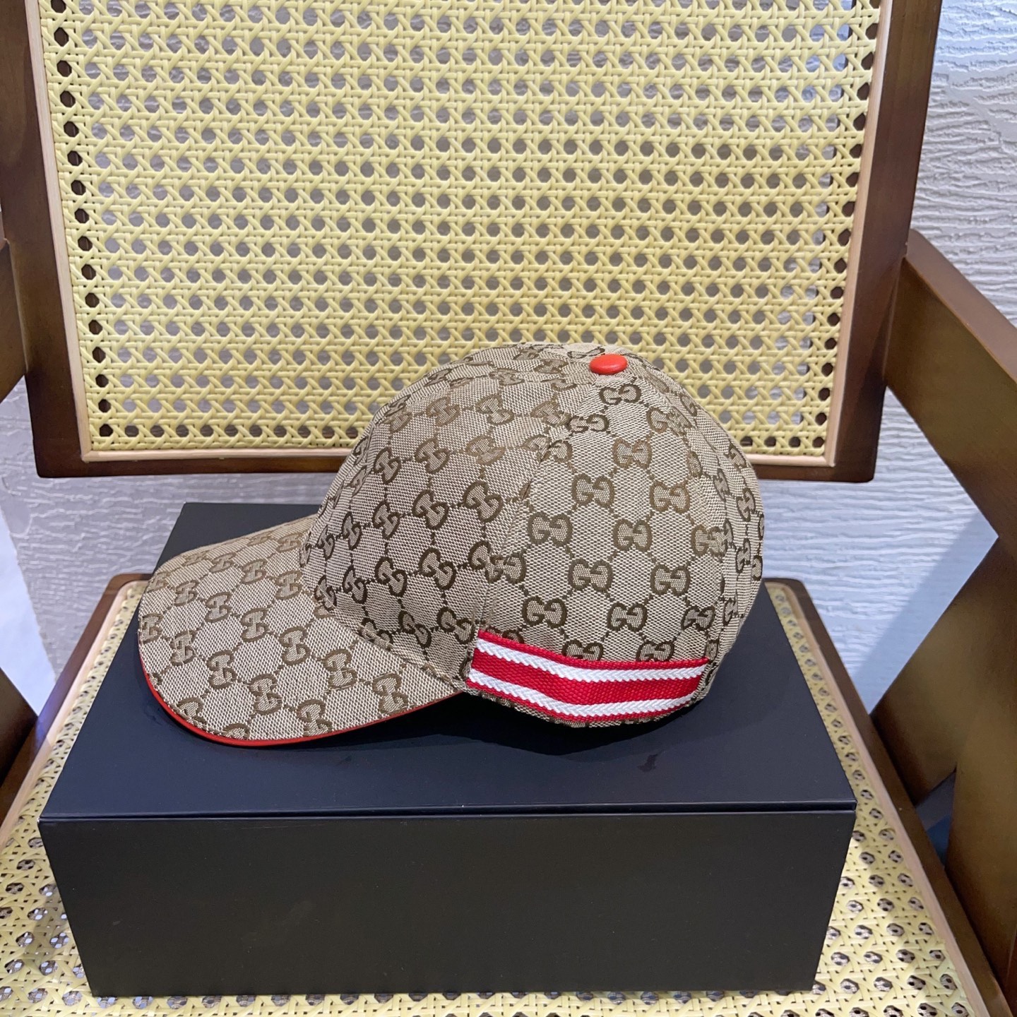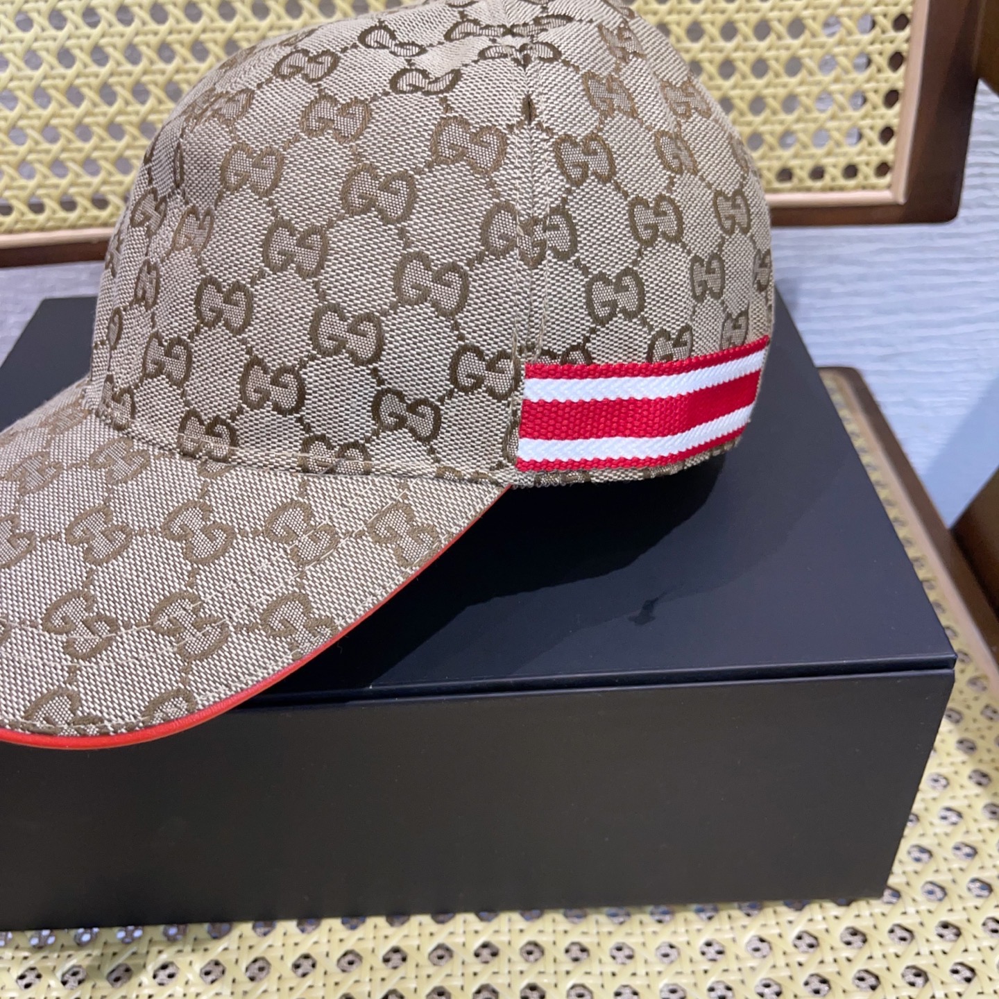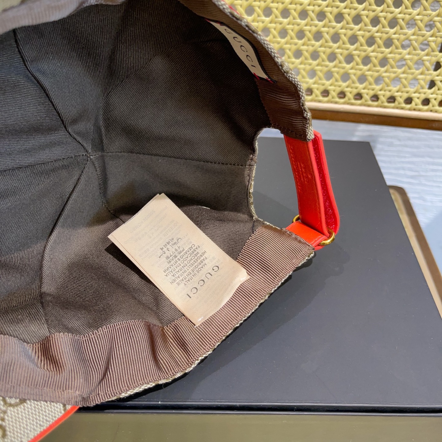 这款帽子是AAAAA 1:1 质量 (非常棒). 使用了和原版一模一样的材料. 商标部分也保持了和古奇/Gucci一样. 图片拍摄是实物帽子拍摄, 您所收到的实物保证和我们图片一模一样.