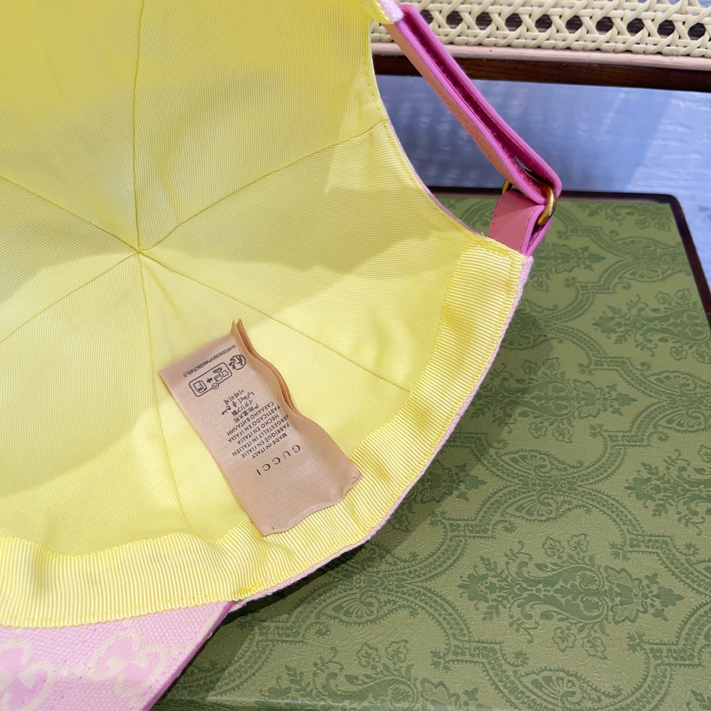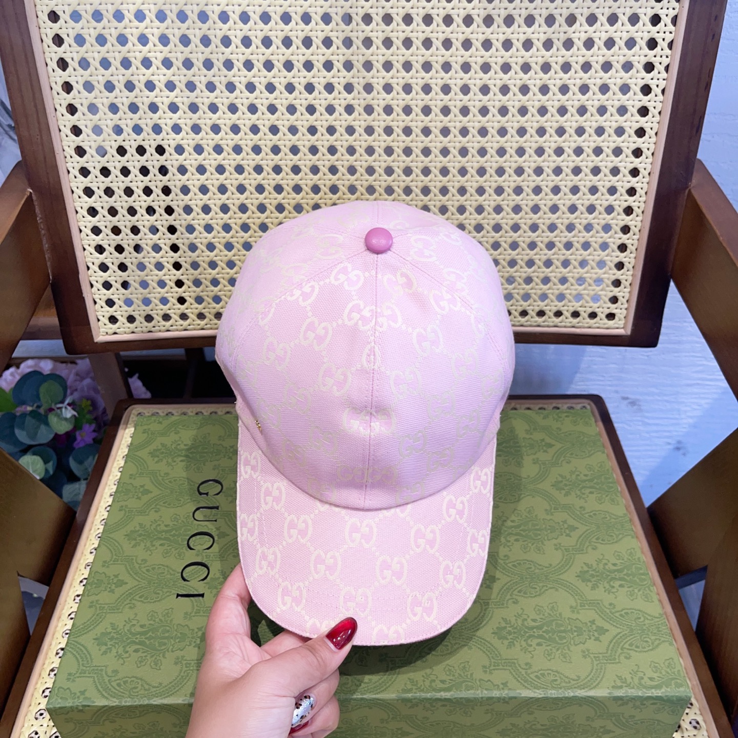 这款帽子是AAAAA 1:1 质量 (非常棒). 使用了和原版一模一样的材料. 商标部分也保持了和古奇/Gucci一样. 图片拍摄是实物帽子拍摄, 您所收到的实物保证和我们图片一模一样.