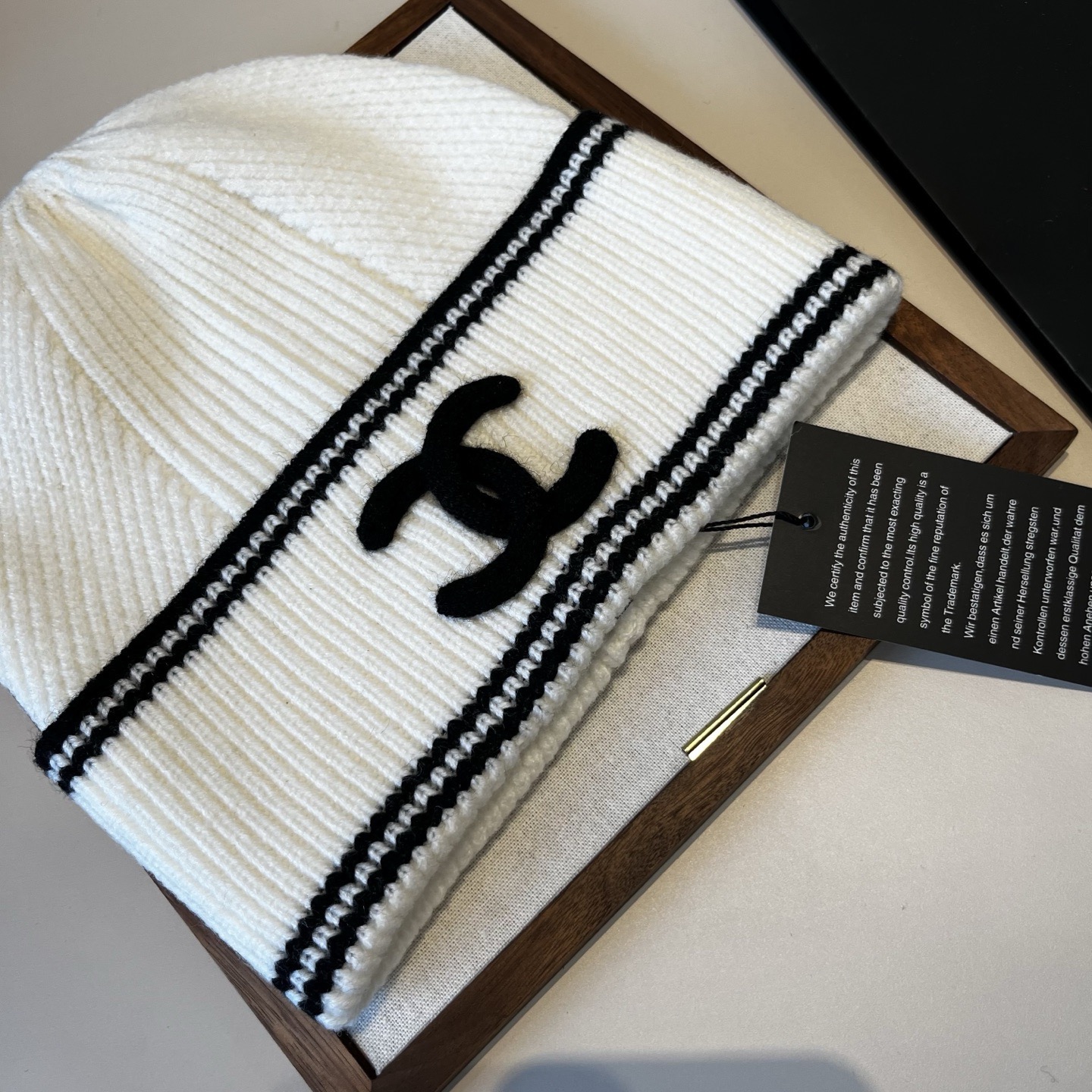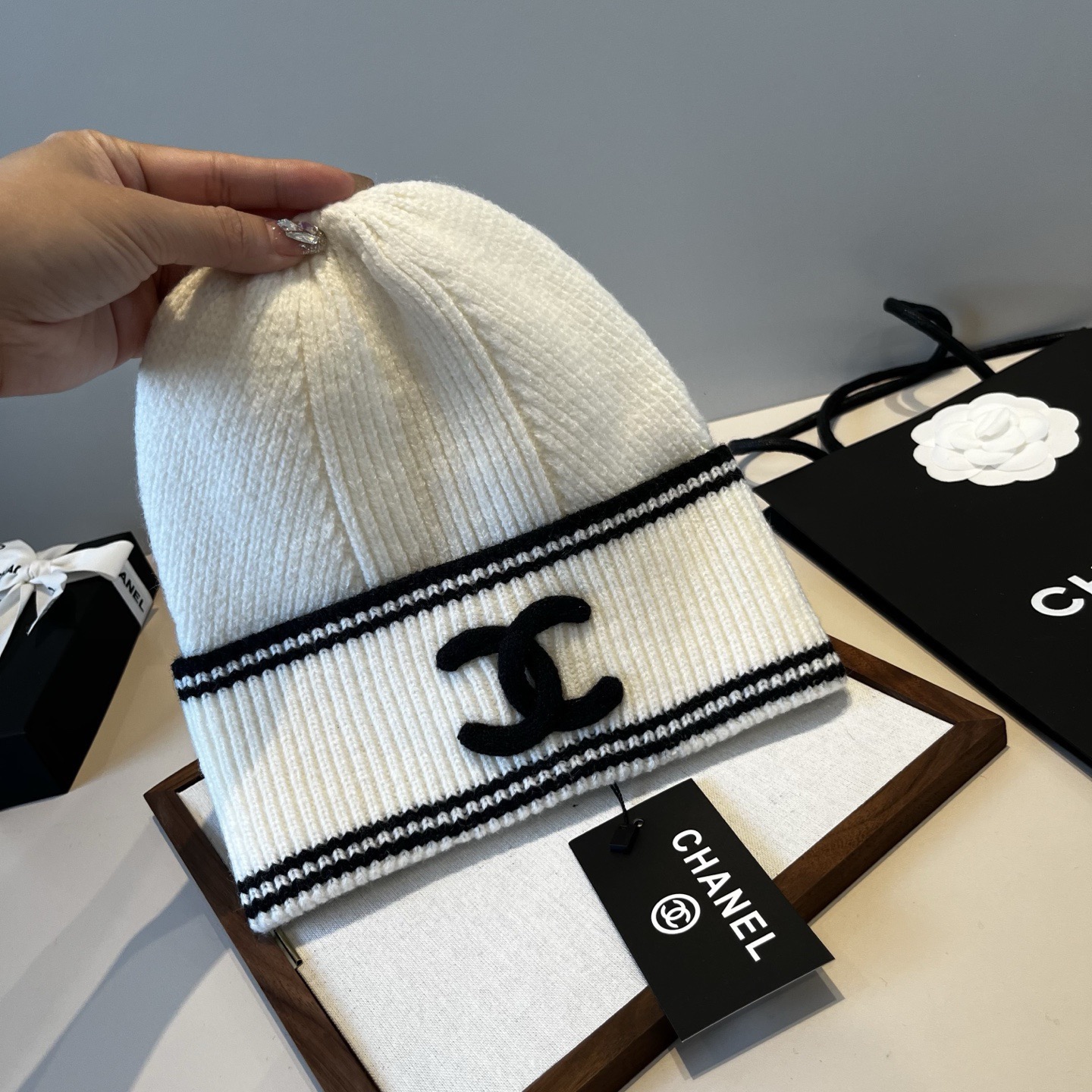 这款帽子是AAAAA 1:1 质量 (非常棒). 使用了和原版一模一样的材料. 商标部分也保持了和香奈儿/Chanel一样. 图片拍摄是实物帽子拍摄, 您所收到的实物保证和我们图片一模一样.