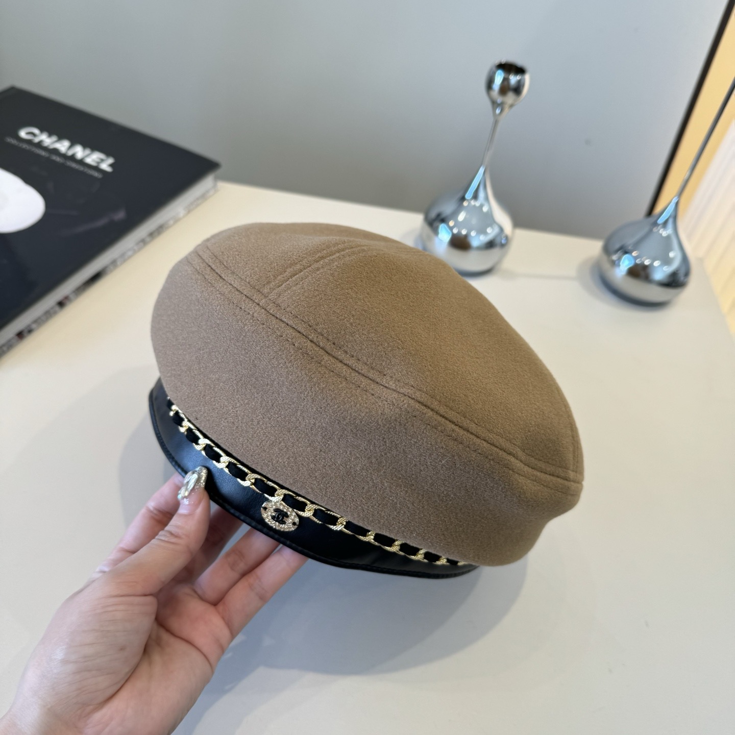 这款帽子是AAAAA 1:1 质量 (非常棒). 使用了和原版一模一样的材料. 商标部分也保持了和香奈儿/Chanel一样. 图片拍摄是实物帽子拍摄, 您所收到的实物保证和我们图片一模一样.